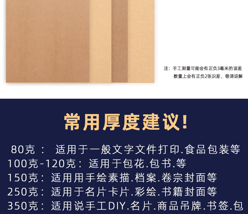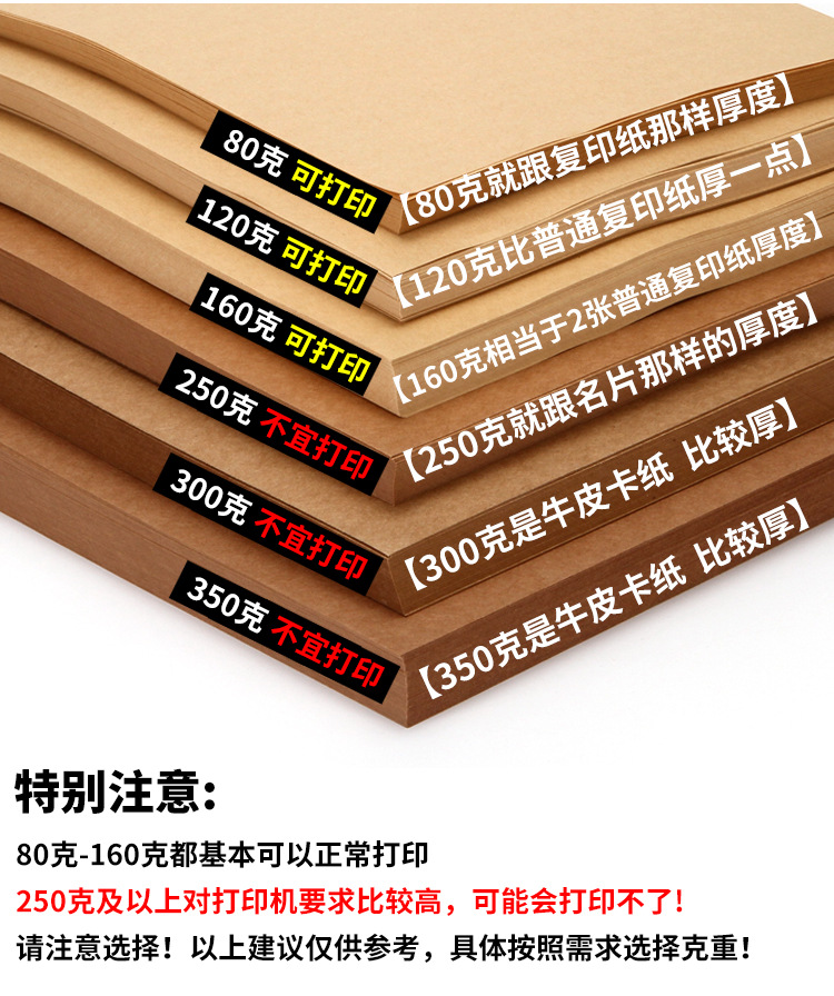 牛皮纸a4纸 封面牛皮纸全开a3牛皮卡纸8k 4开硬纸厚硬卡纸文件封