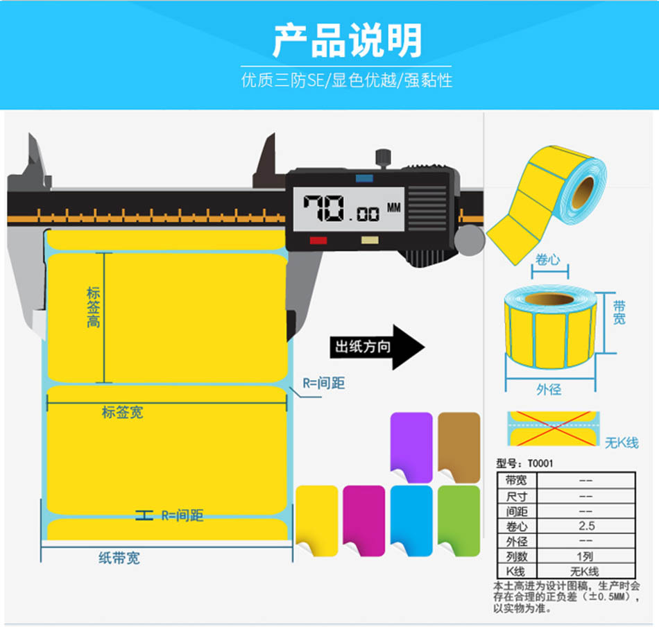 彩色三防热敏标签纸铜版纸空白贴纸材质尺寸面材物流打印贴标分类