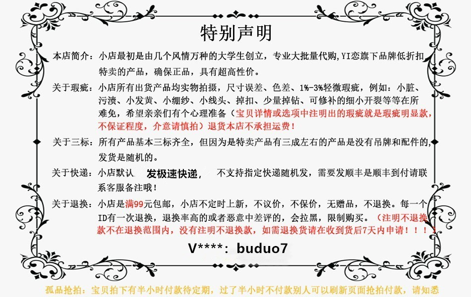因为是特卖产品,没有三包服务哦~请忽略里面的"三包服务’,质量杠杠的放心拍!