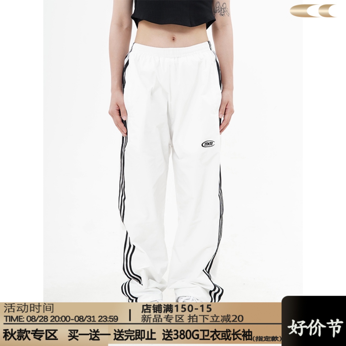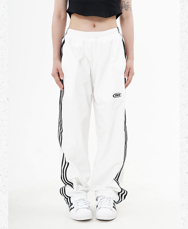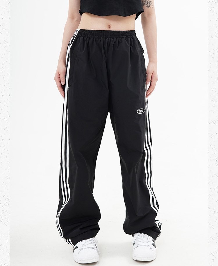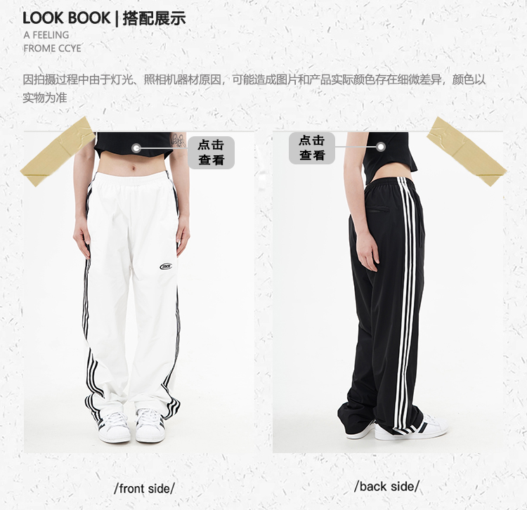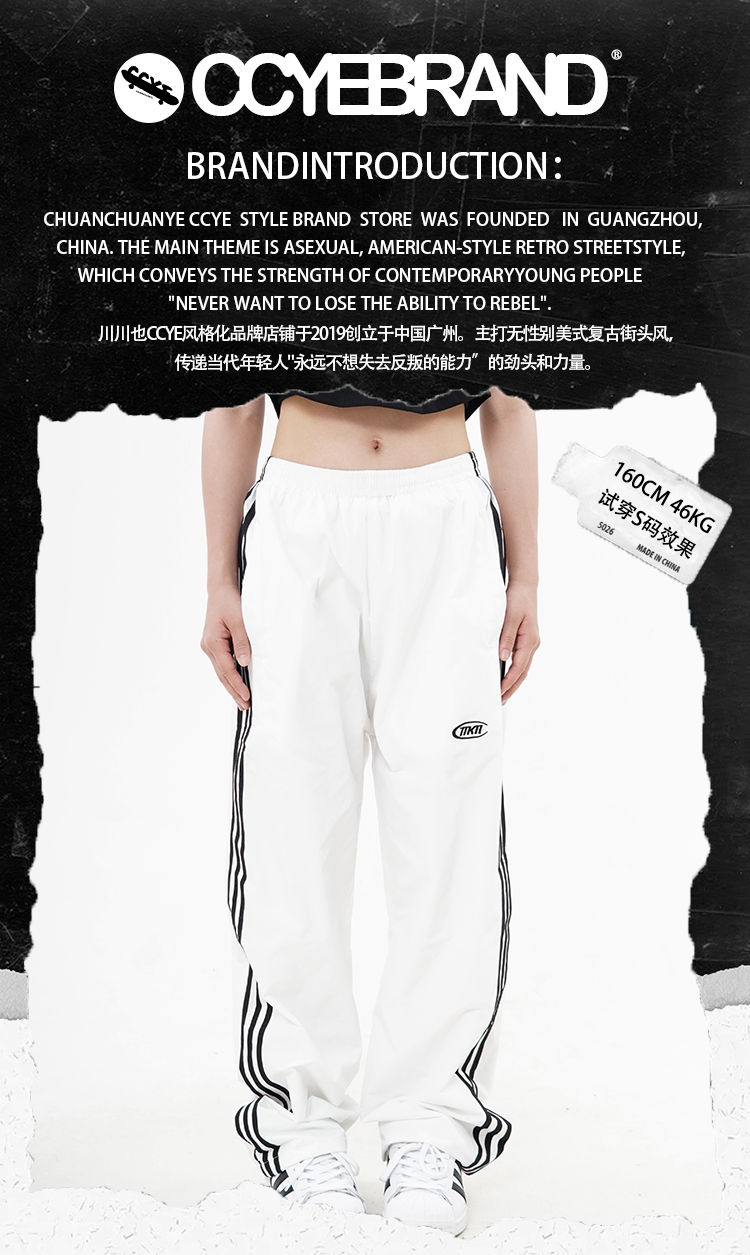 CCYE 美式高街條紋休閒褲男女寬鬆直筒高腰闊腿運動長褲復古潮ins