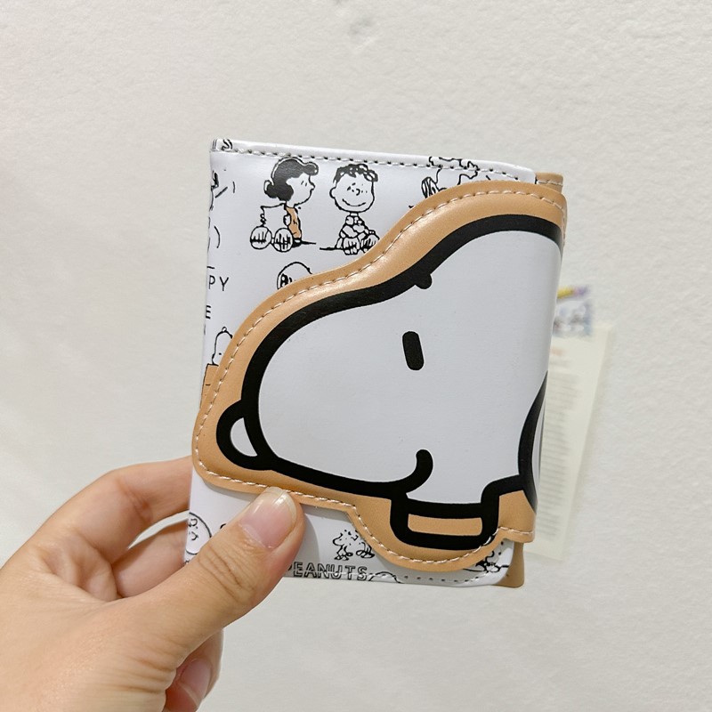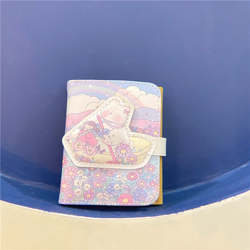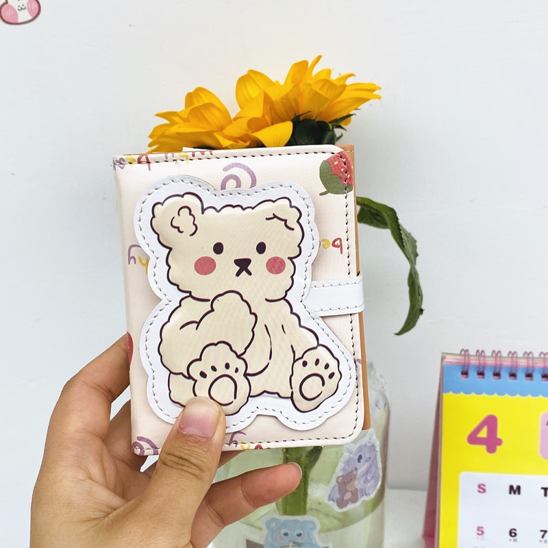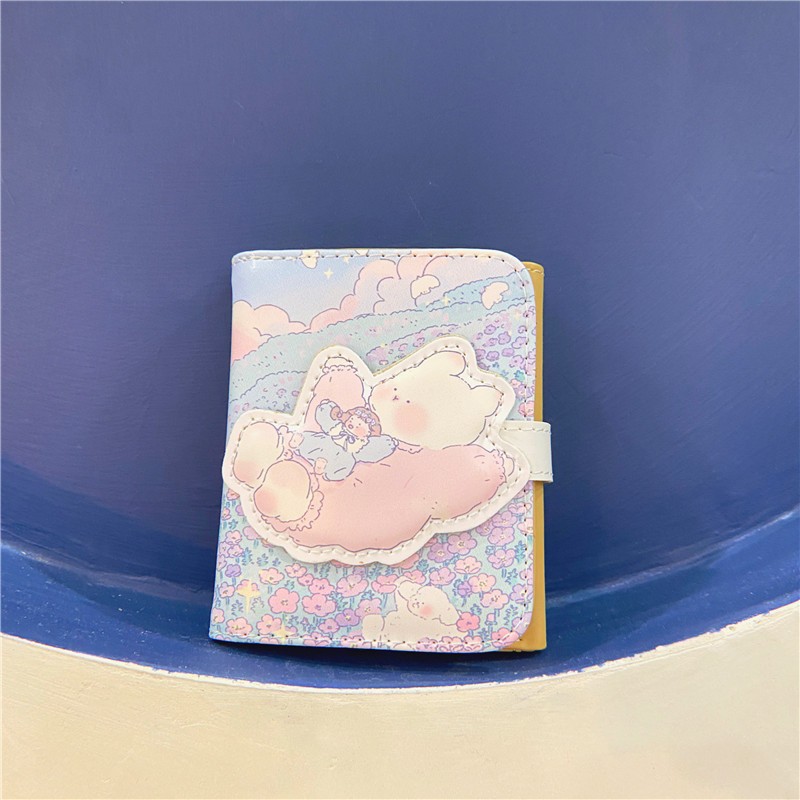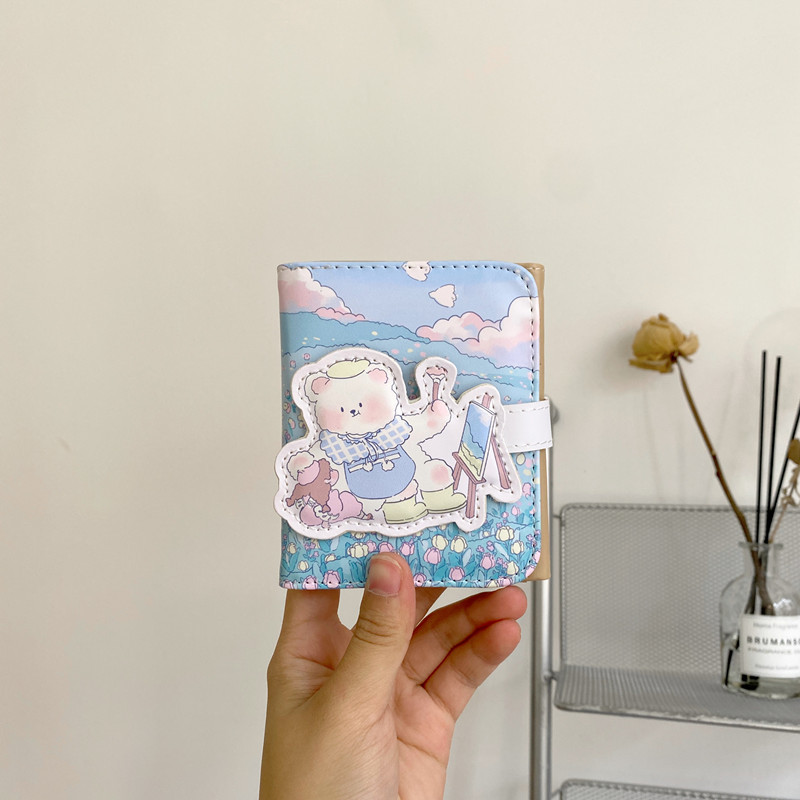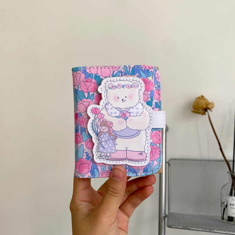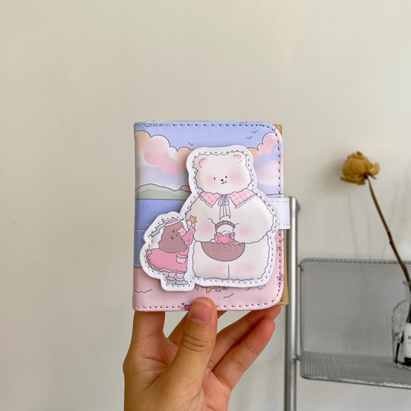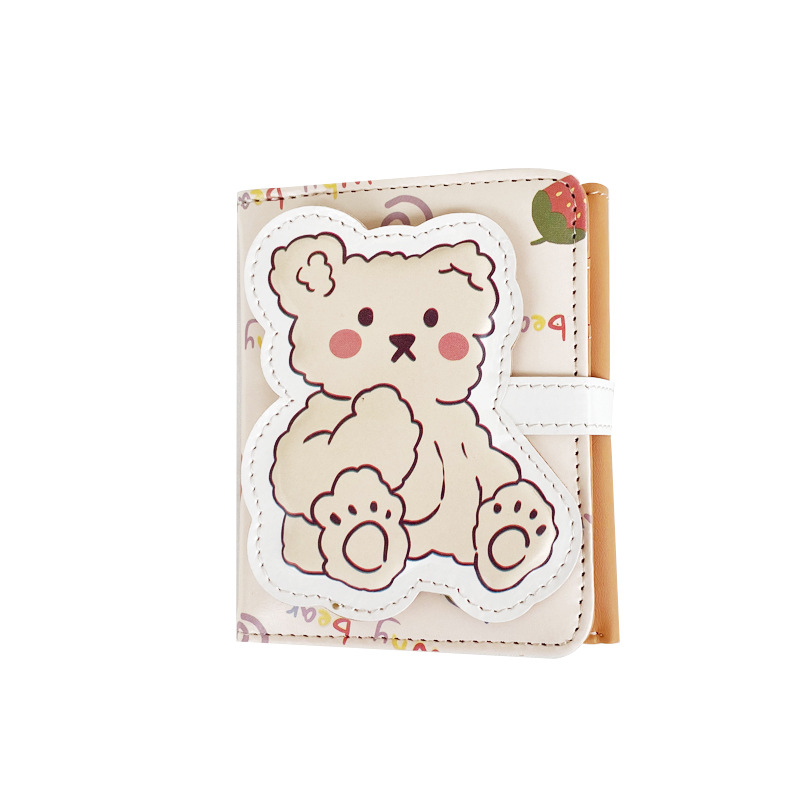 原创chic日韩小熊钱包卡通女短款零钱包按扣式三折PU卡包按扣式