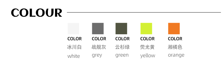 顏色分類 黑色,白色,螢光黃,軍綠色,橘色
