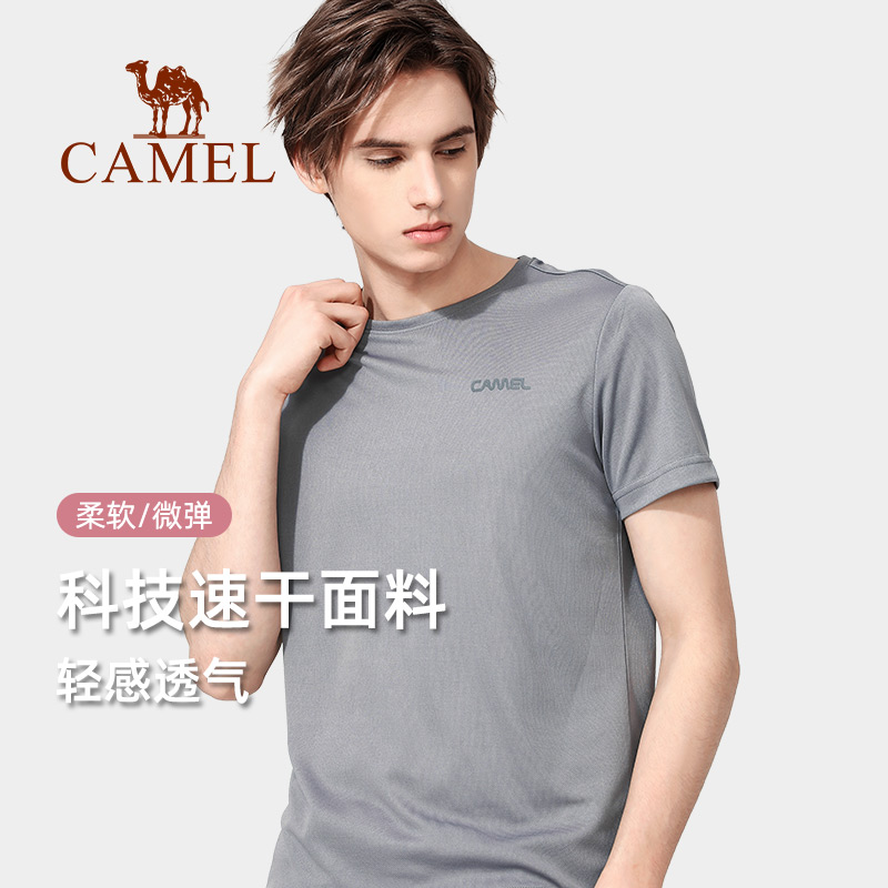 駱駝戶外短袖t恤男2023年夏季寬鬆半袖T恤運動跑步健身速幹上衣