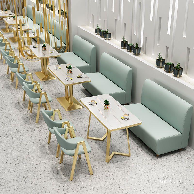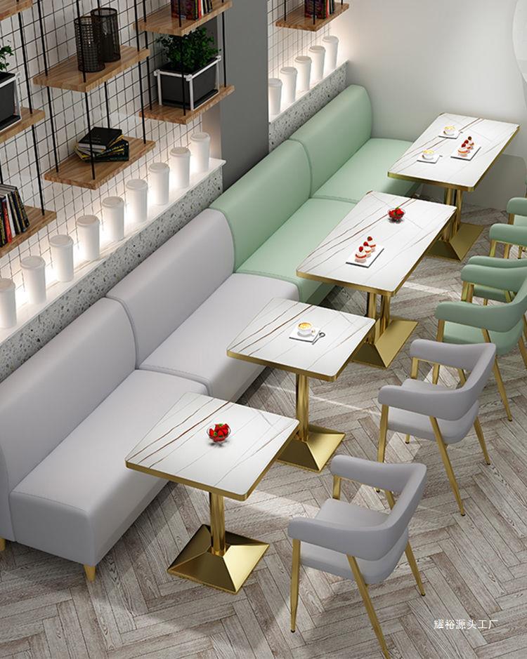 网红奶茶店桌椅组合甜品汉堡小吃快餐店简约清新餐厅家具卡座沙发