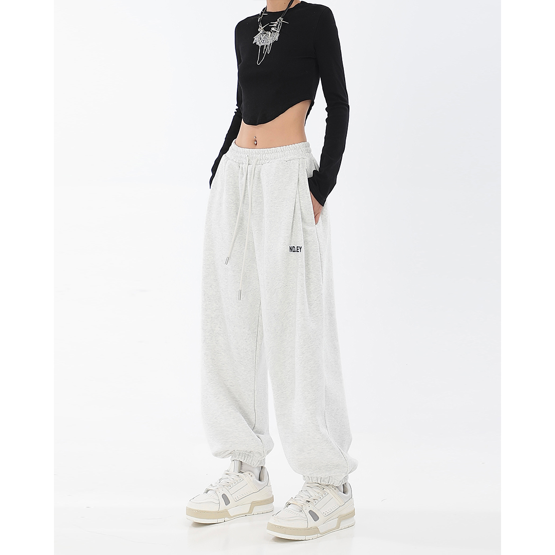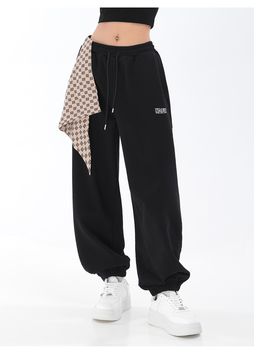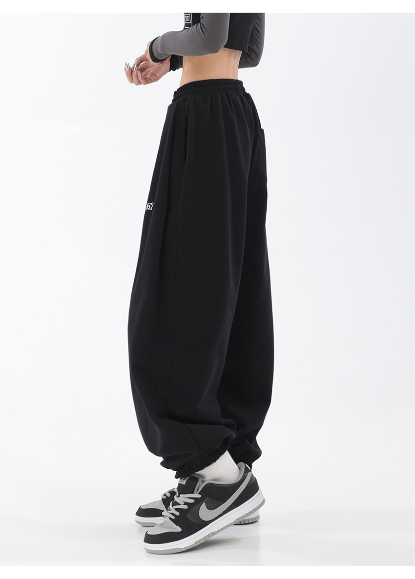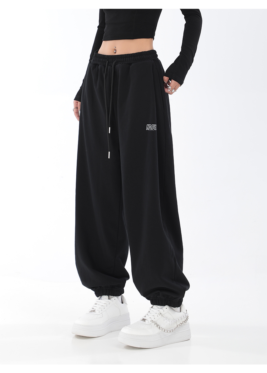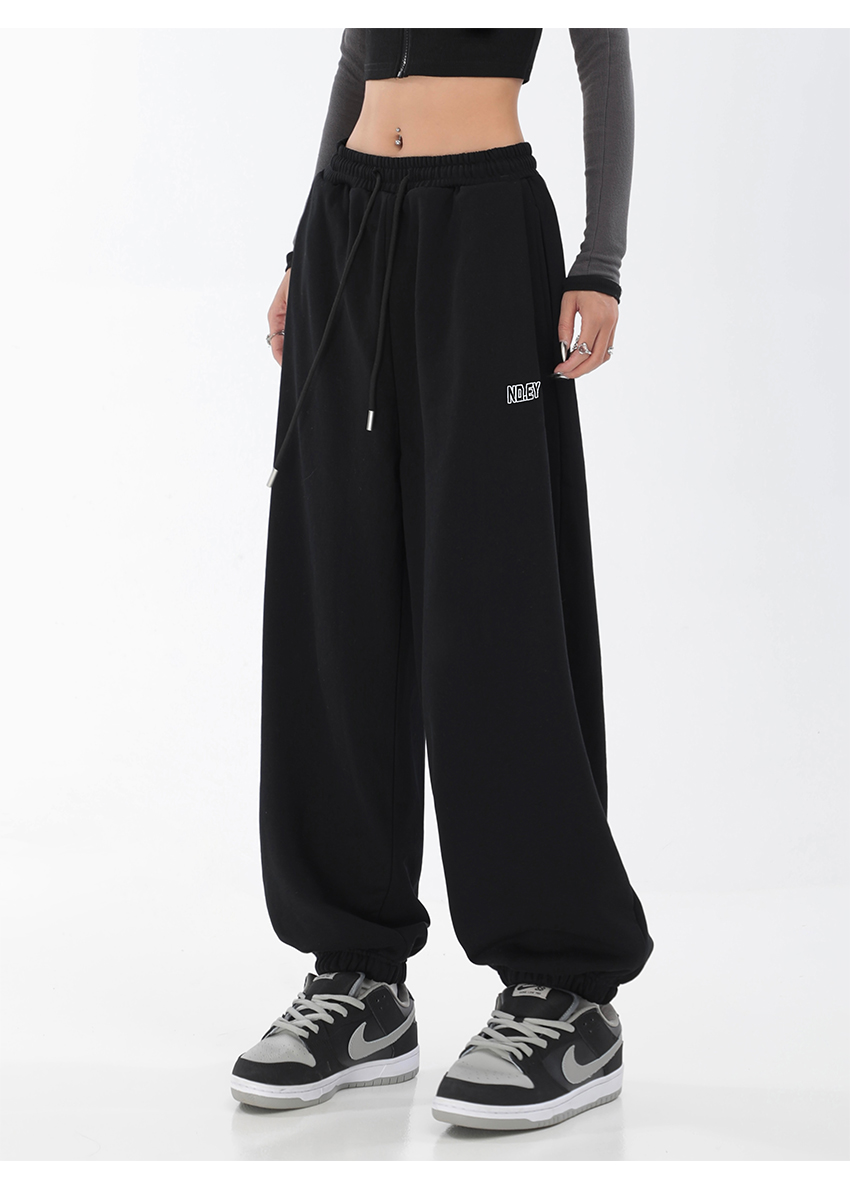 秋季闊腿束腳哈倫衛褲女美式高街印花運動長褲抽繩休閒褲子潮ins