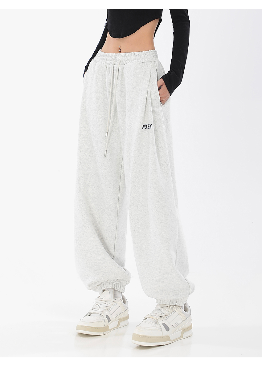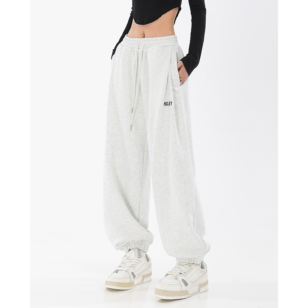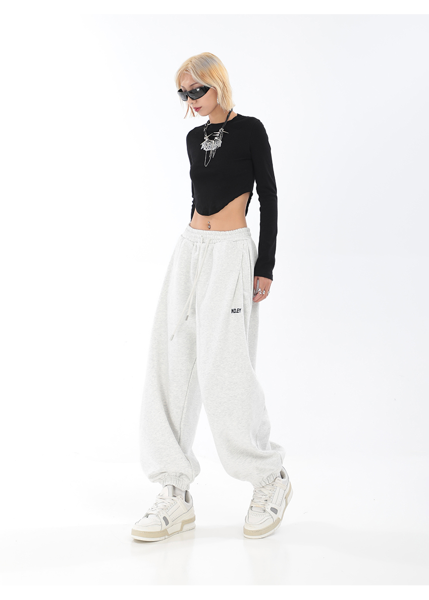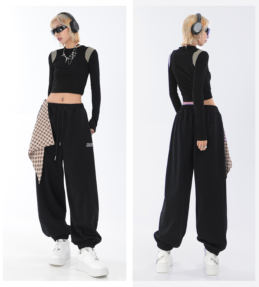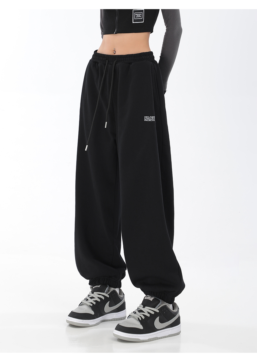 秋季闊腿束腳哈倫衛褲女美式高街印花運動長褲抽繩休閒褲子潮ins