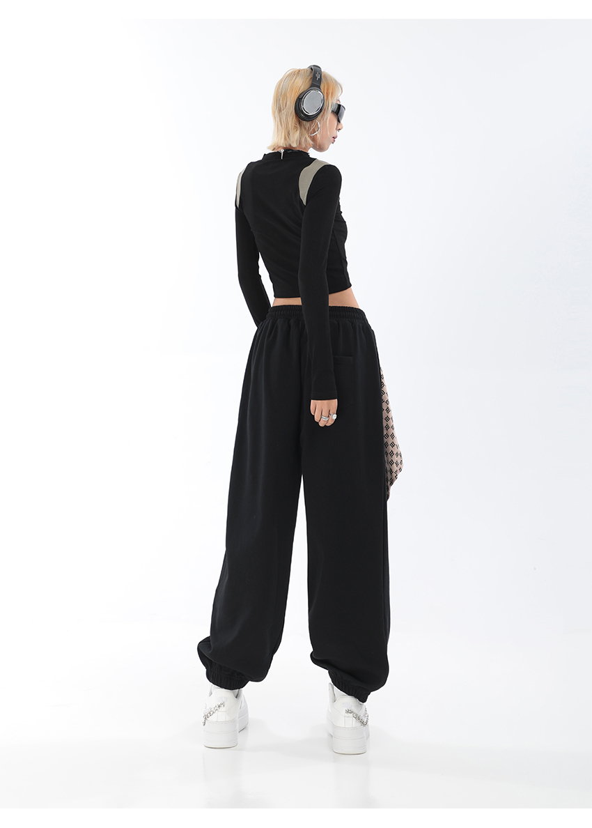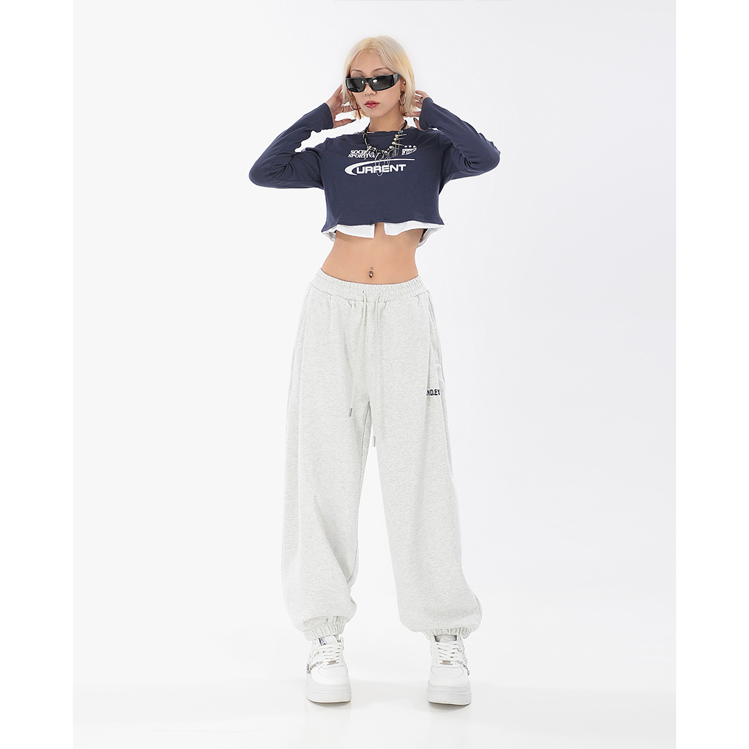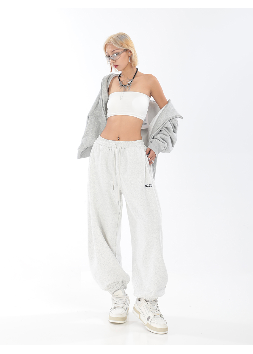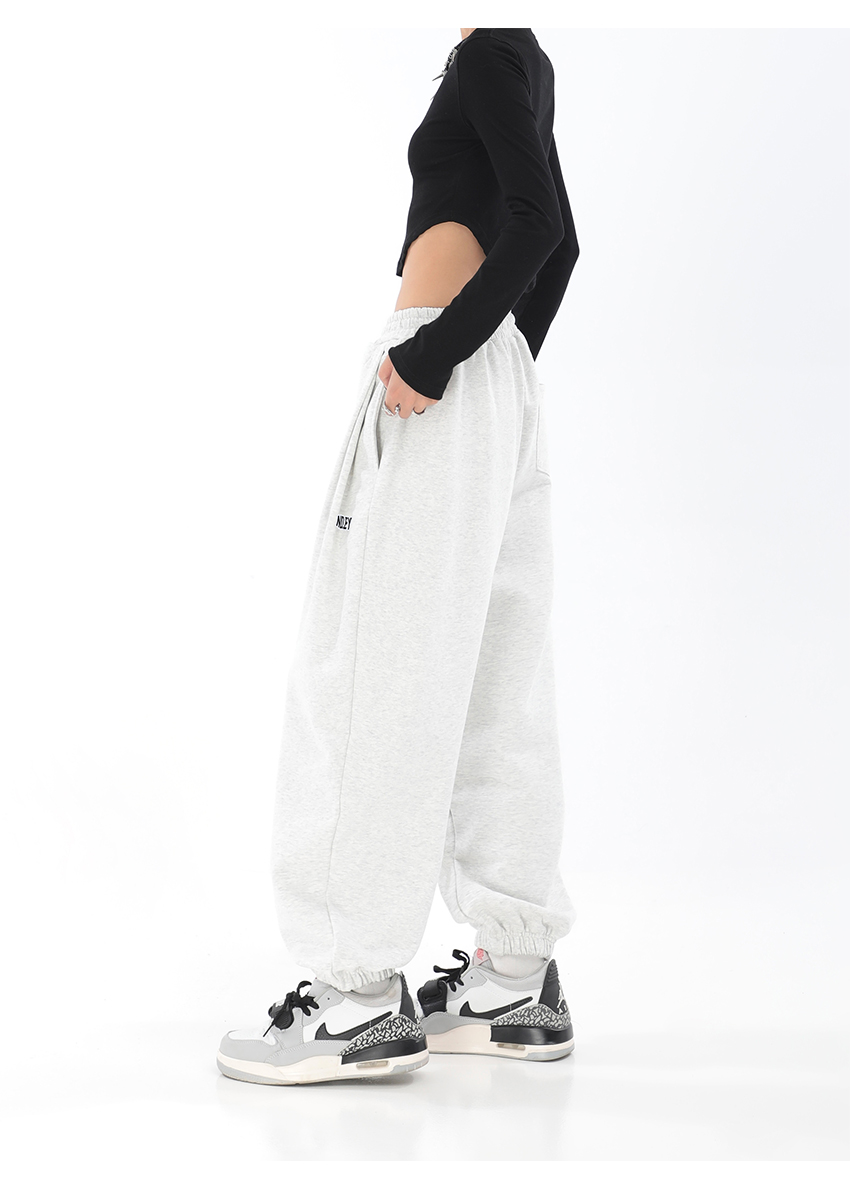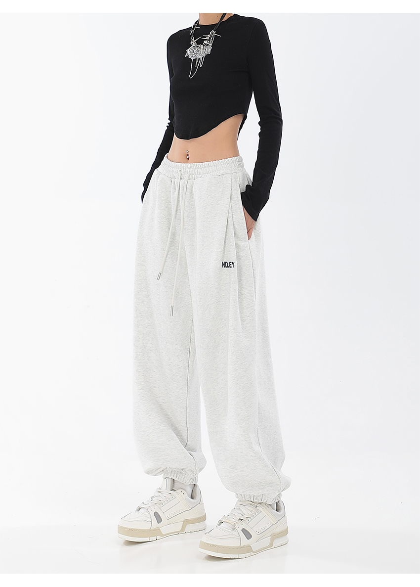 秋季闊腿束腳哈倫衛褲女美式高街印花運動長褲抽繩休閒褲子潮ins