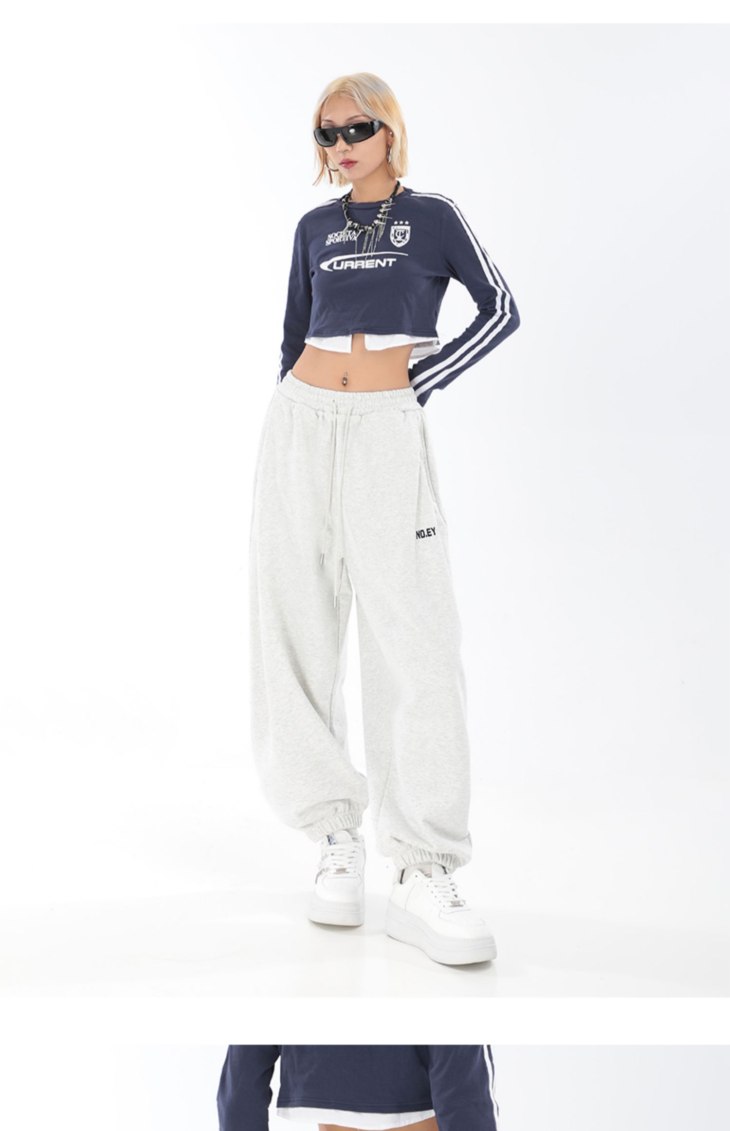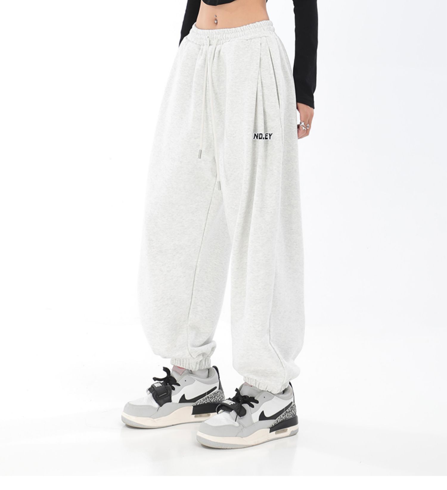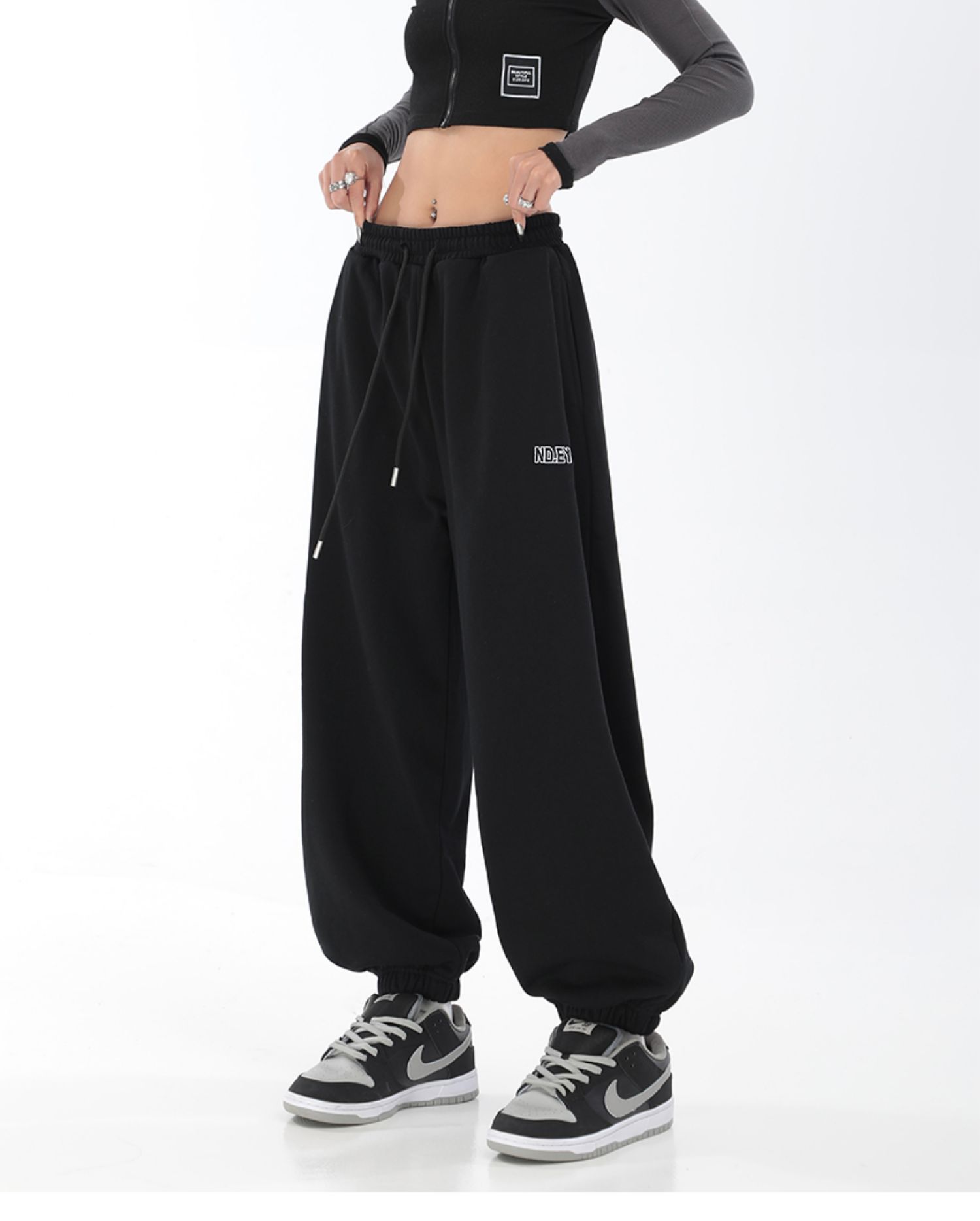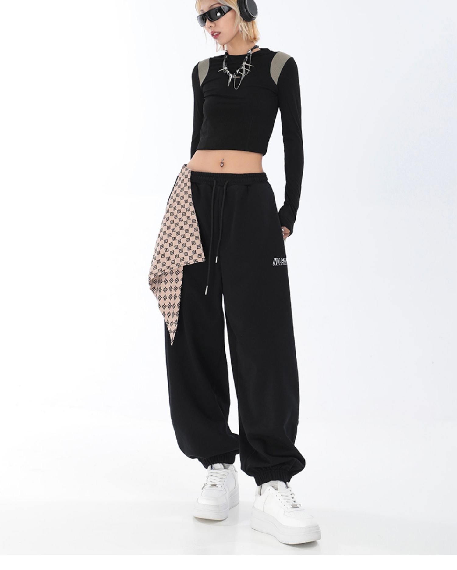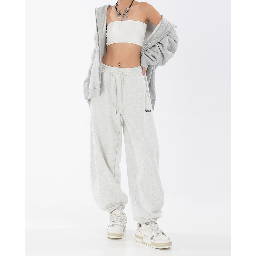 秋季闊腿束腳哈倫衛褲女美式高街印花運動長褲抽繩休閒褲子潮ins