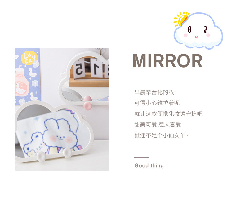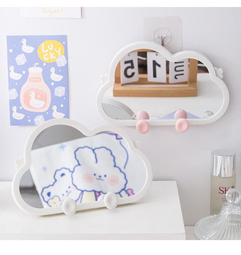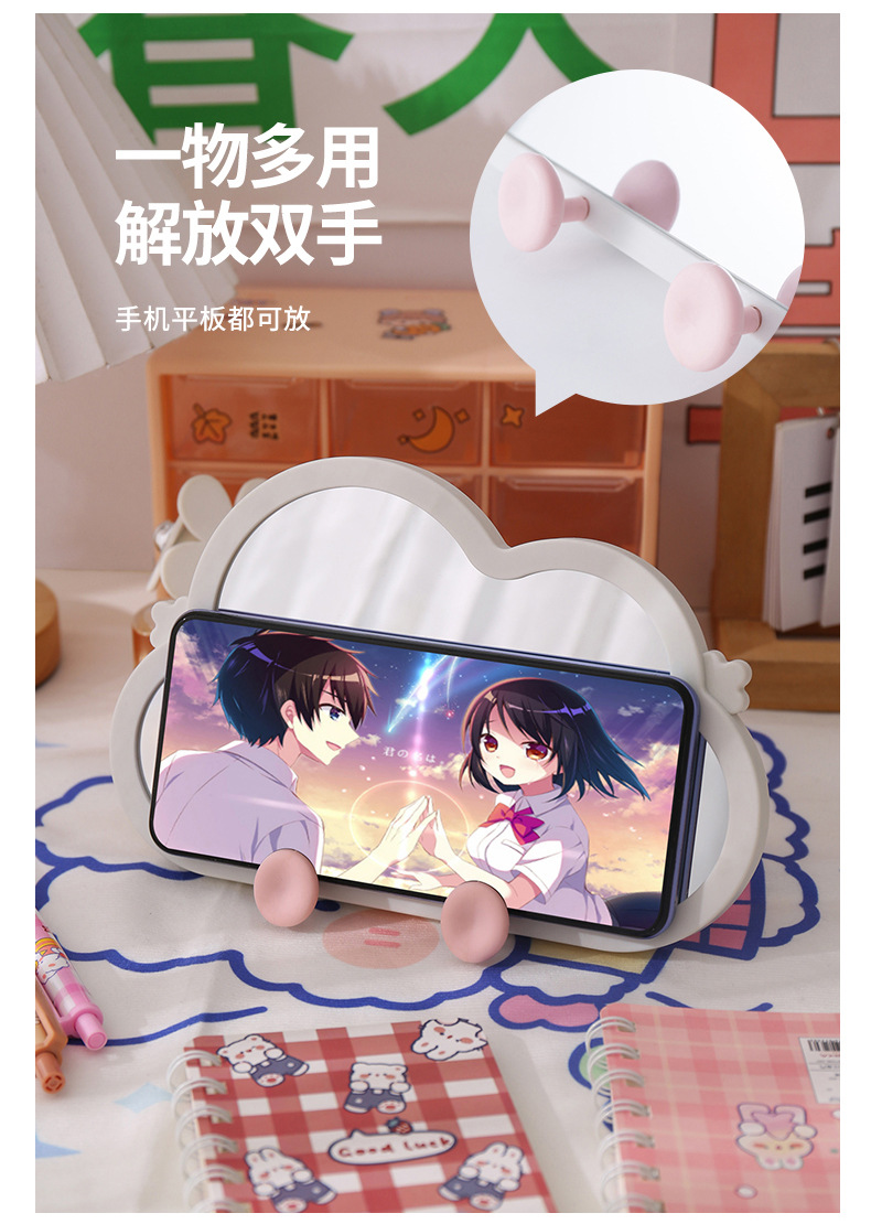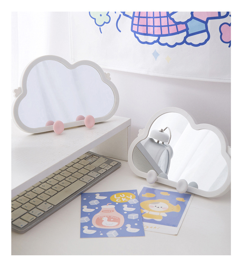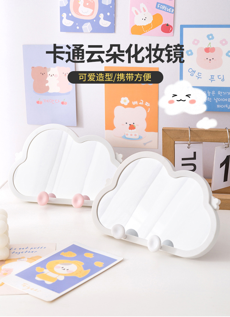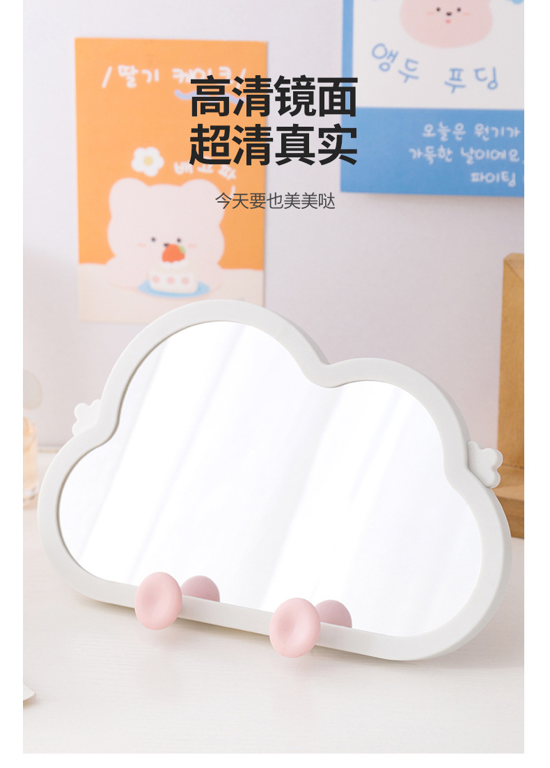 创意桌面云朵镜子便携桌面多用途化妆镜宿舍办公室折叠高清梳妆镜