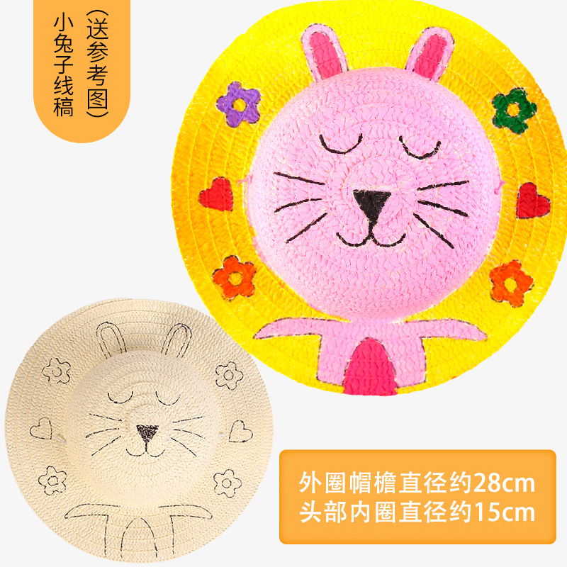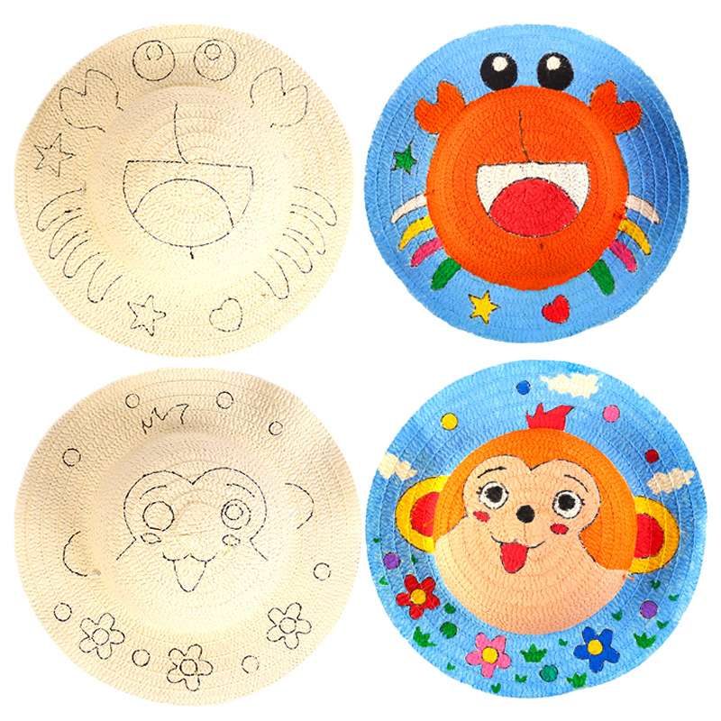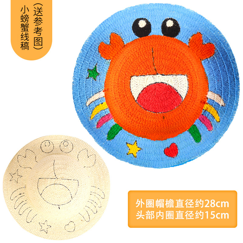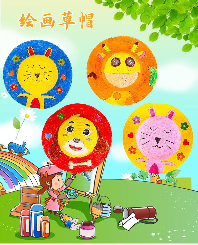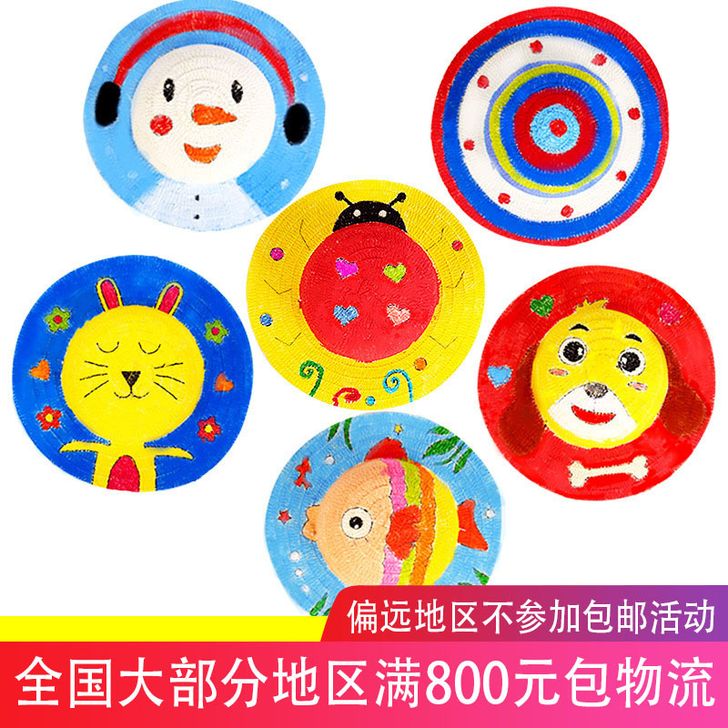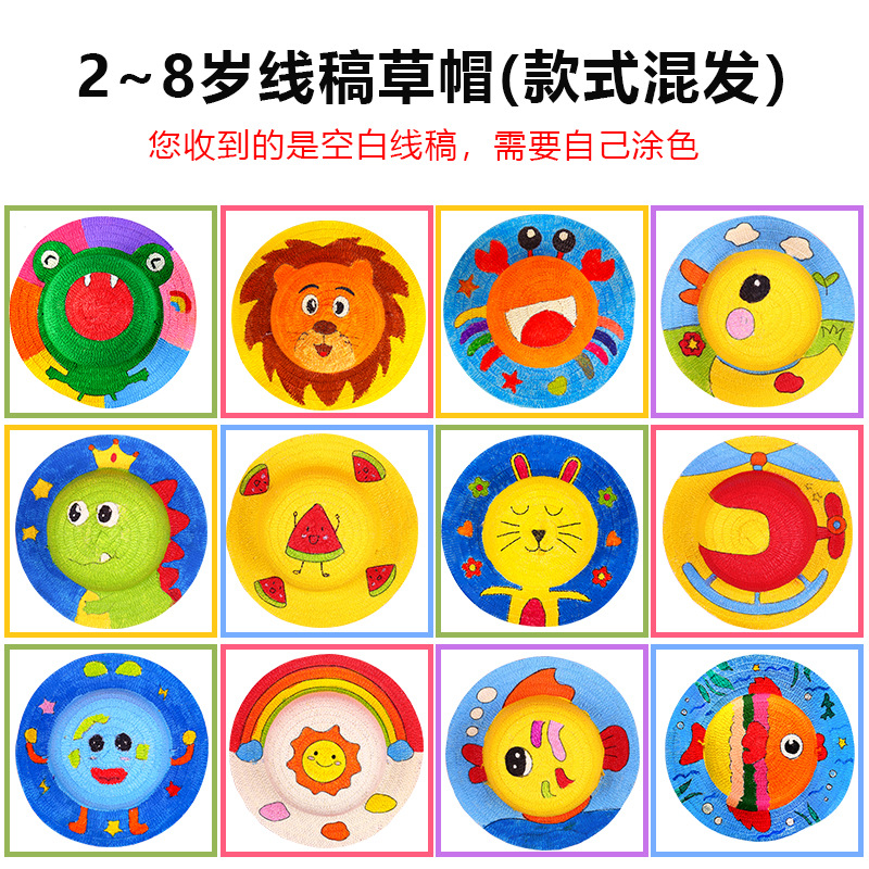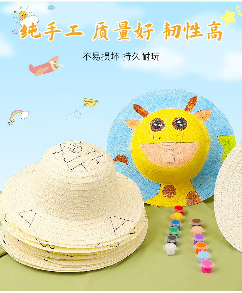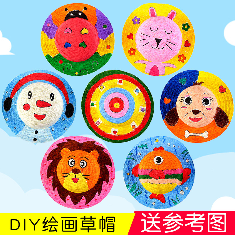 幼儿园绘画草帽diy儿童手工制作材料包彩绘涂鸦草帽子批发零售