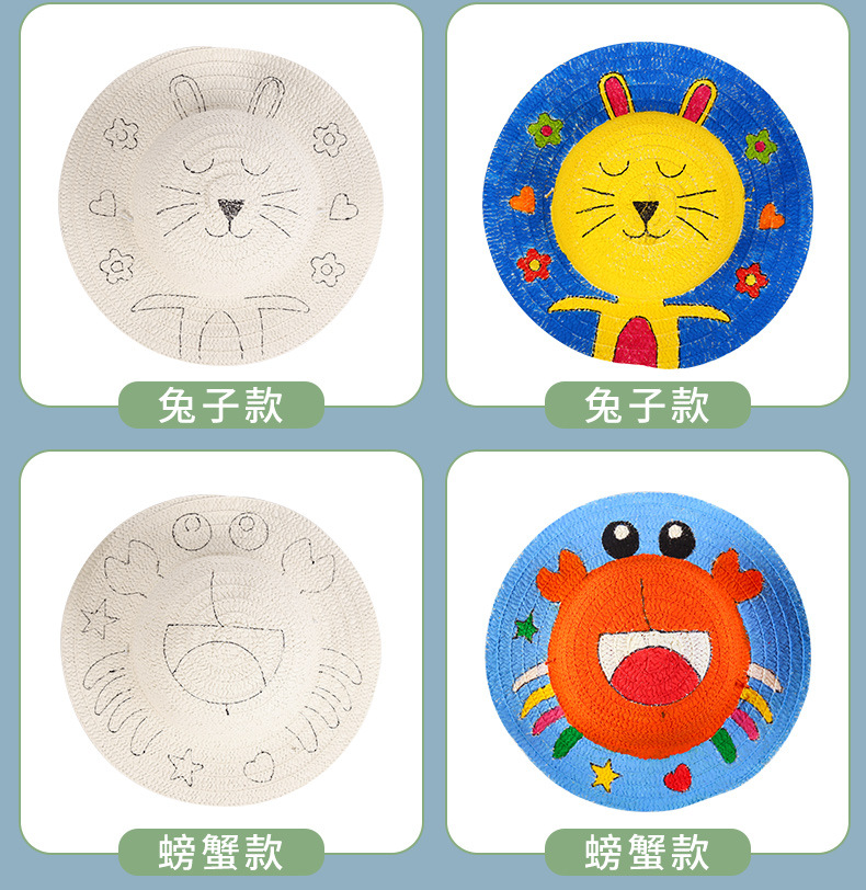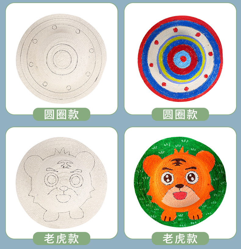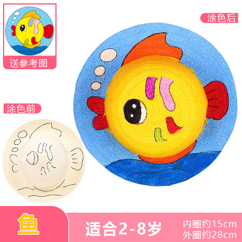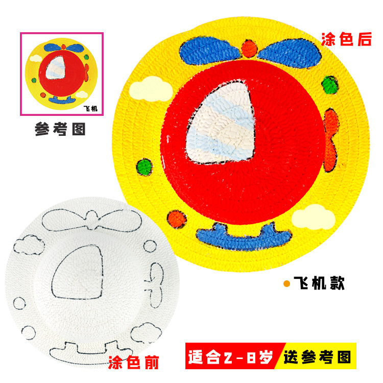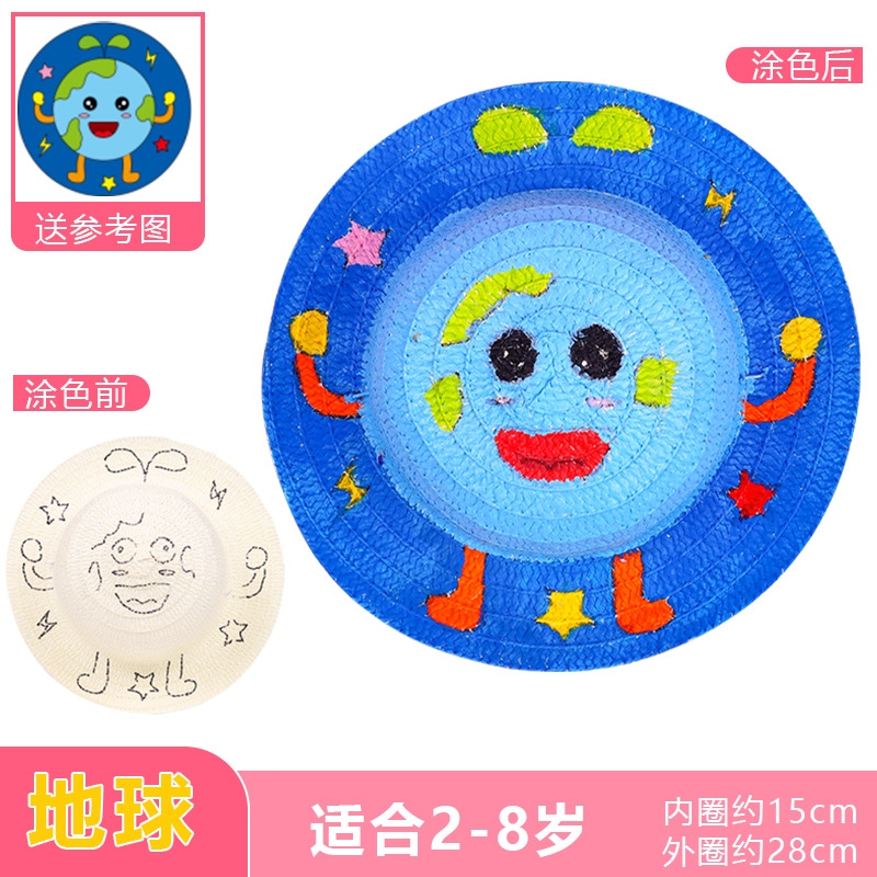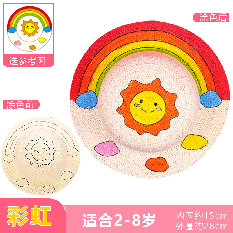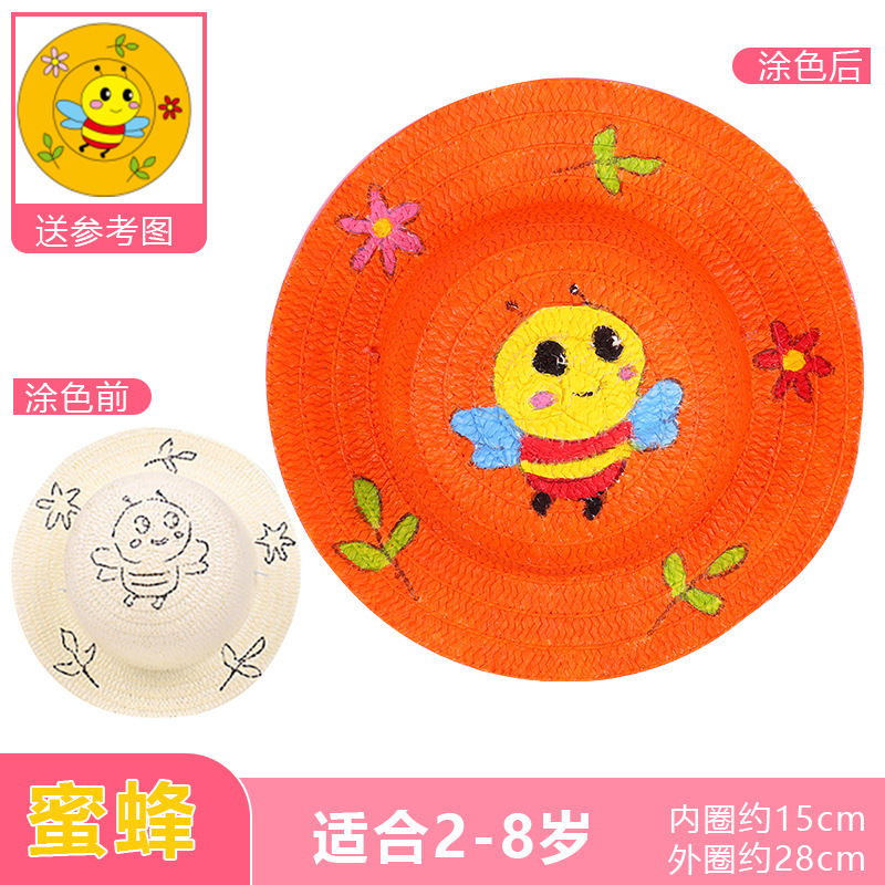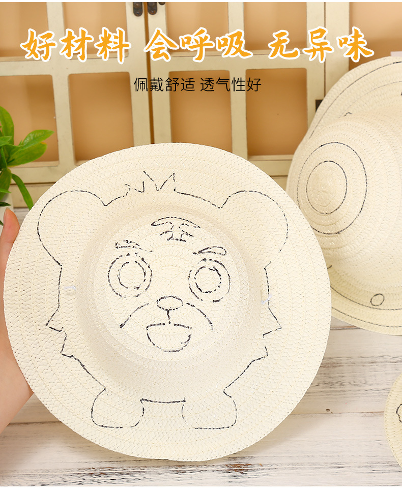 幼儿园绘画草帽diy儿童手工制作材料包彩绘涂鸦草帽子批发零售