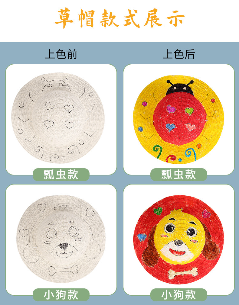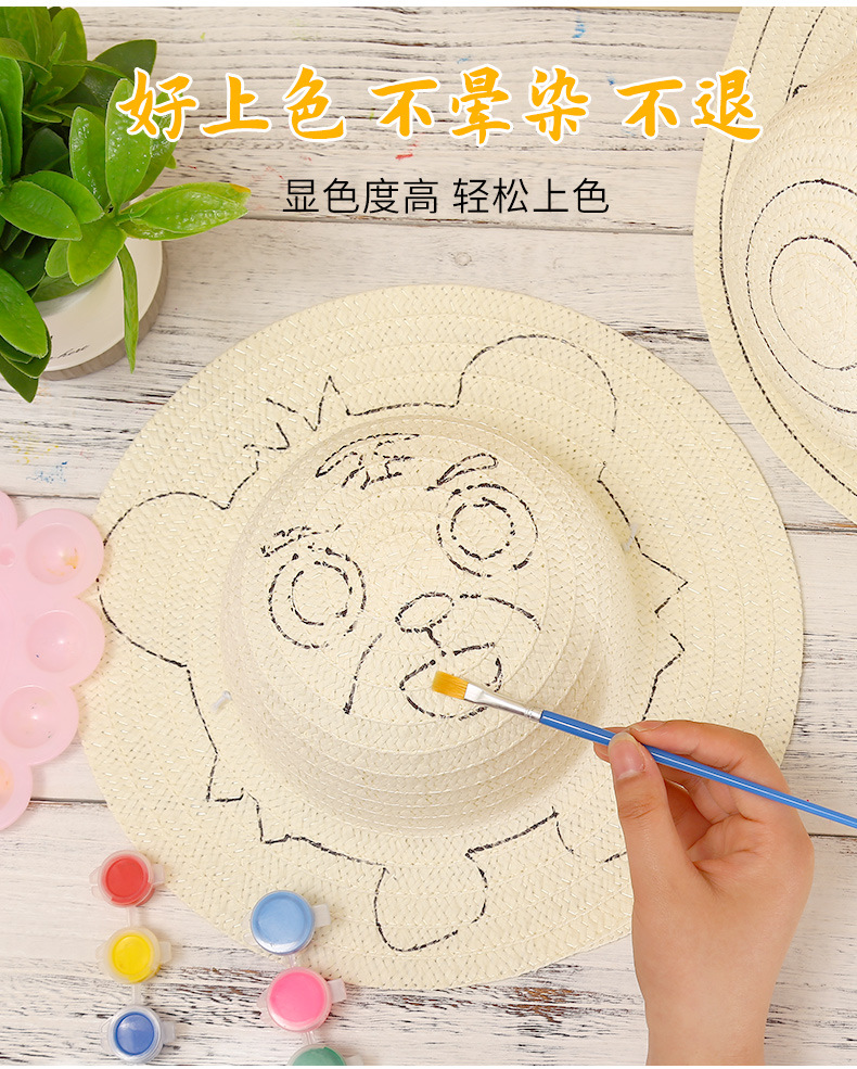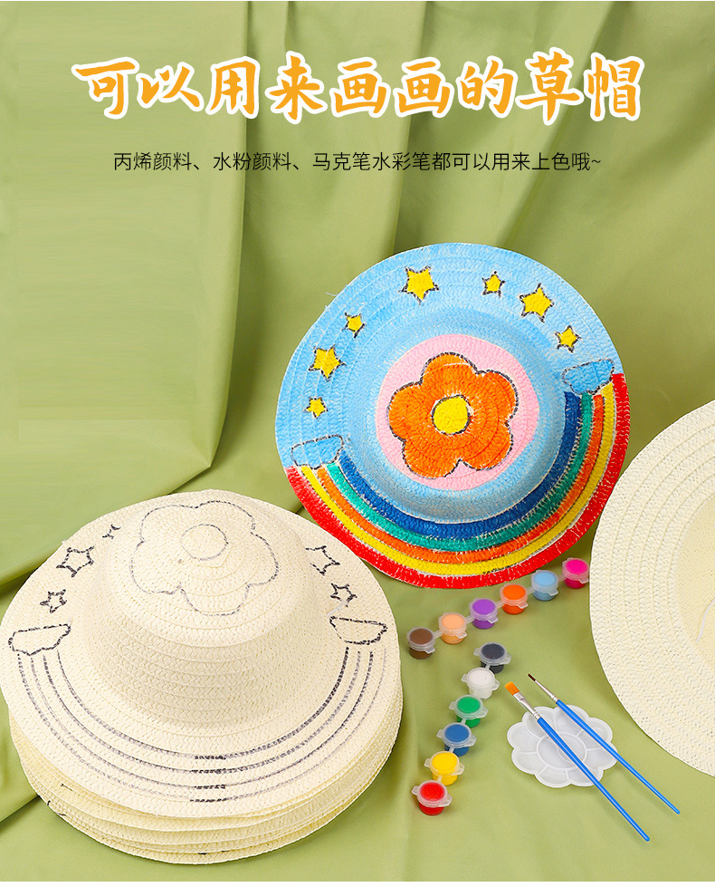 草帽不包含颜料 需要单独购买的,颜料有单独链接,需要的联系客服!丙烯颜料.水彩笔.马克笔.都可以上色的