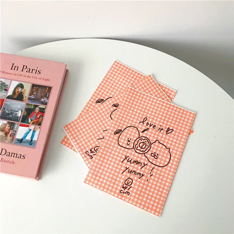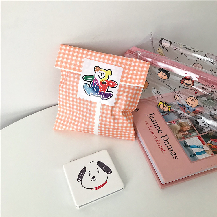 简约韩风ins 橘色格子卡通抽象画小纸袋包装袋礼品袋糖果可爱摆拍