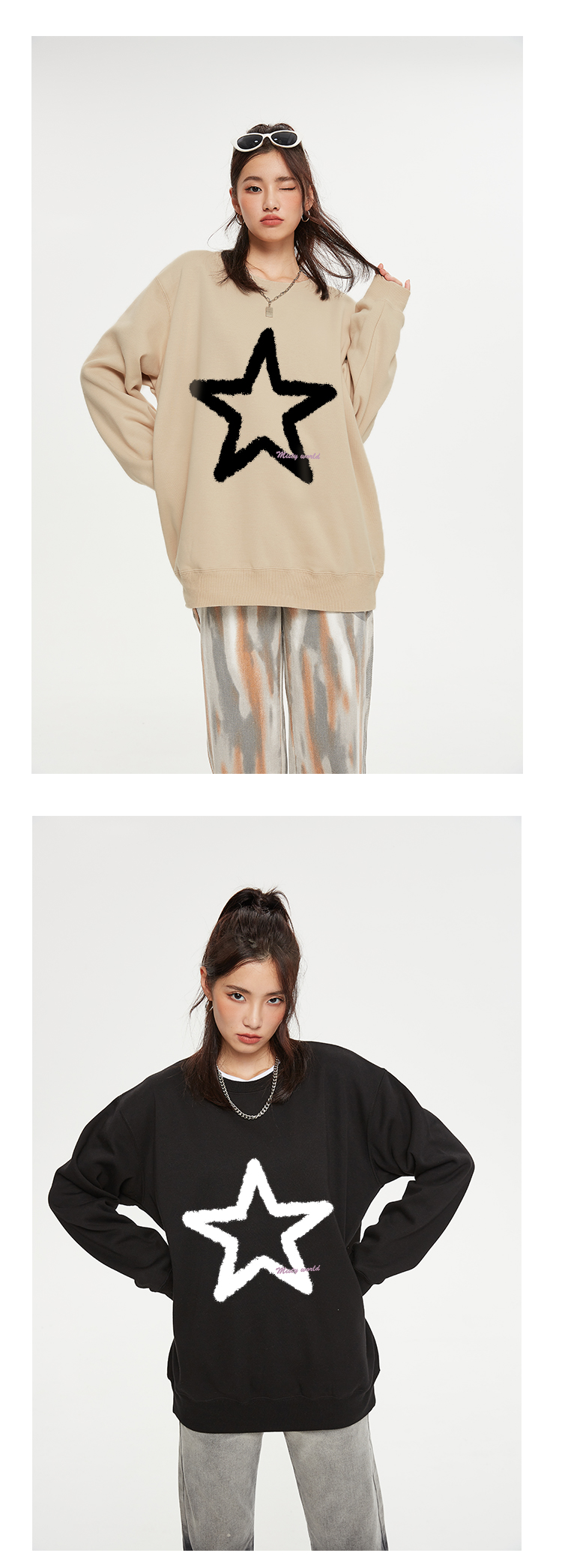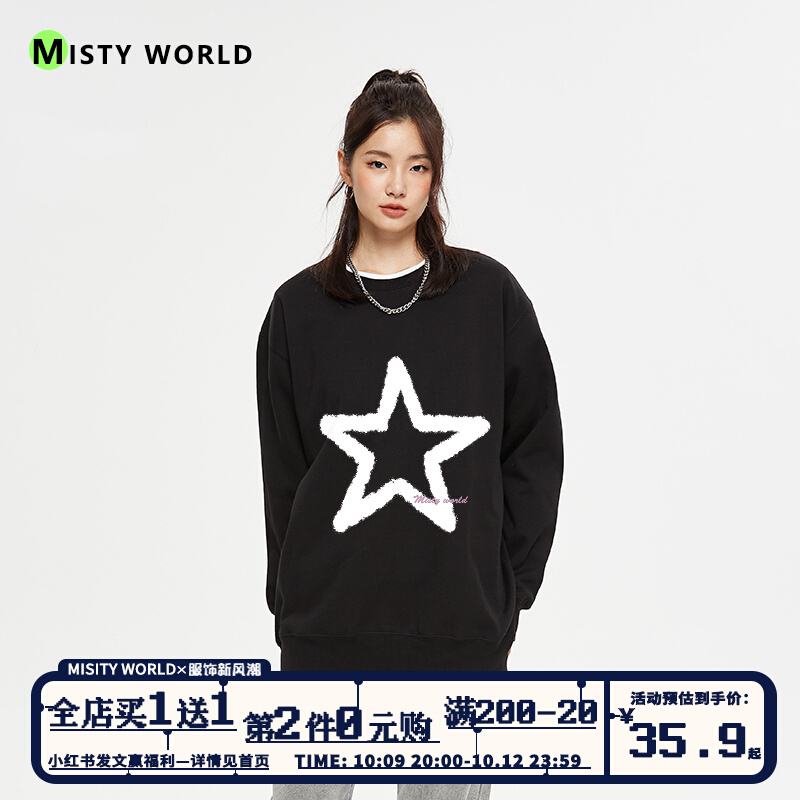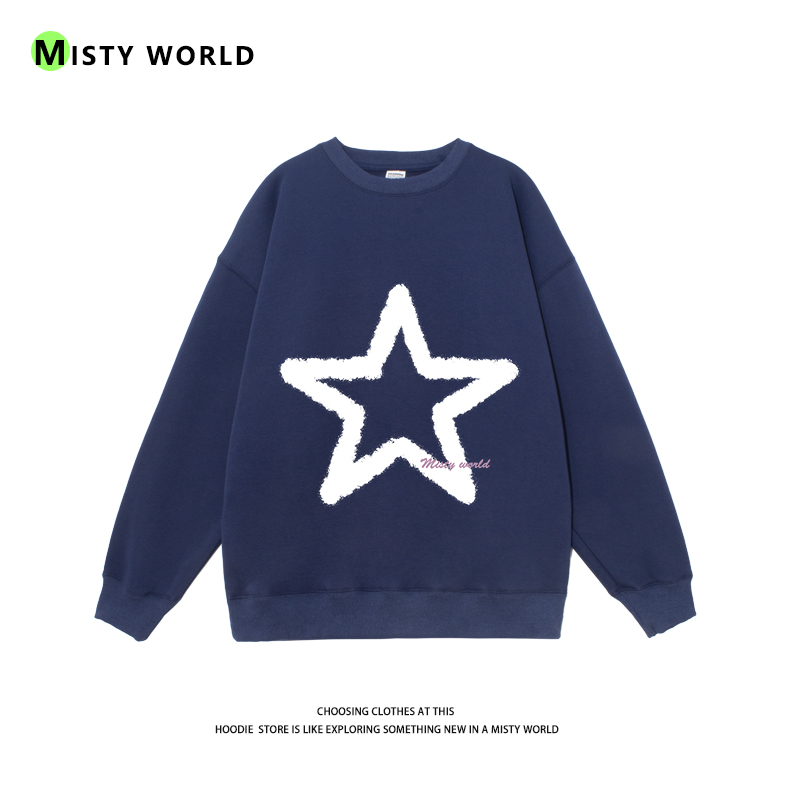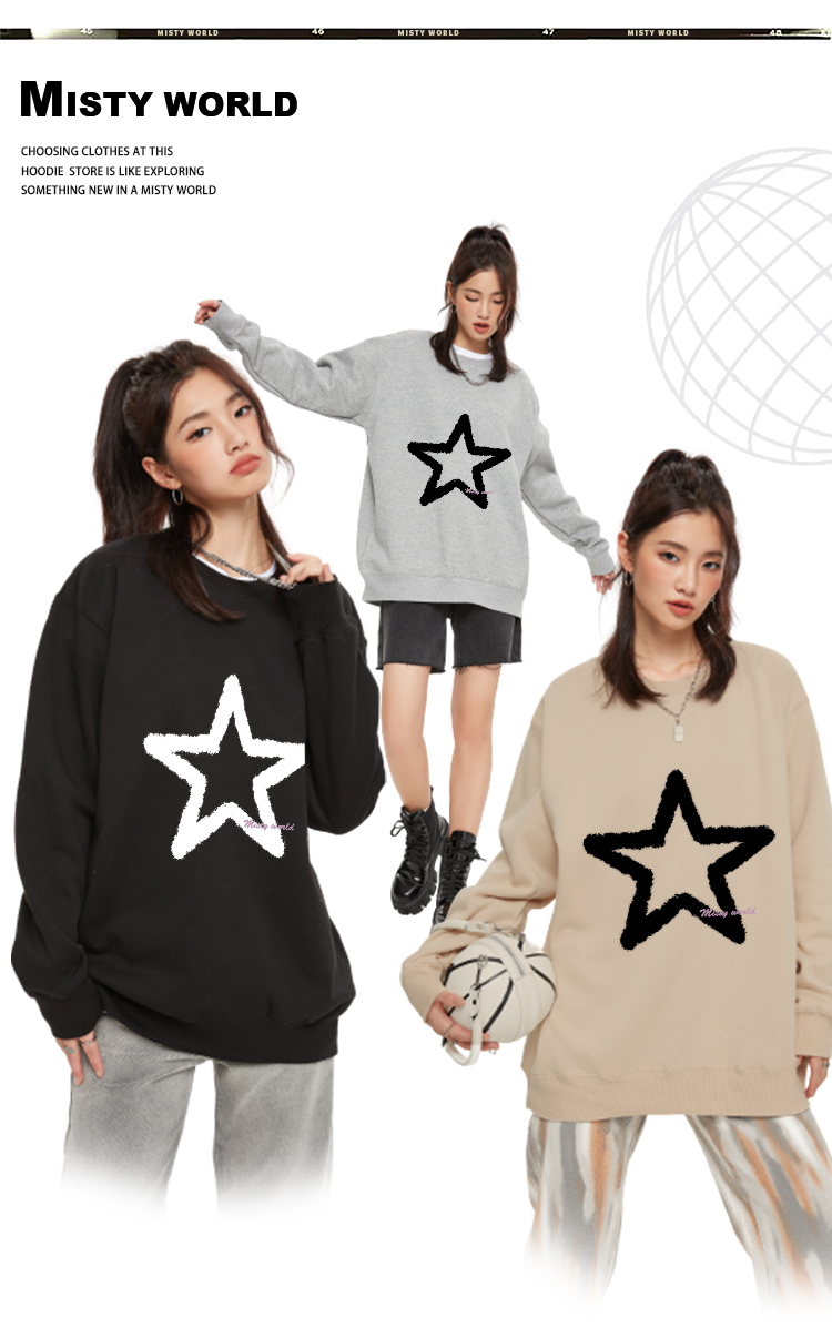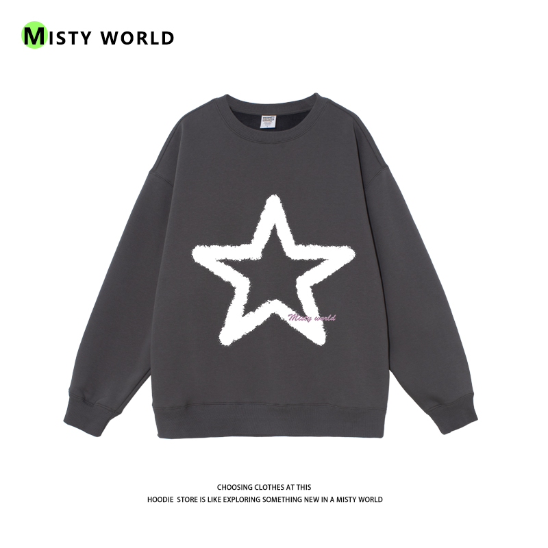 迷霧世界五角星無帽衛衣女2022春秋季新款寬鬆圓領長袖薄款上衣潮