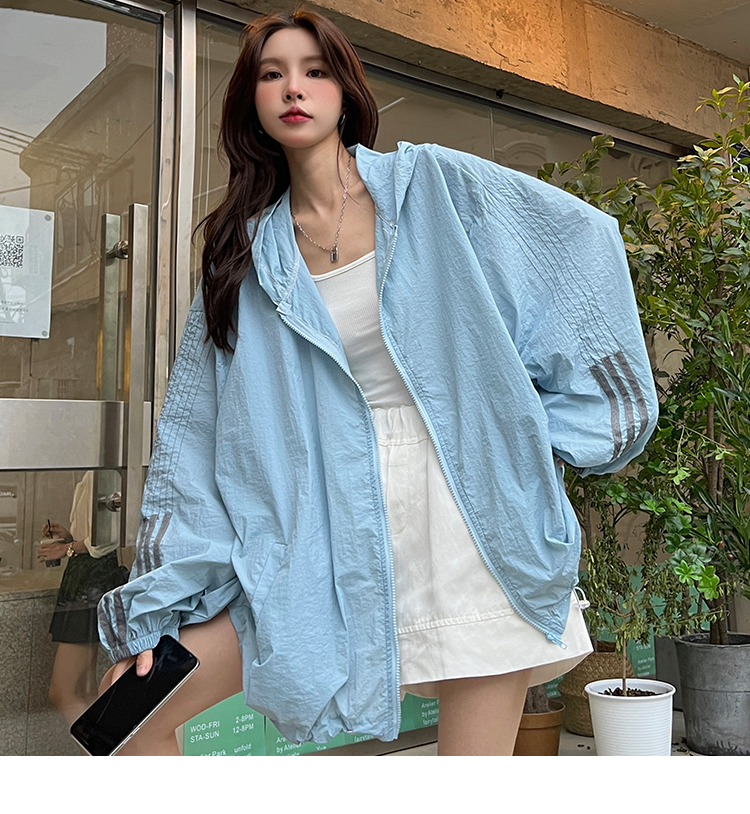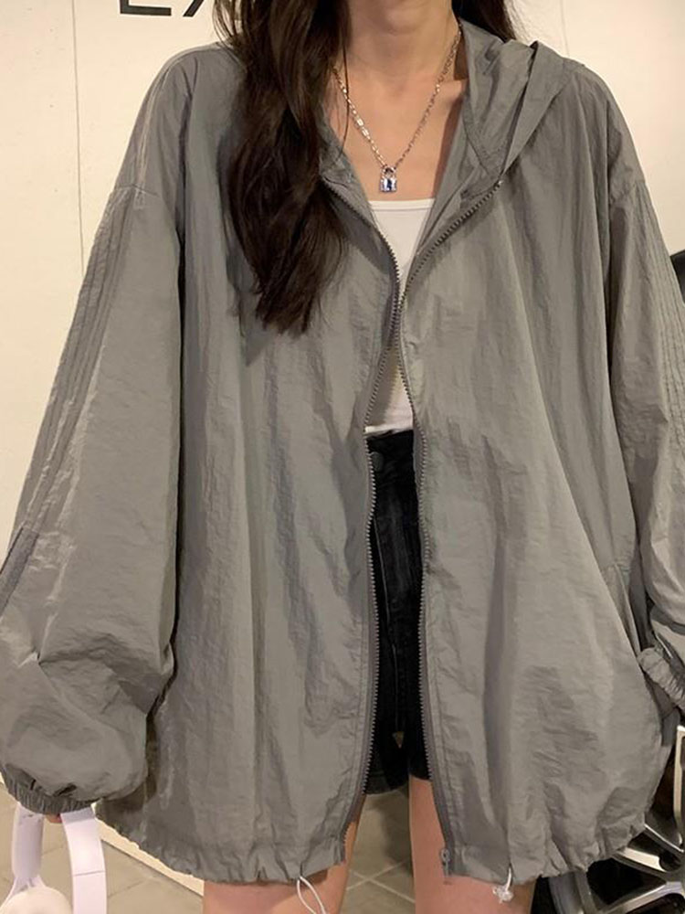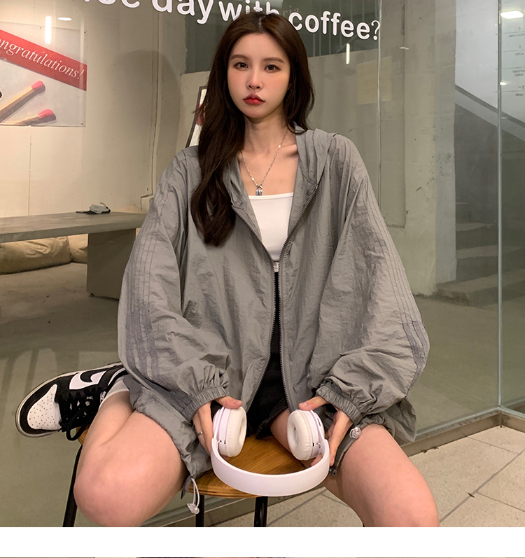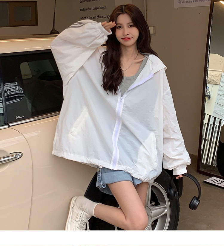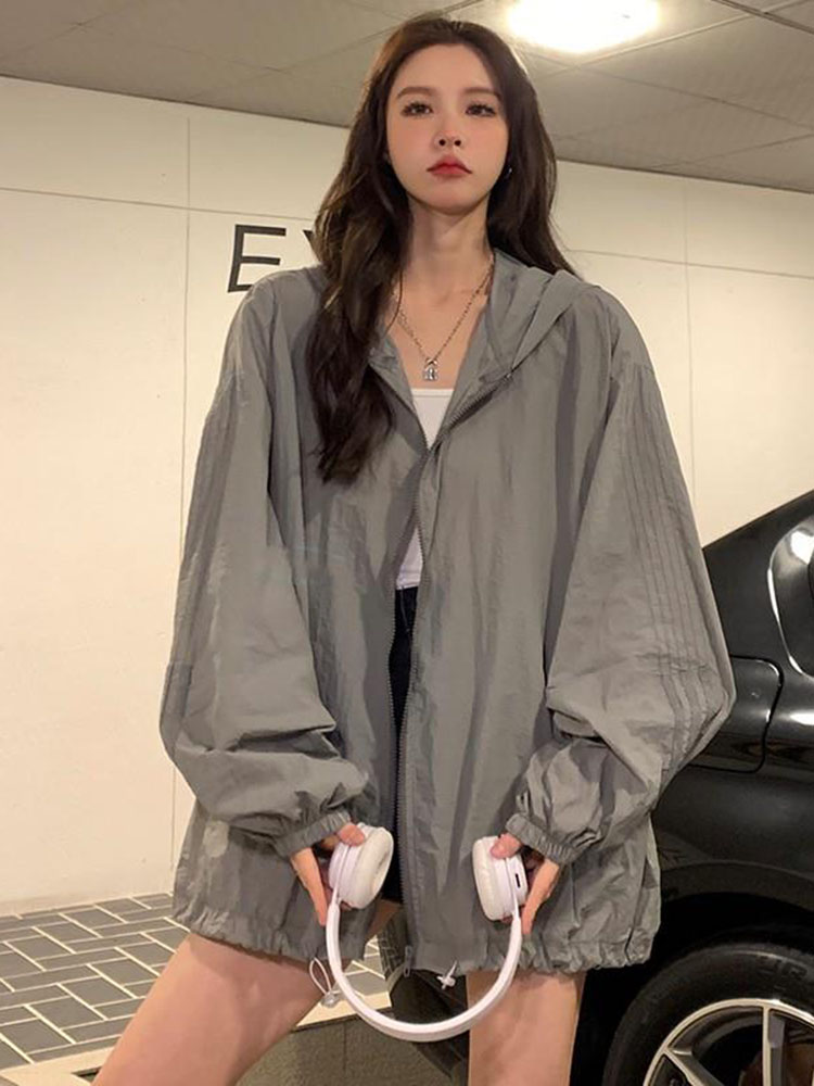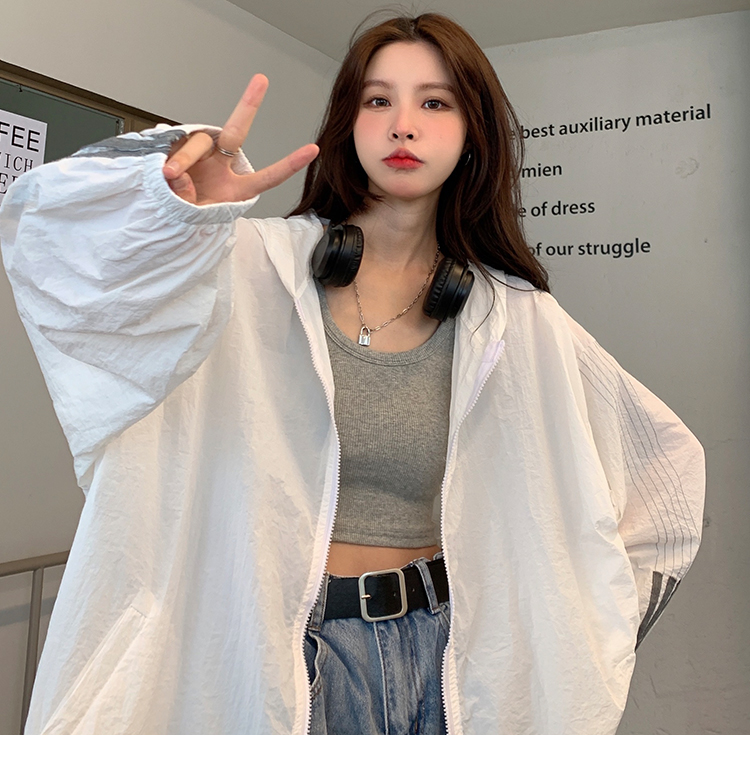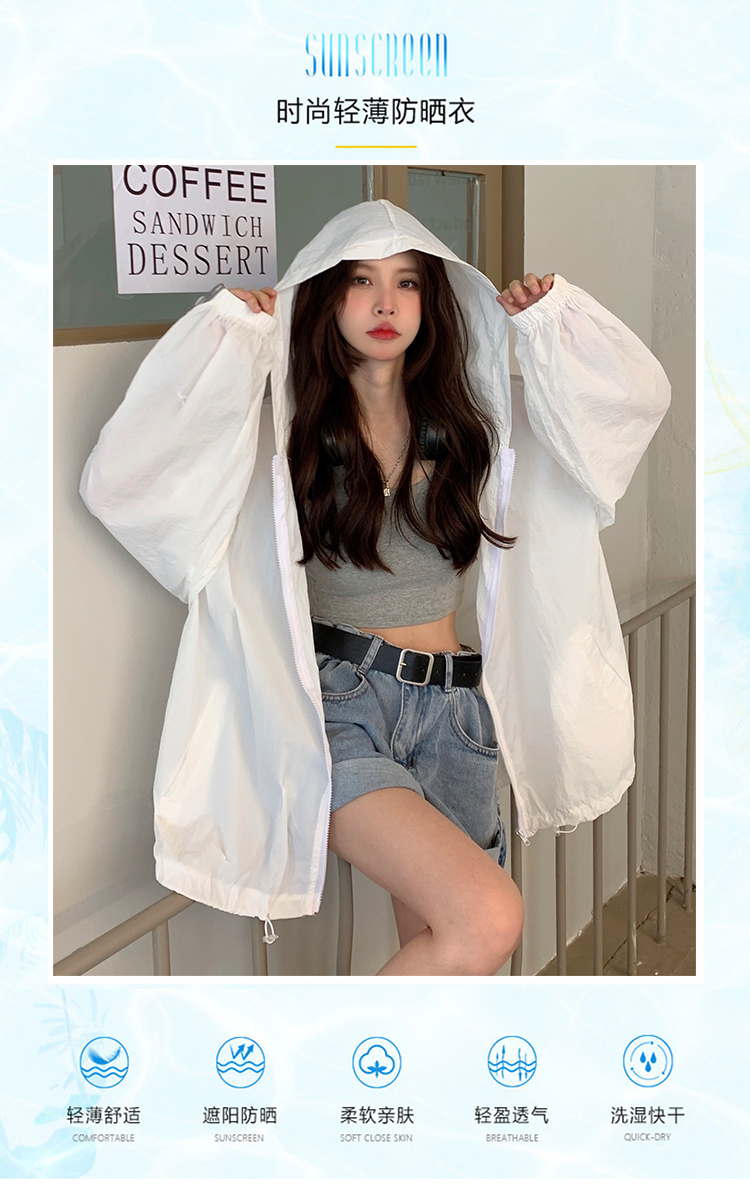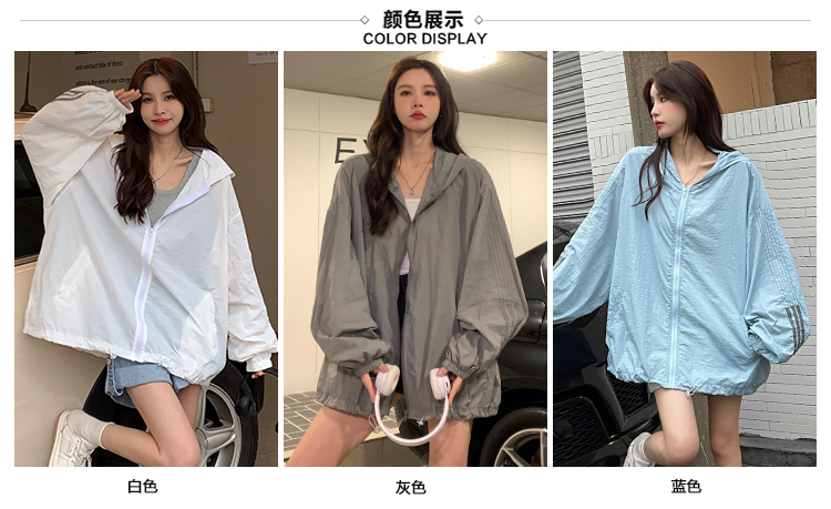 冰絲防曬衣女款輕薄外套夏季寬鬆大尺碼長袖透氣開衫連帽學生防曬服