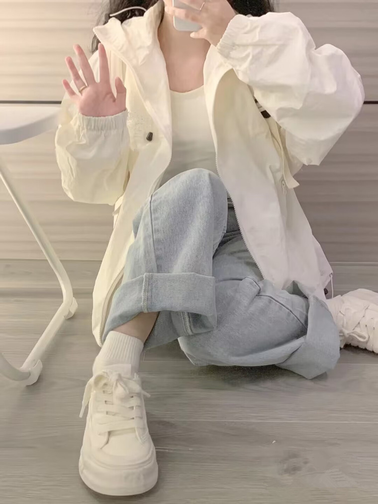 薄款防曬衣外套女夏季2023美式復古chic連帽上衣寬鬆運動衝鋒衣潮