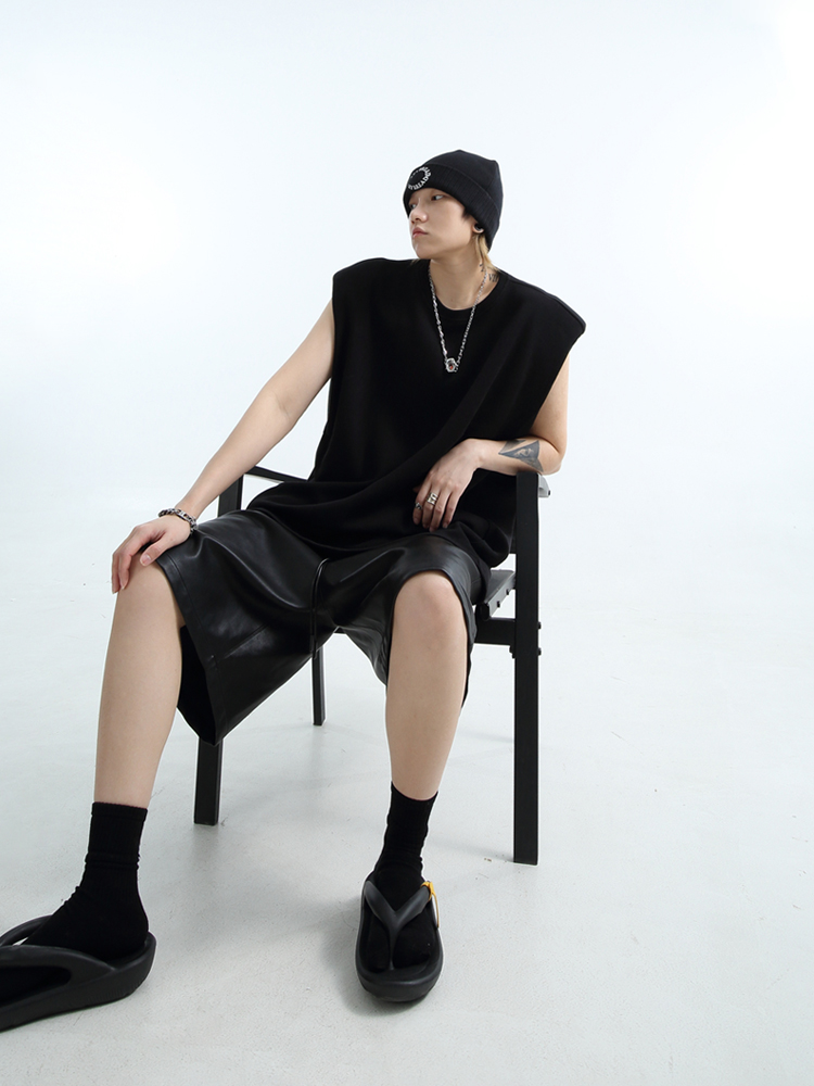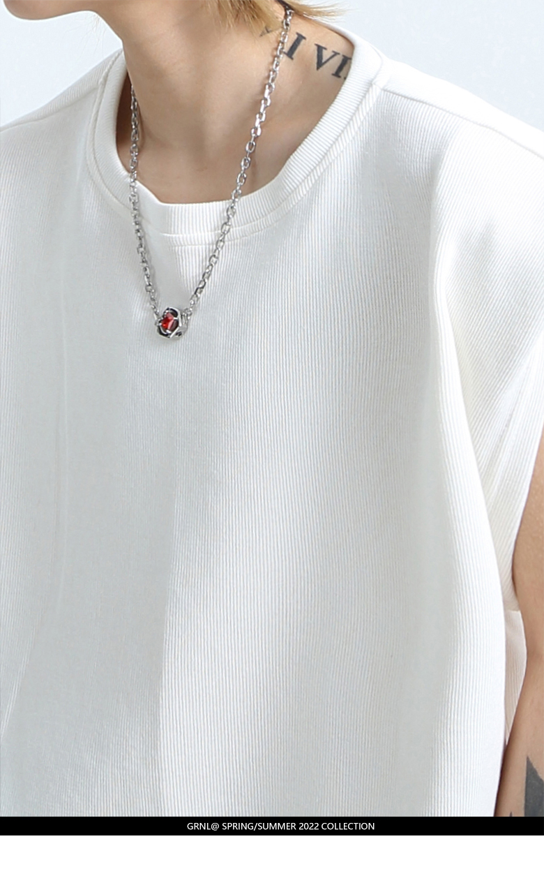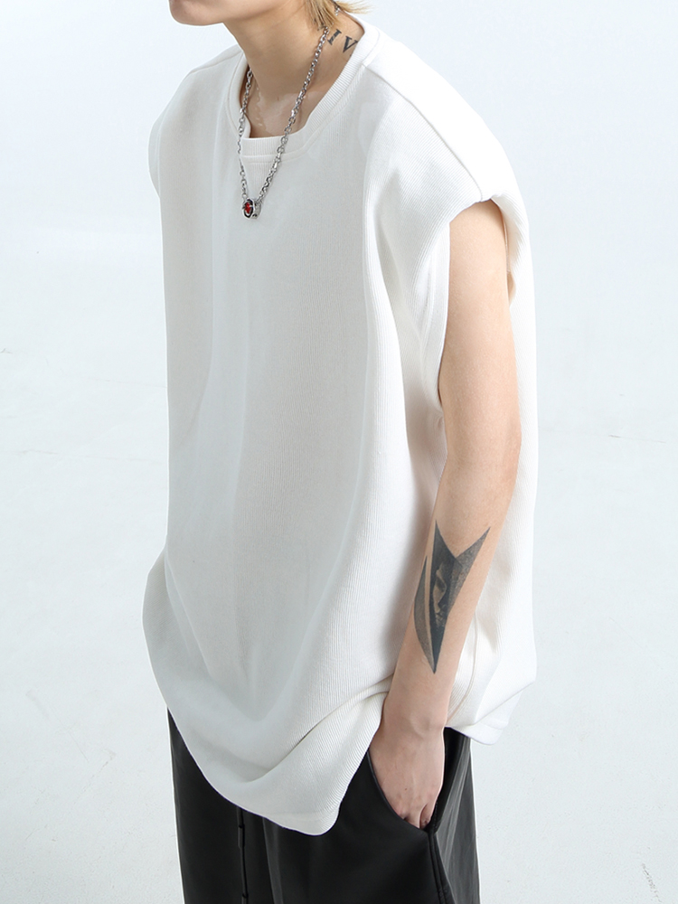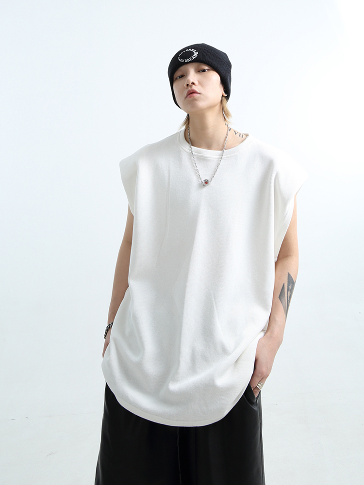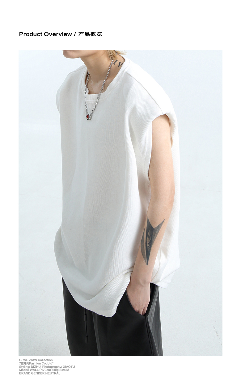 「GRNL」腔調主義者 原創設計廓形紋理無袖背心男女圓領墊肩T恤