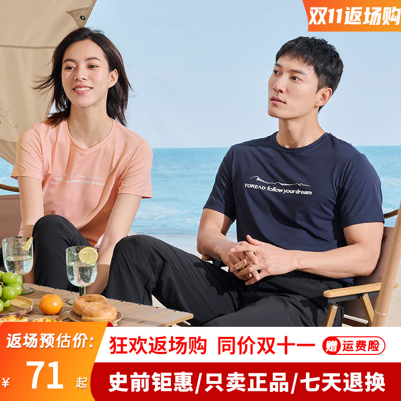 探路者短袖男女23新款春夏戶外速乾彈力運動T恤TAJJBL81727/82728