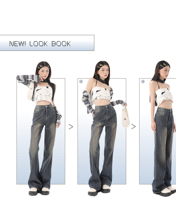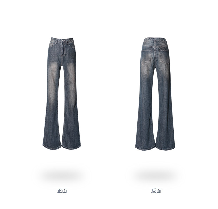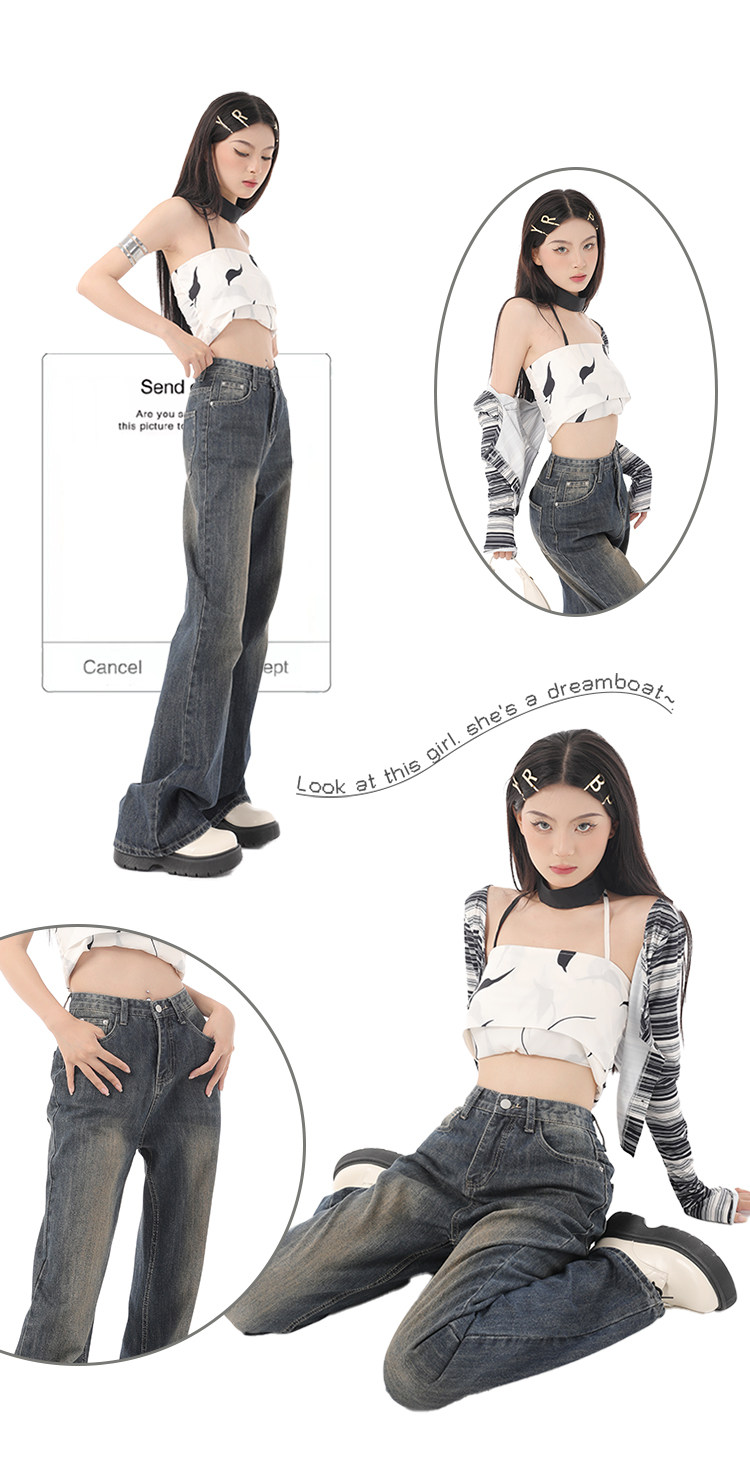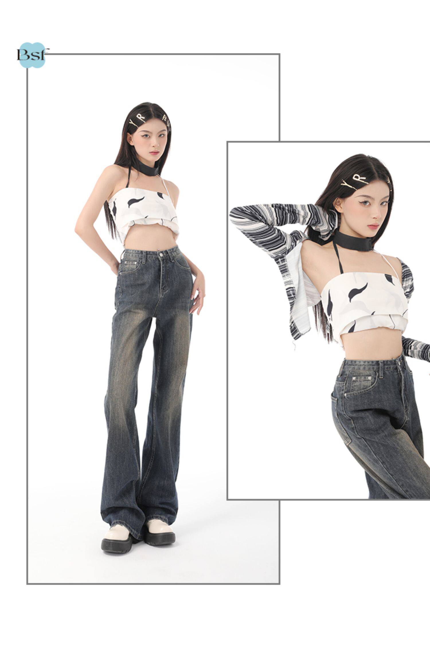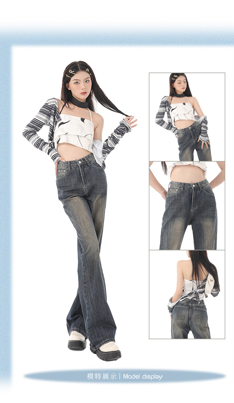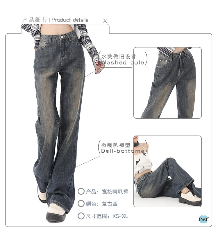 新款美式復古喇叭牛仔褲女2023春夏高街加長寬鬆直筒闊腿微喇長褲