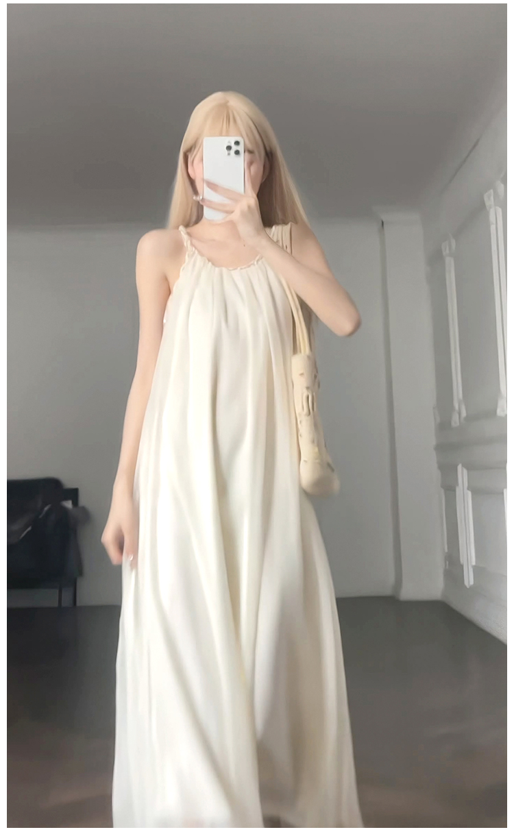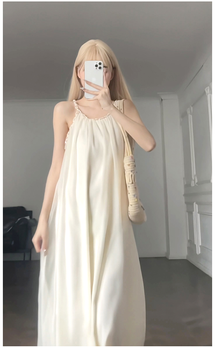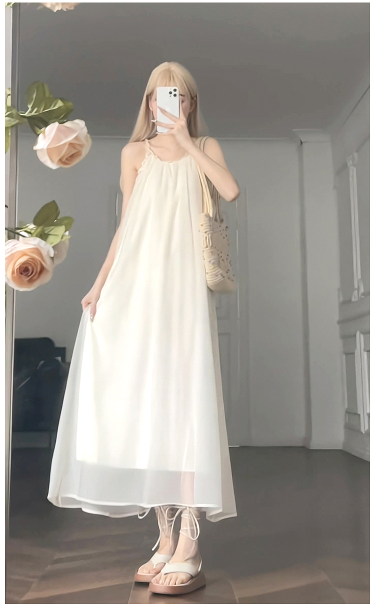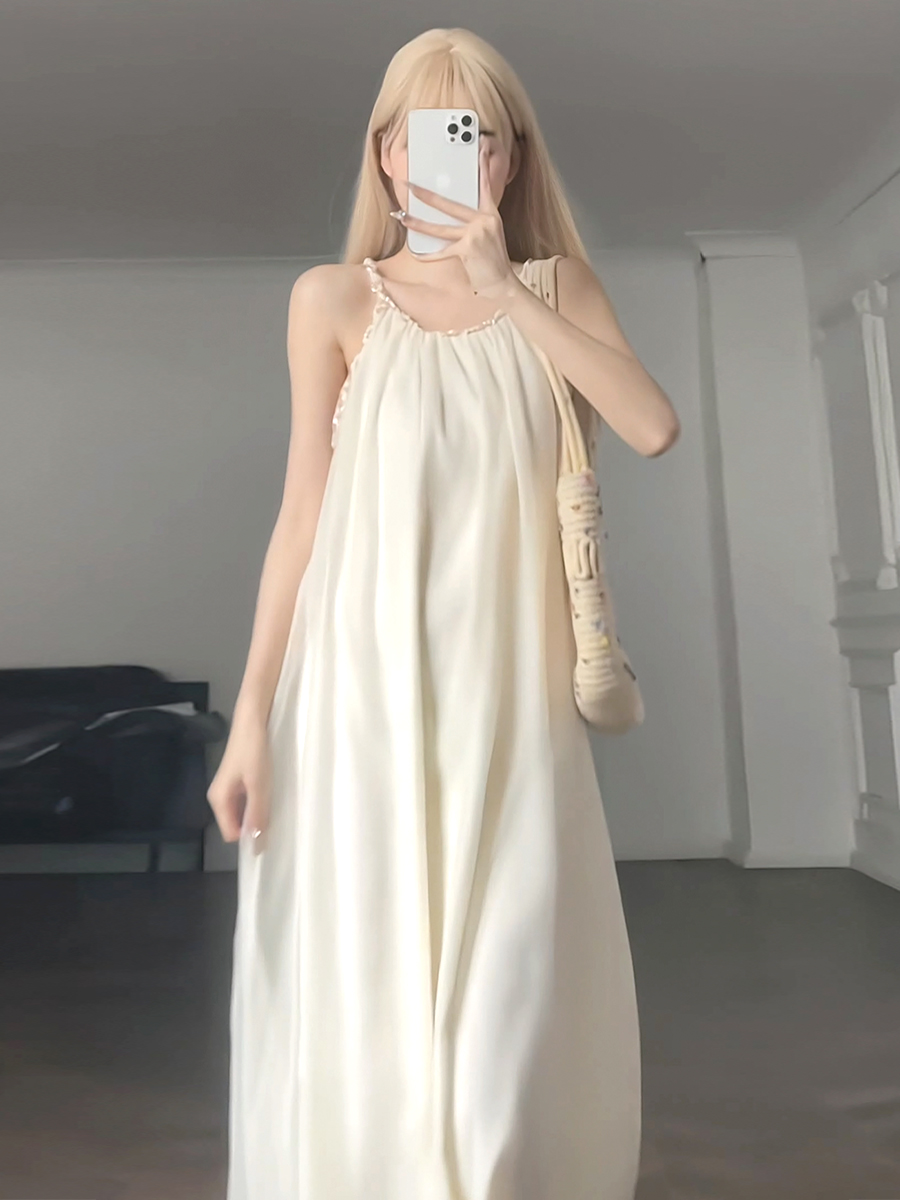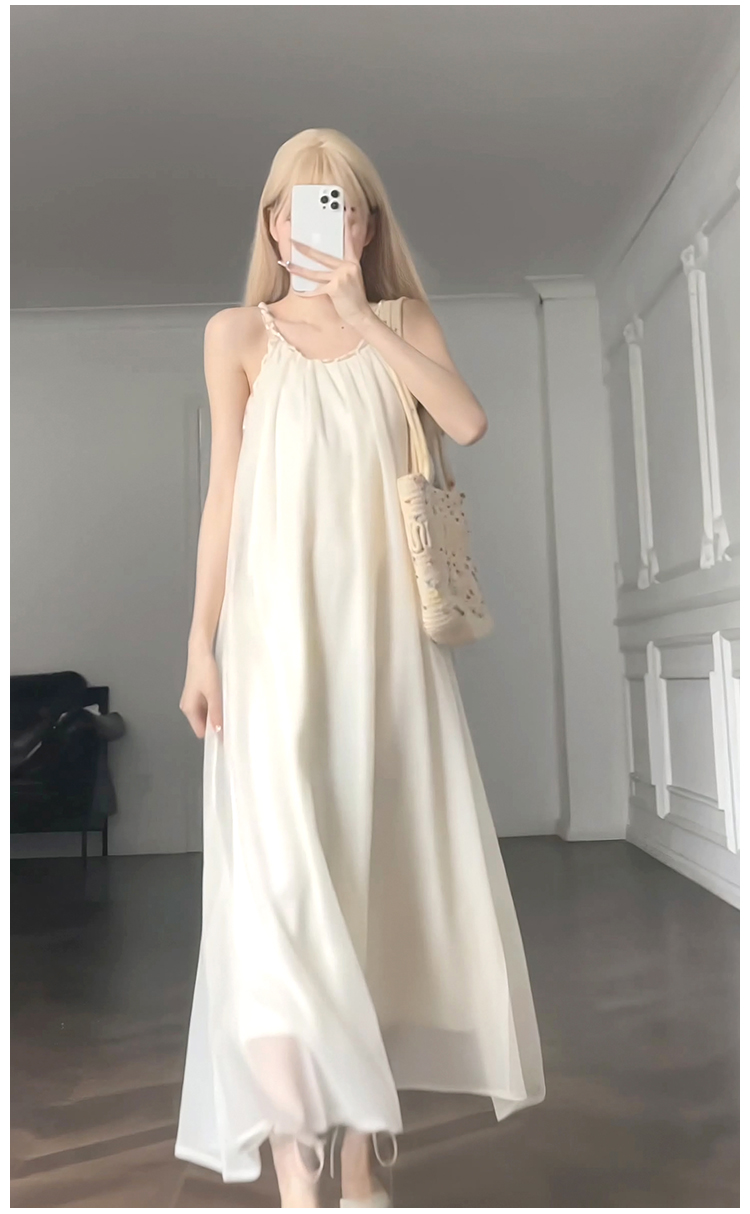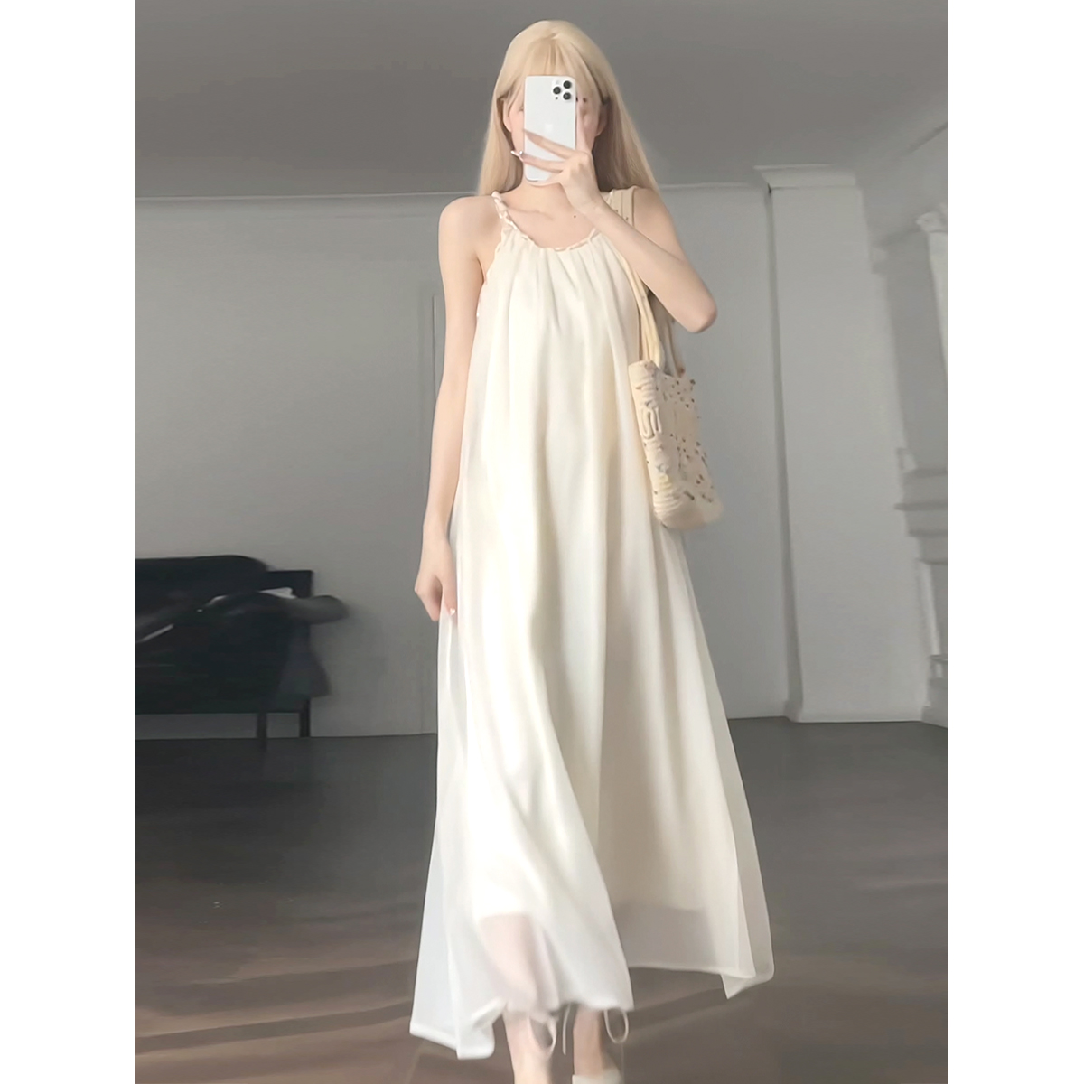 溫柔風茶歇法式吊帶洋裝2023新款質感高級感裙子女夏季度假長裙