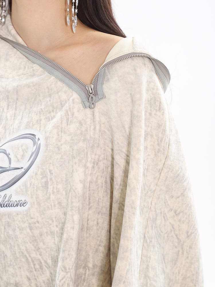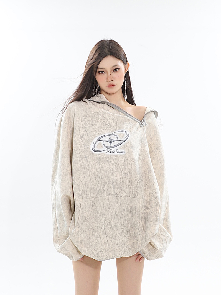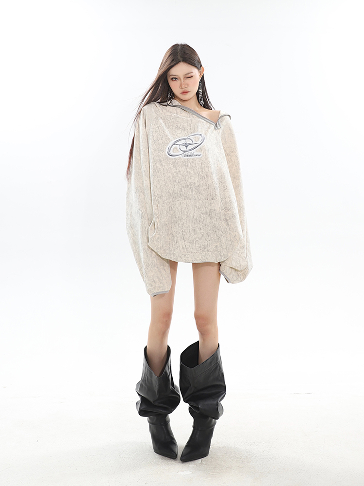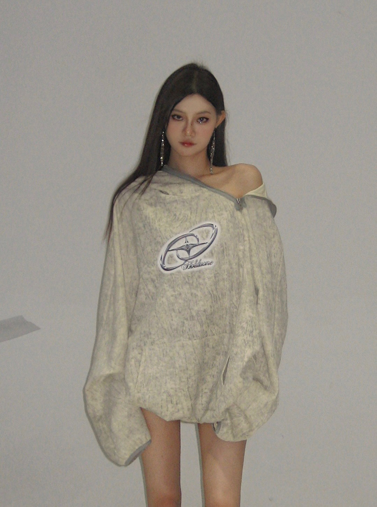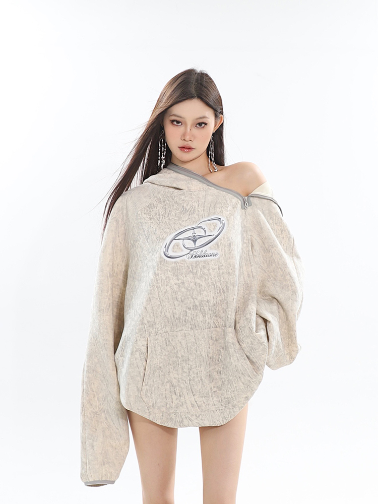 CCUP SPACE 原創設計感早秋新款上衣薄款金屬拉鍊露肩連帽衫衛衣