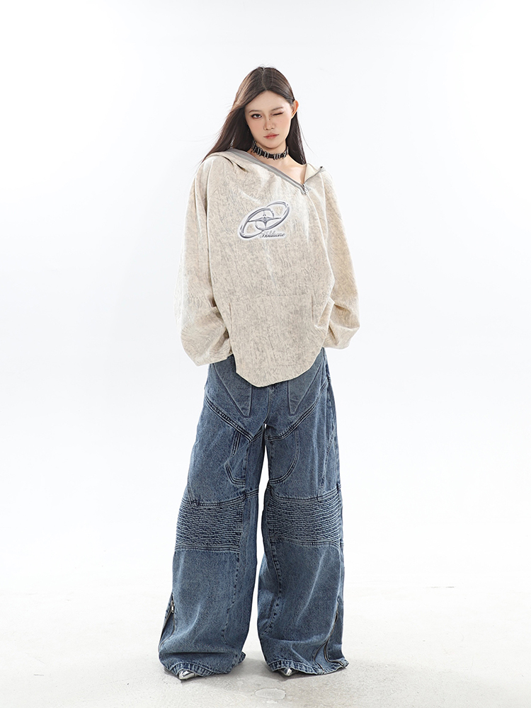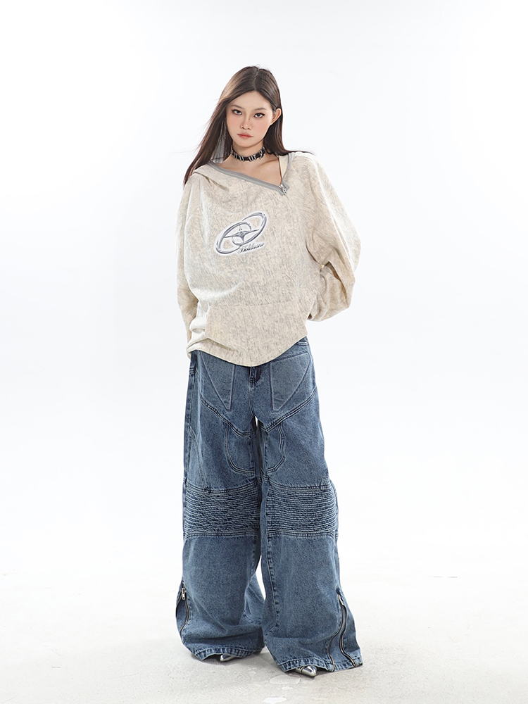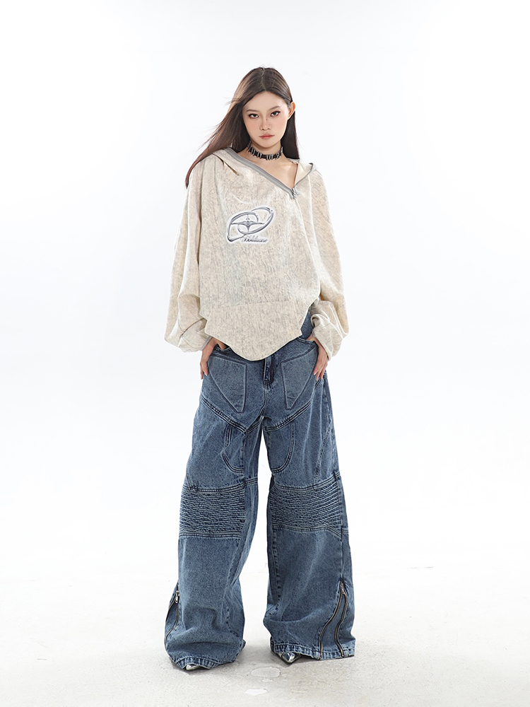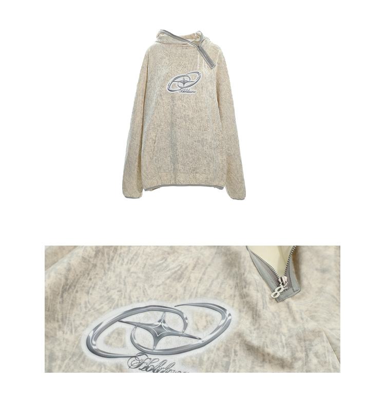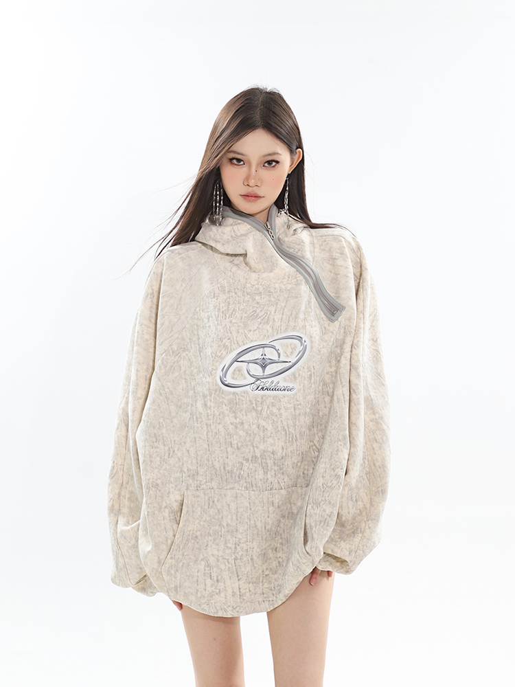 CCUP SPACE 原創設計感早秋新款上衣薄款金屬拉鍊露肩連帽衫衛衣