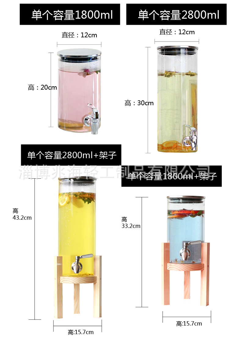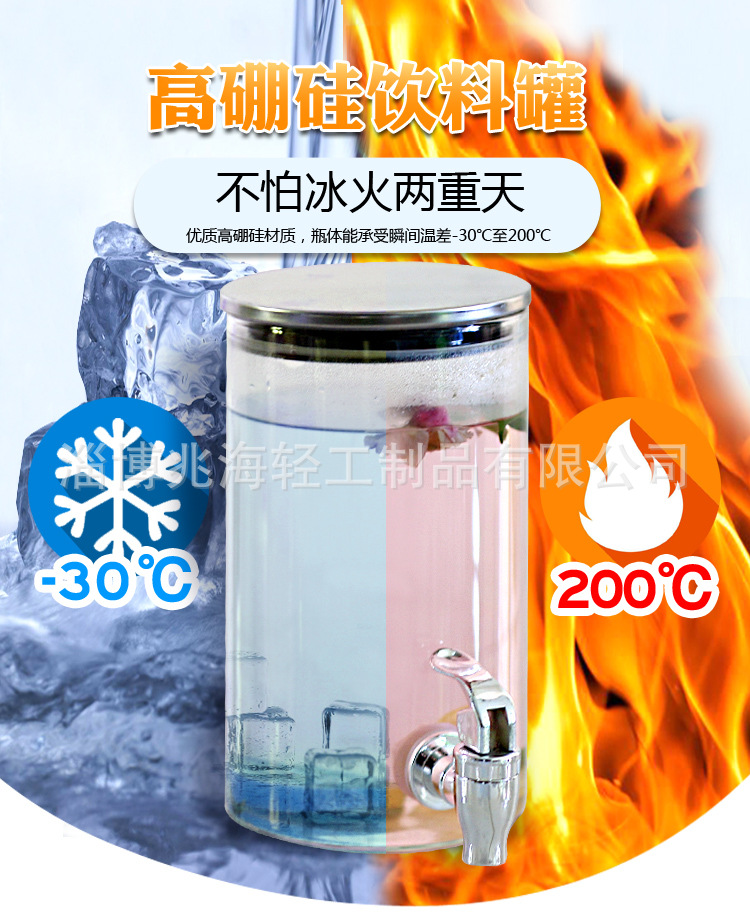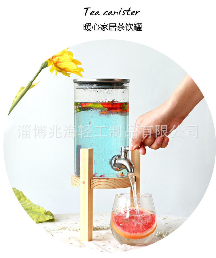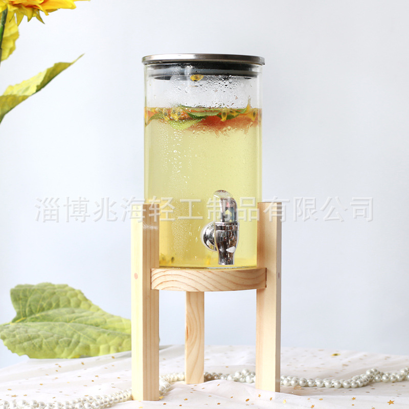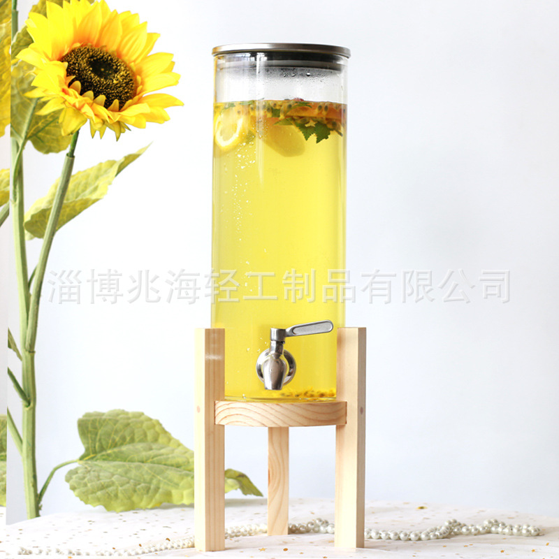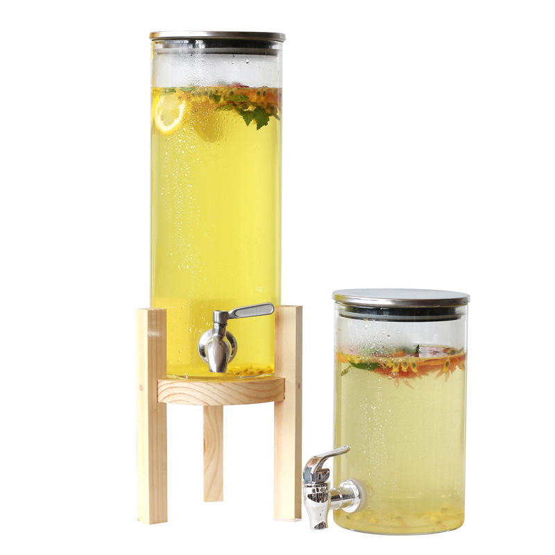 耐高温高硼硅玻璃果汁罐带龙头家用甜品台酒店自助饮料桶花果茶罐