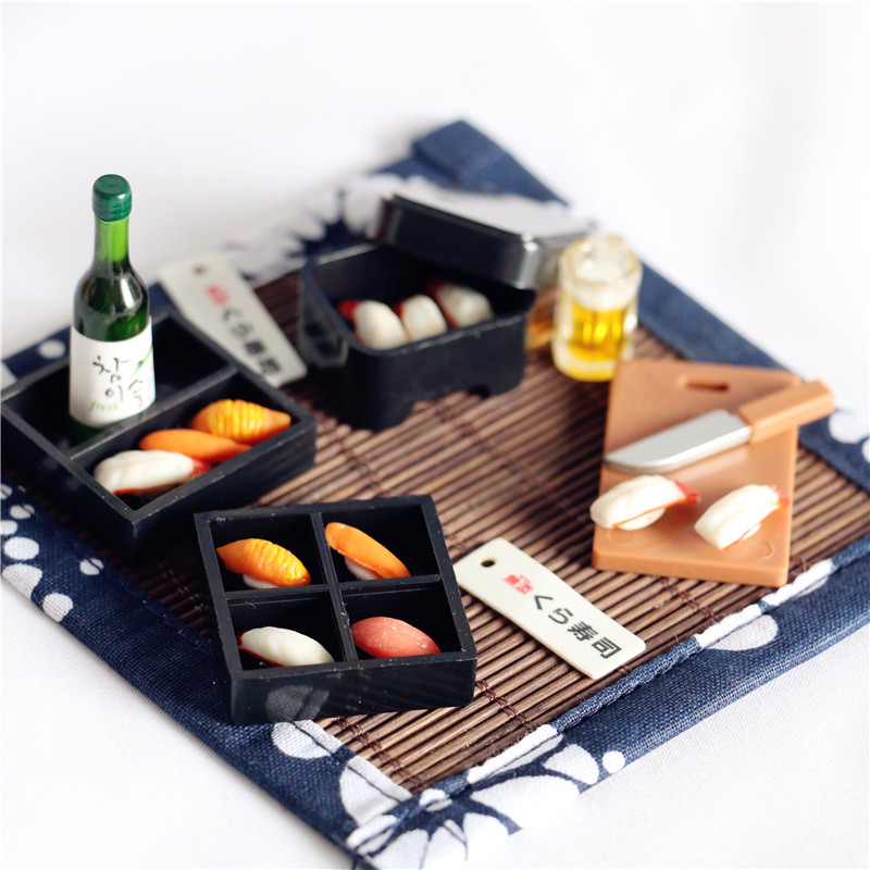 Dollhouse娃娃屋迷你食玩配件 BJD周边场景便当盘席子 寿司盘散件
