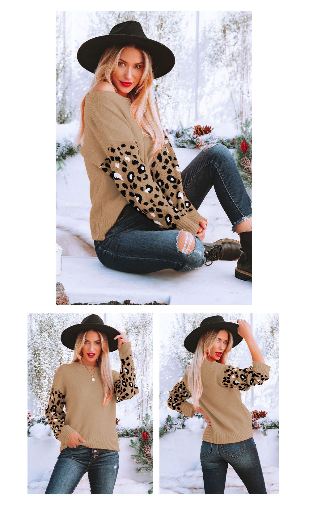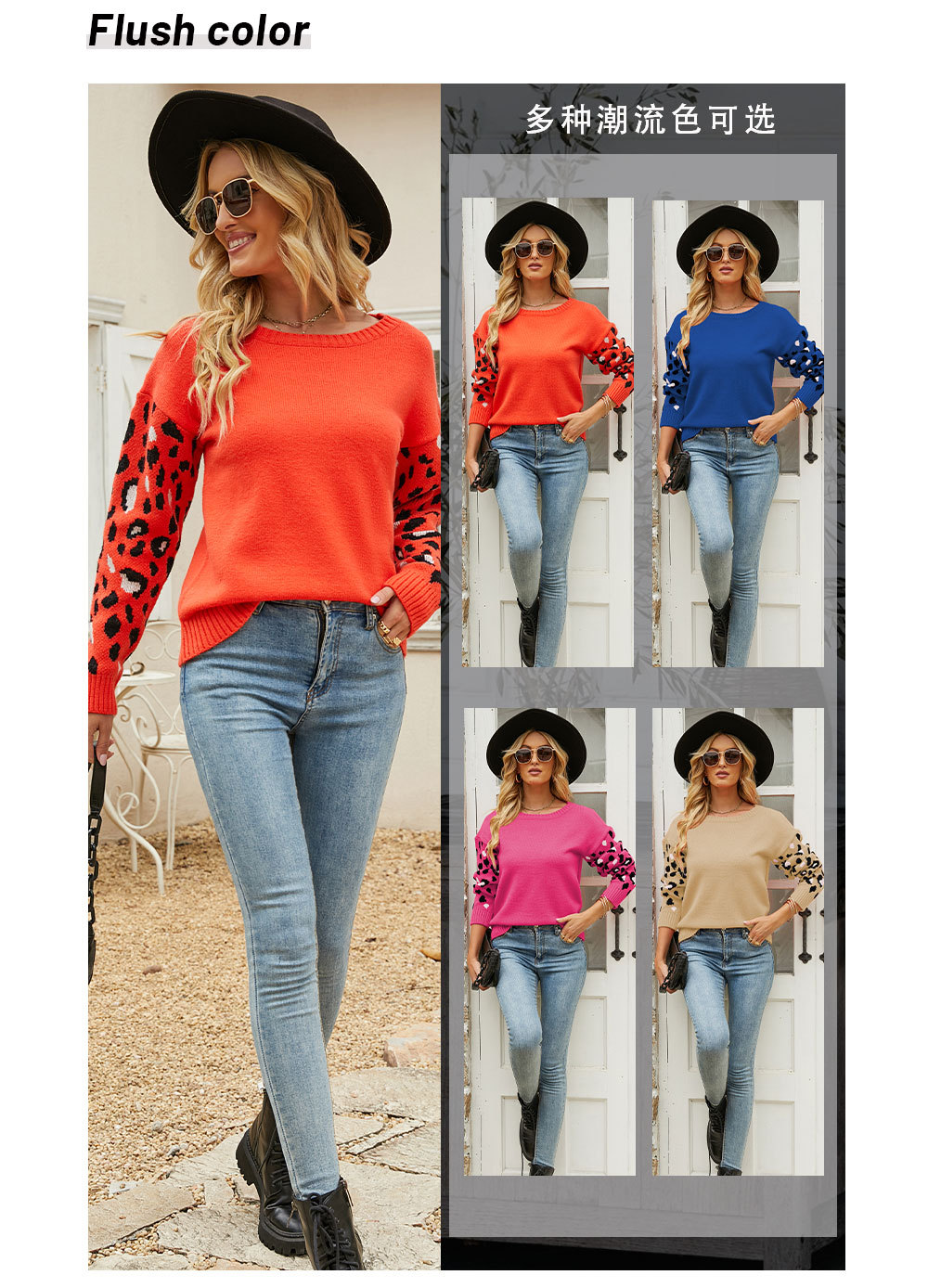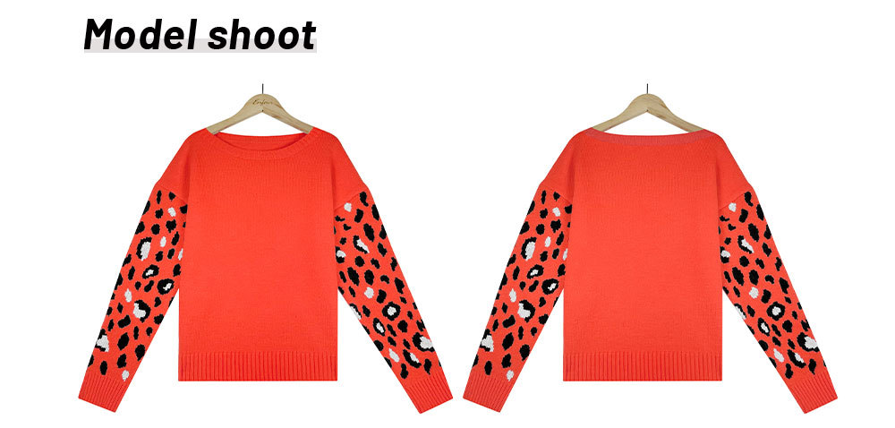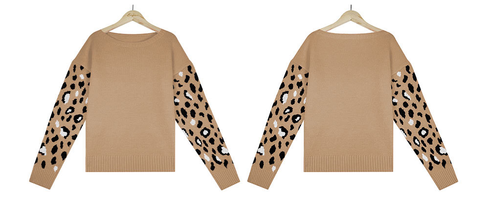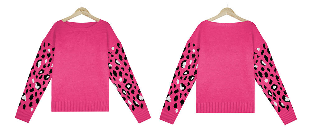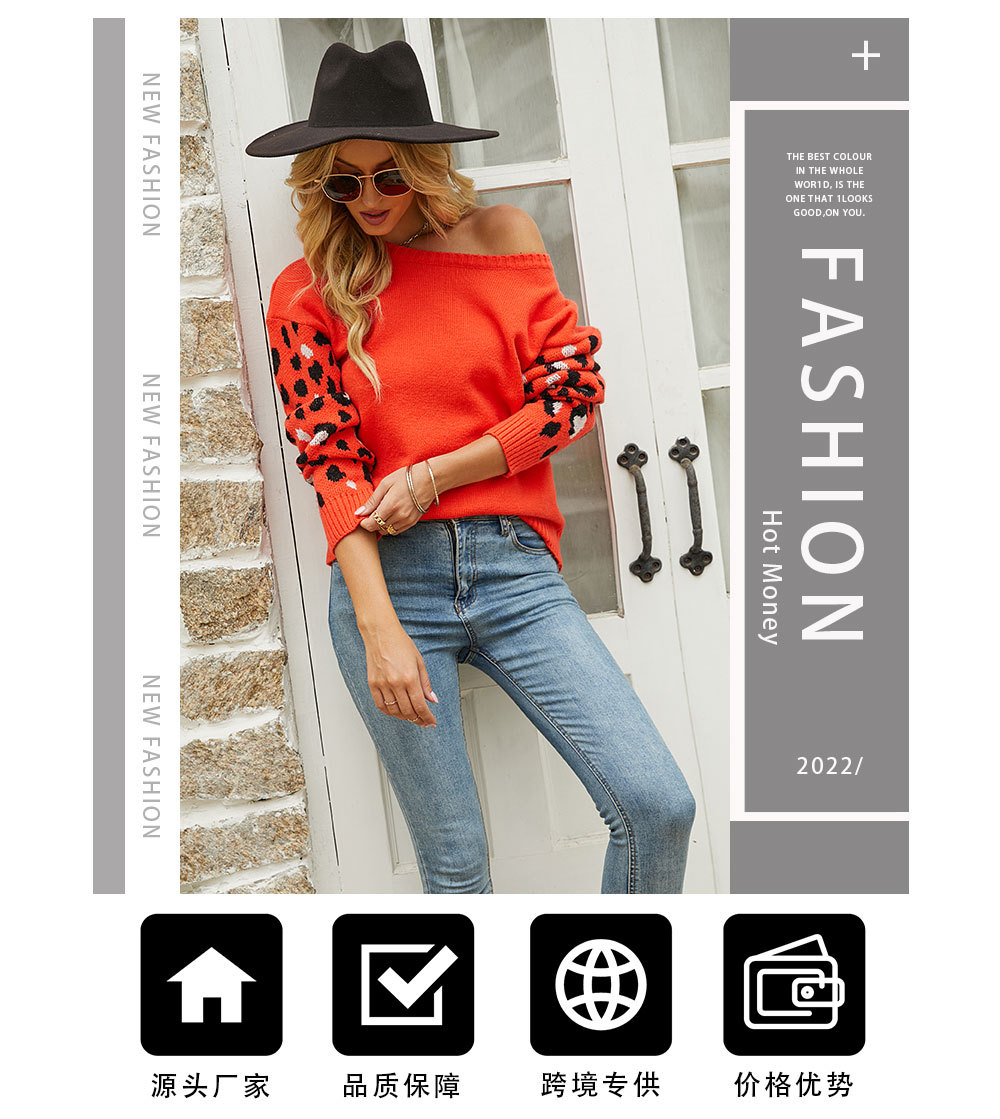 2022秋冬欧美亚马逊宽松圆领豹纹针织衫女外贸跨境大码套头毛衣女