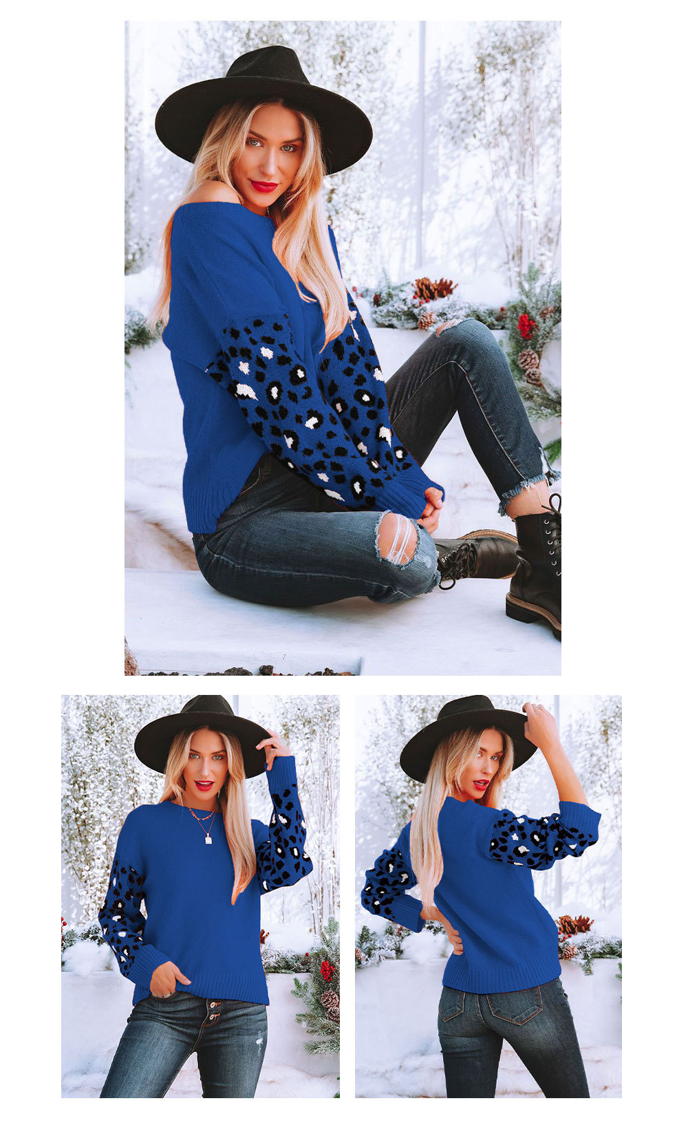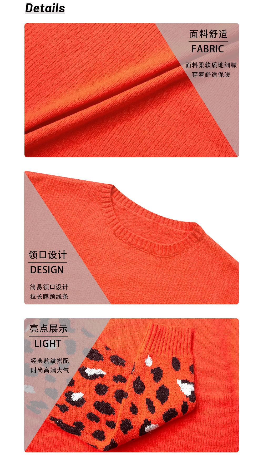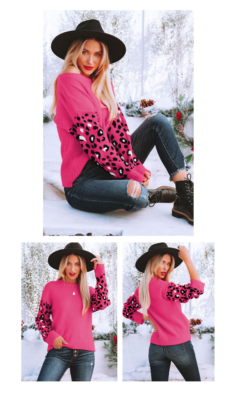 2022秋冬欧美亚马逊宽松圆领豹纹针织衫女外贸跨境大码套头毛衣女