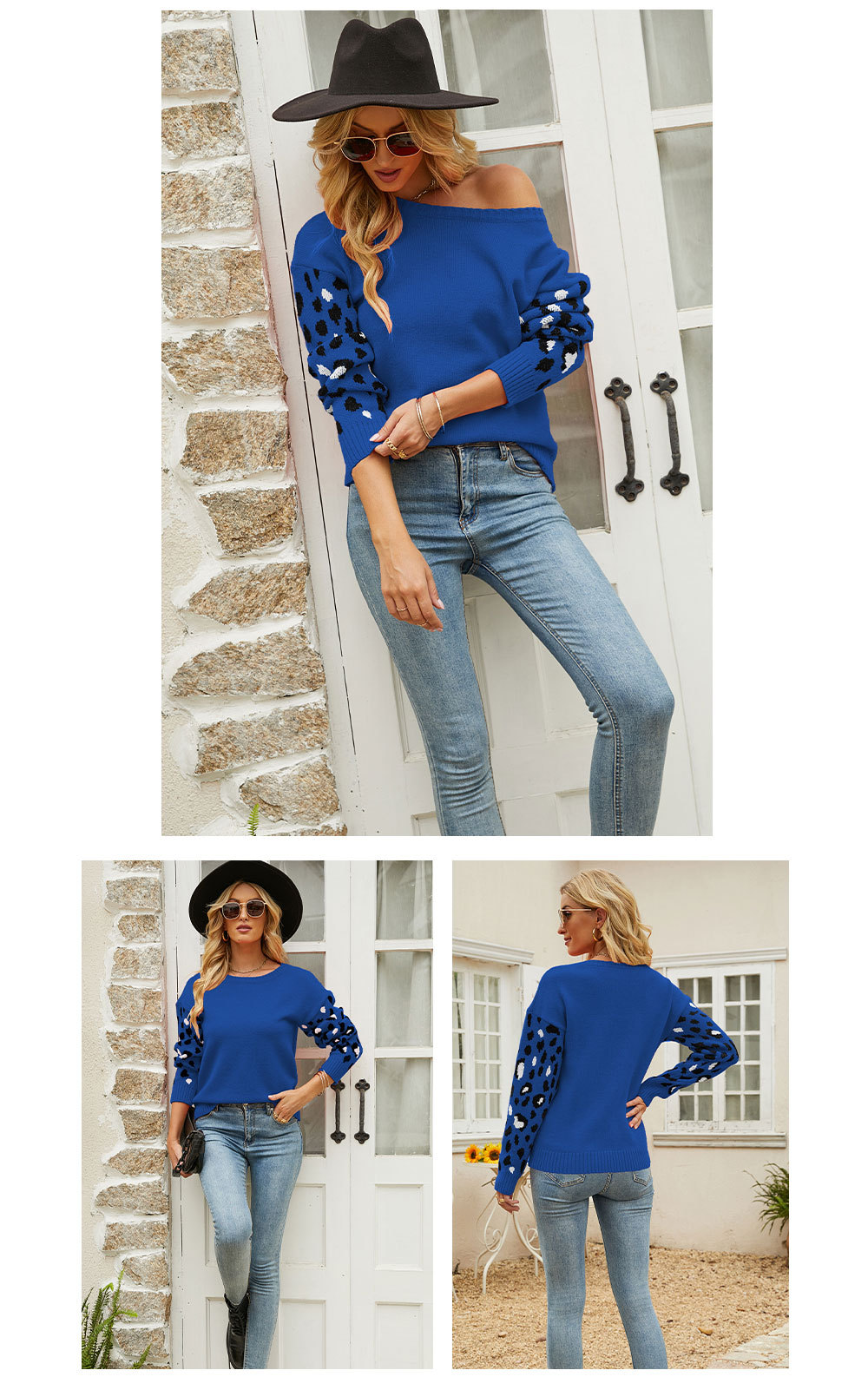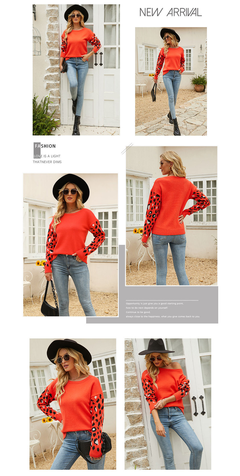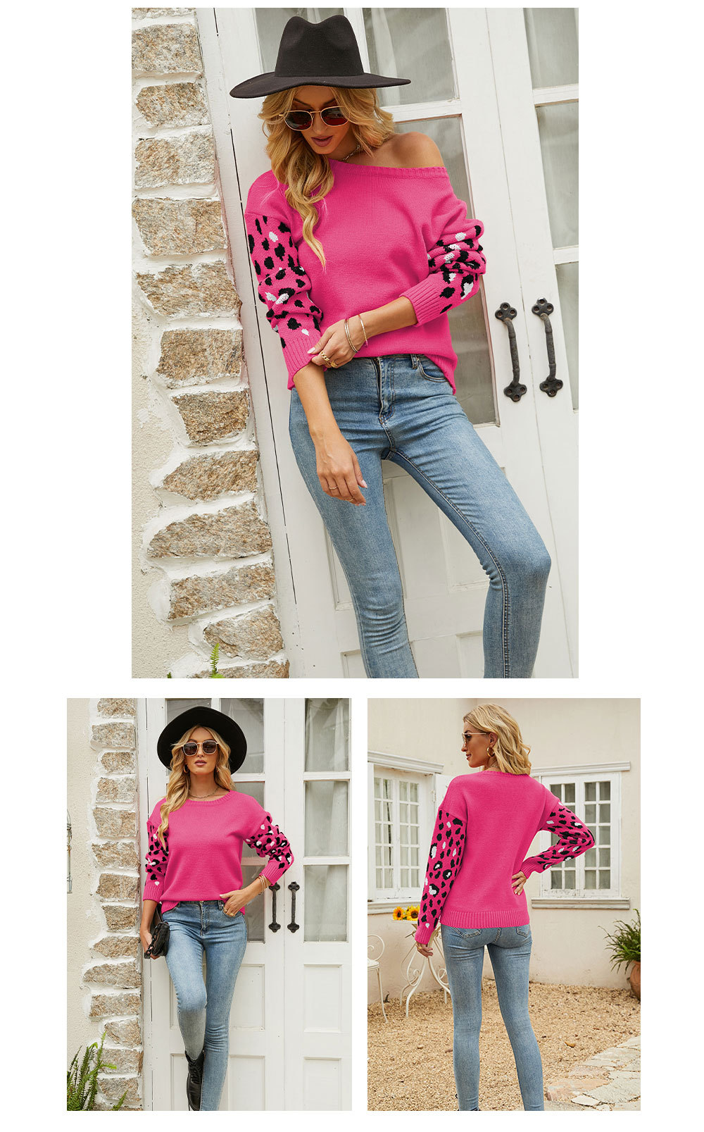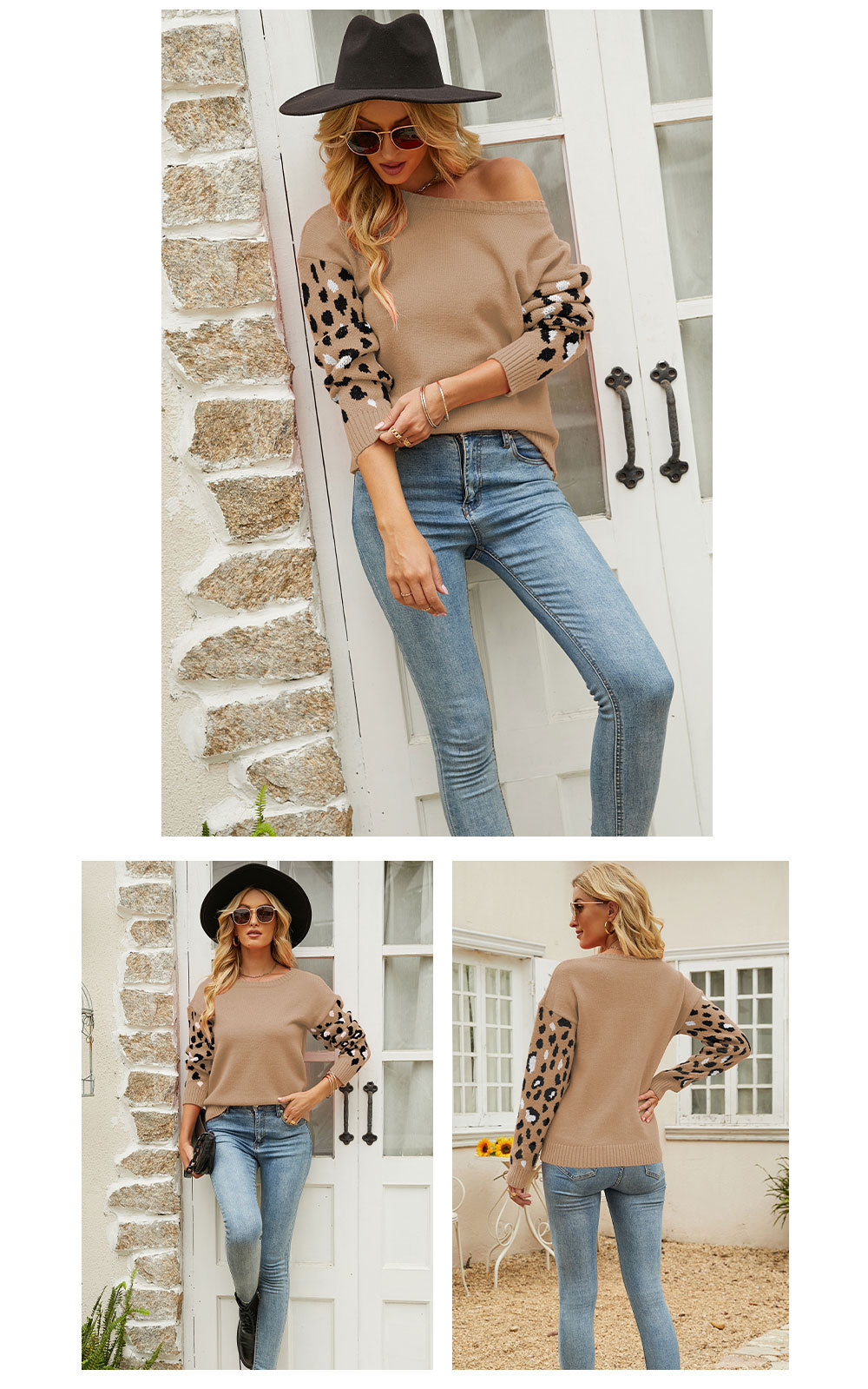 2022秋冬欧美亚马逊宽松圆领豹纹针织衫女外贸跨境大码套头毛衣女