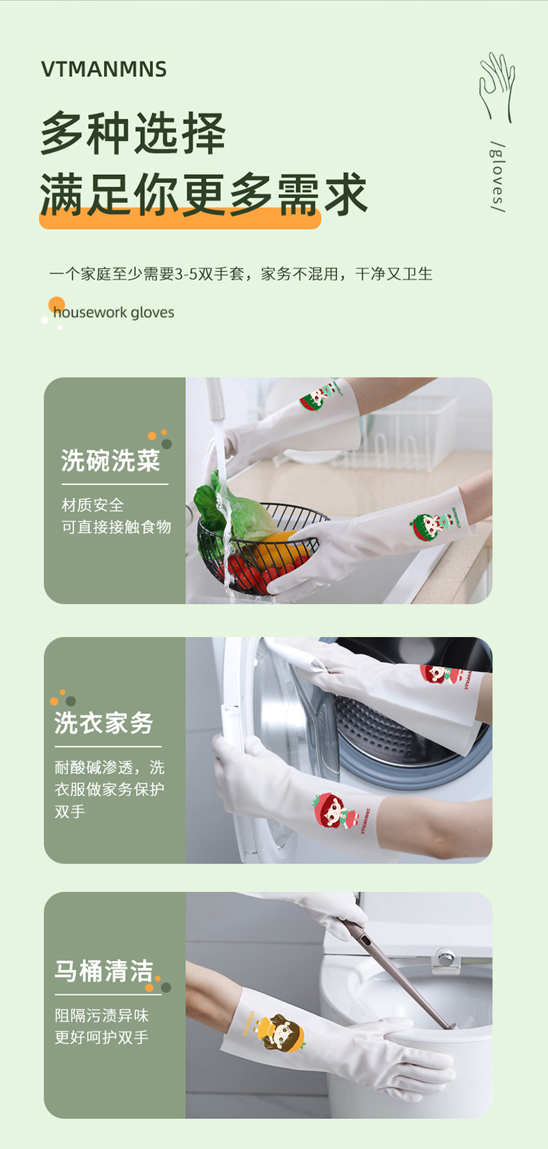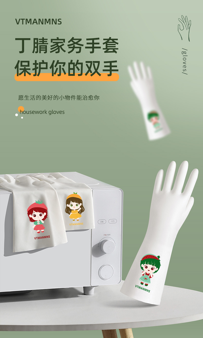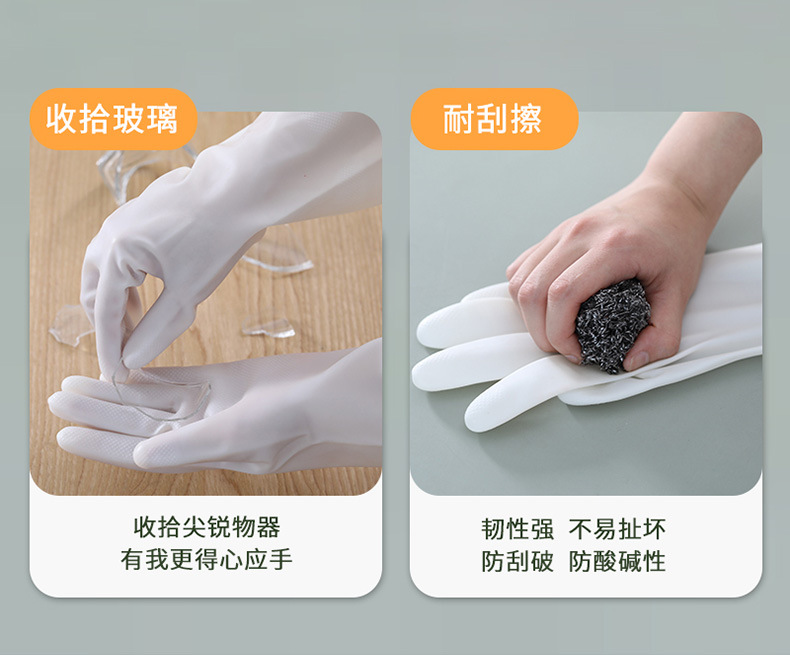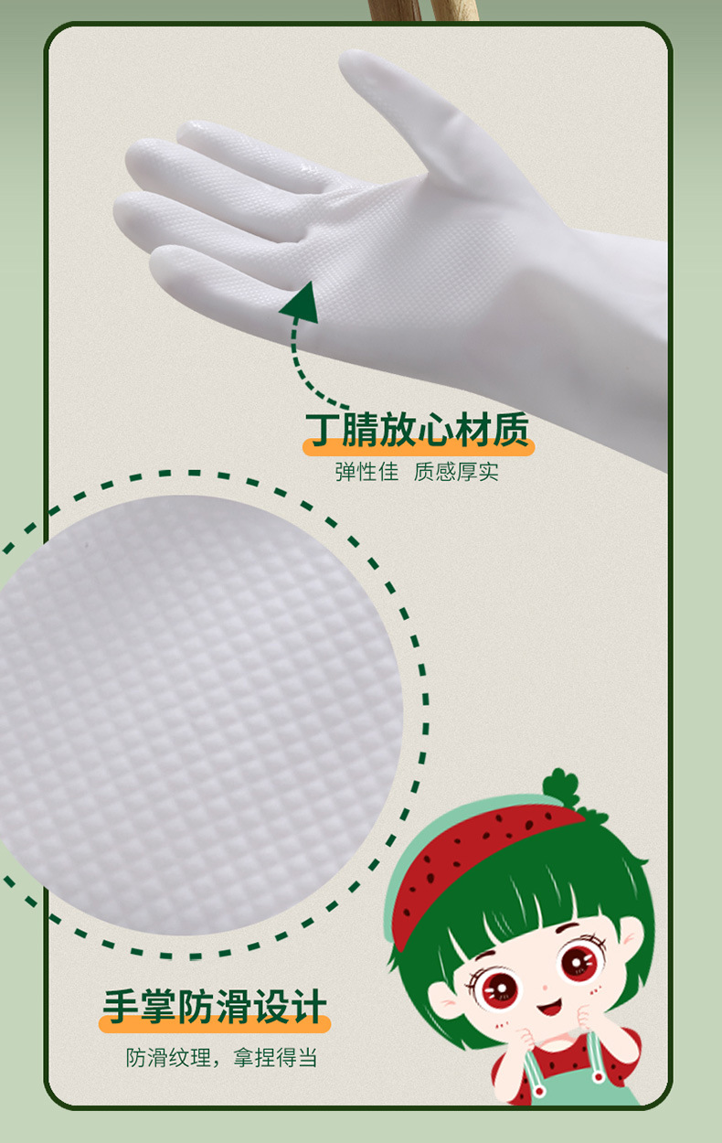 白色丁腈手套 食品级乳胶手套家务清洁加厚洗碗手套厨房耐用手套