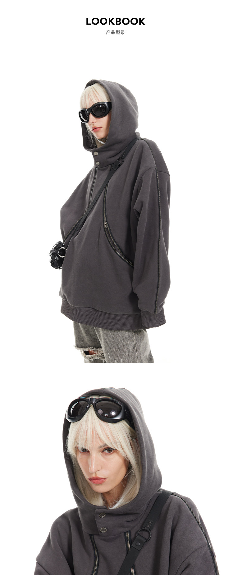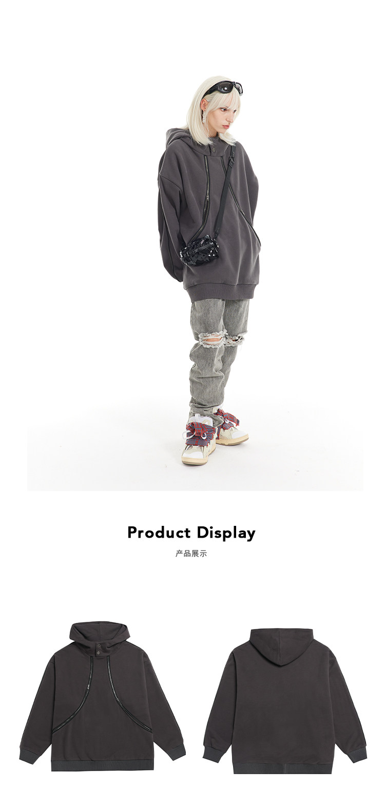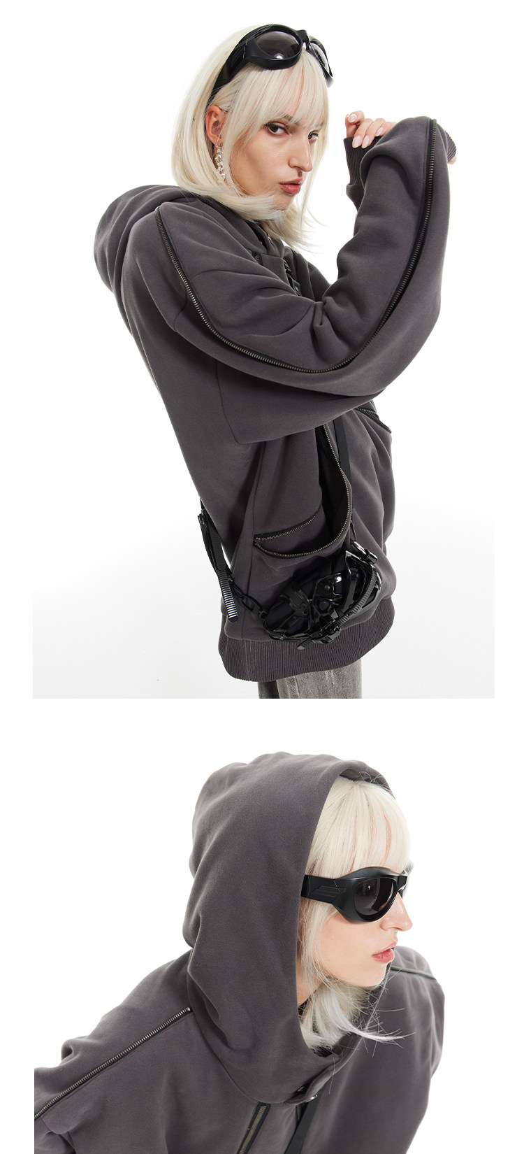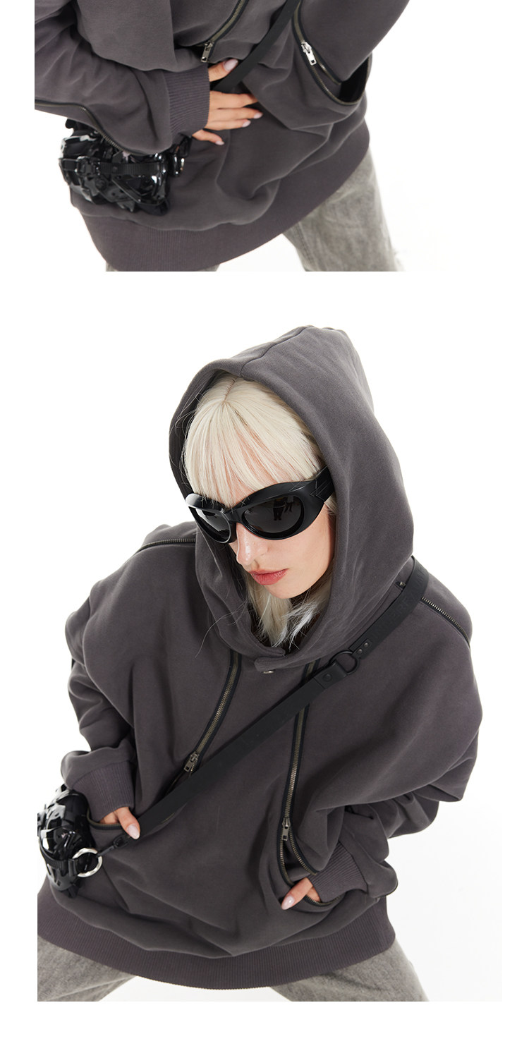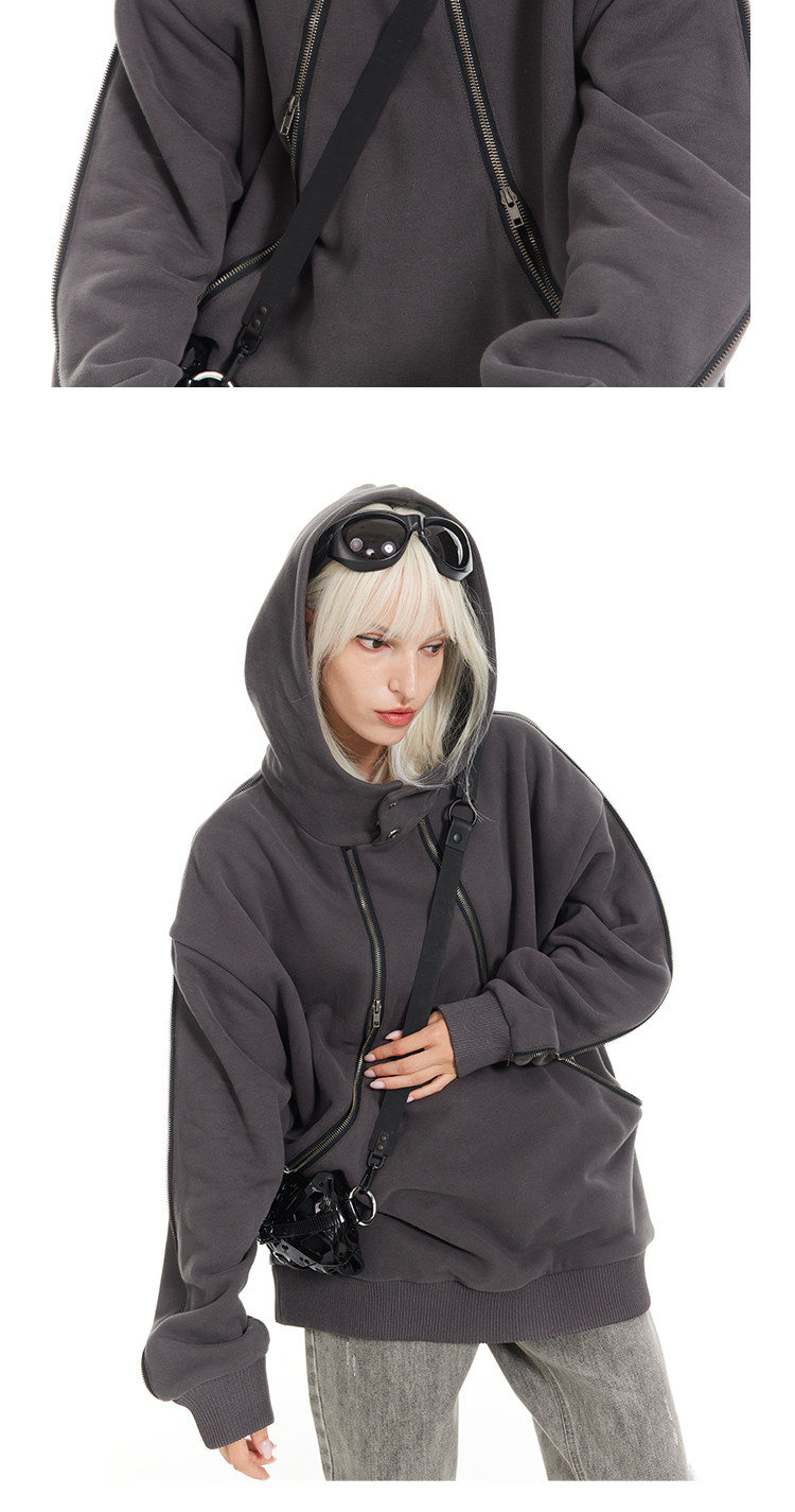 BANDITK GANGN雙拉鍊設計感衛衣女秋季寬鬆連帽衫上衣美式慵懶風