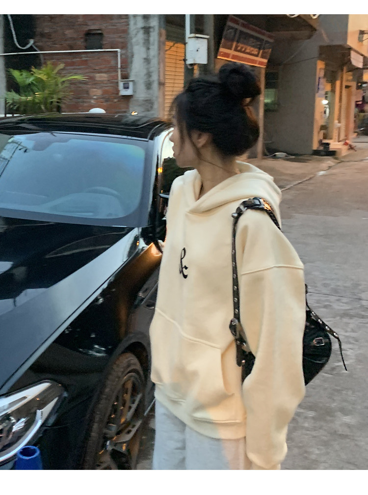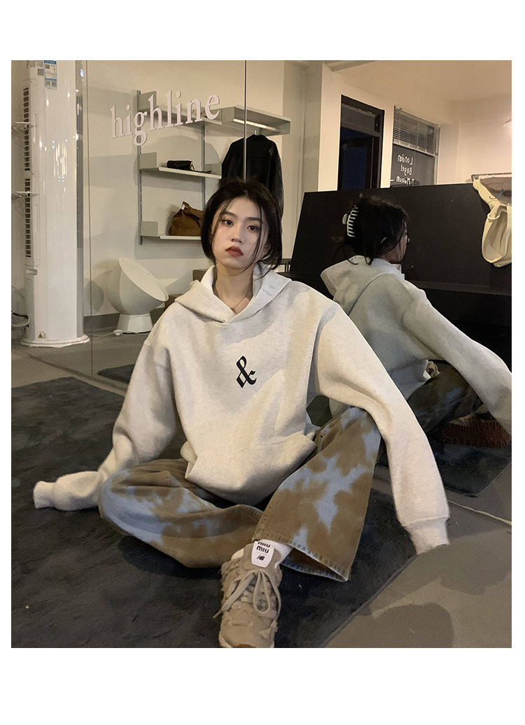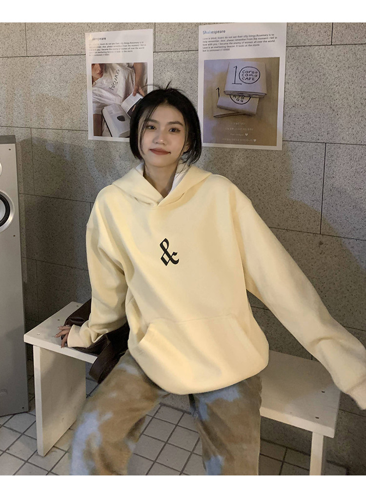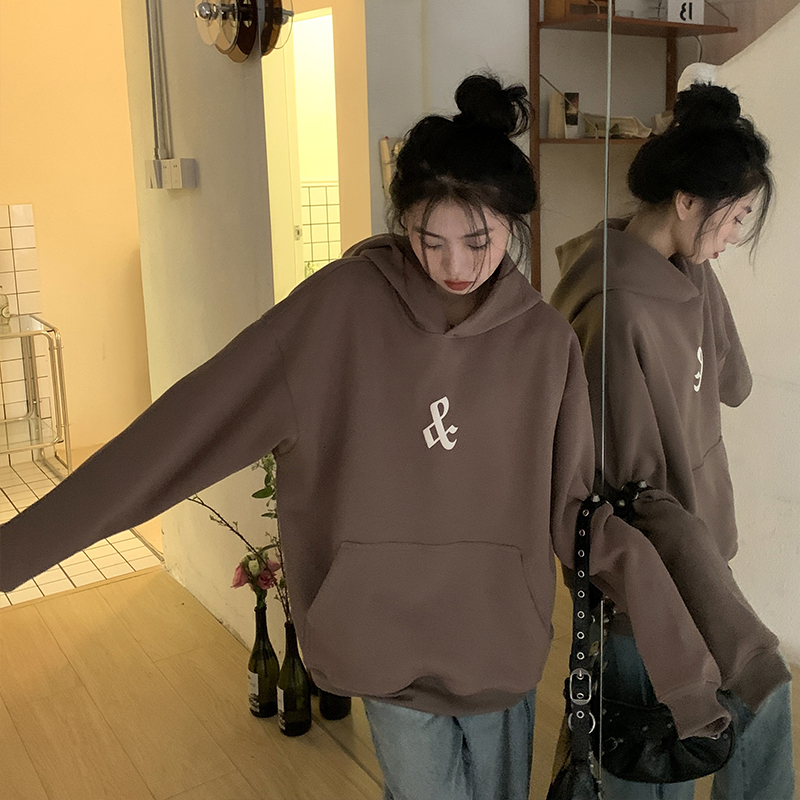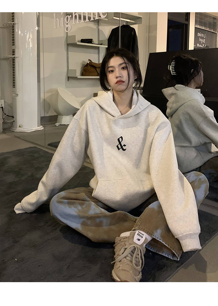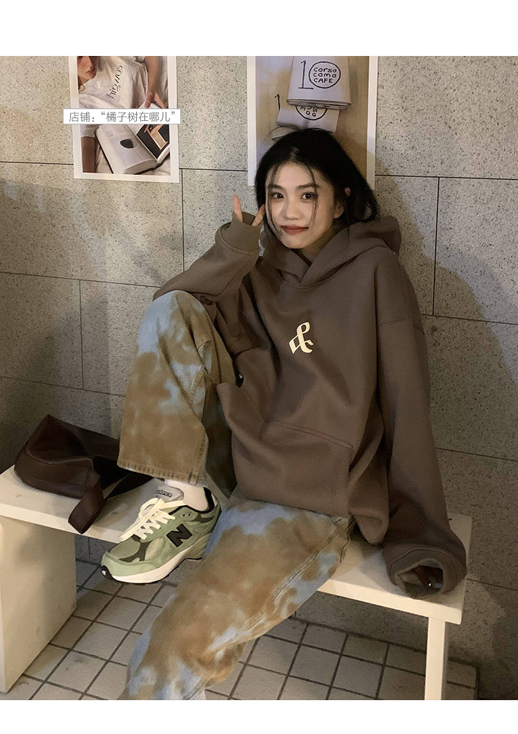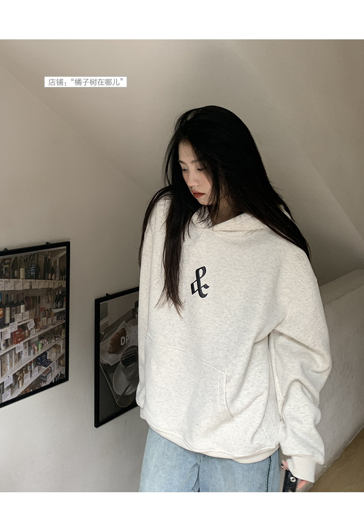 橘子樹在哪兒休閒簡約連帽運動衫女春秋韓系bf寬鬆遮屁股百搭連帽衫