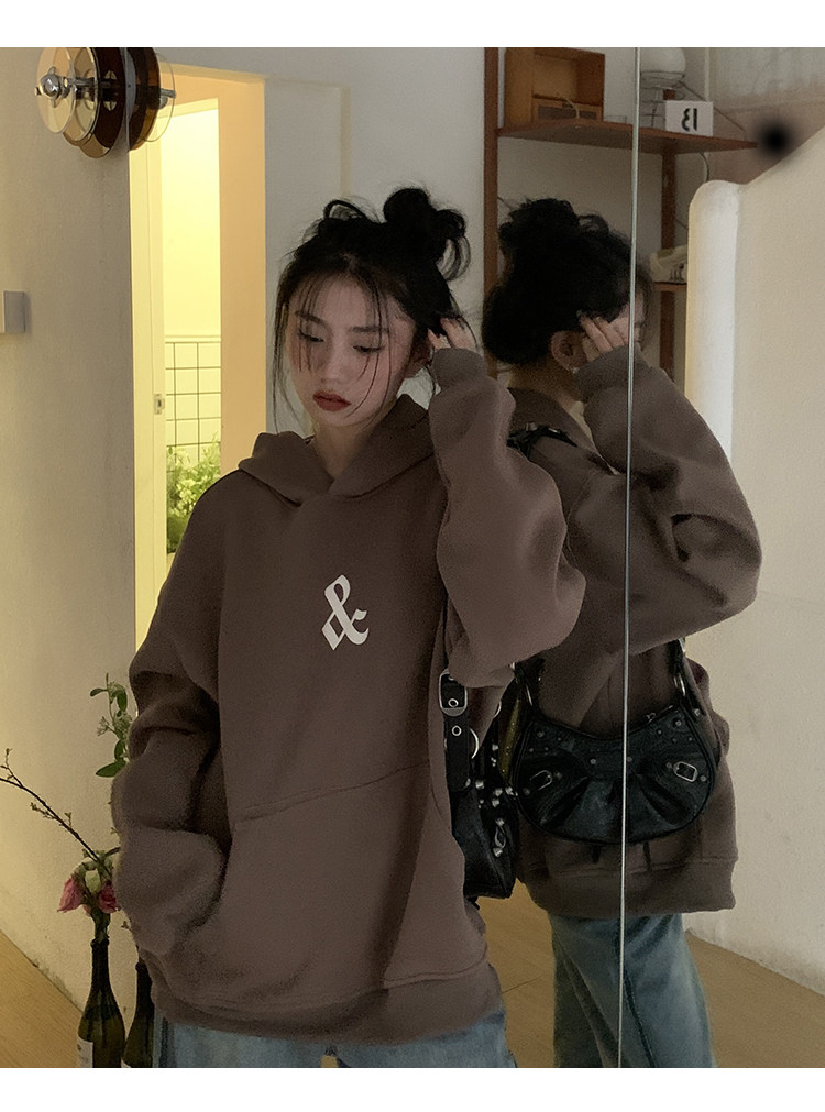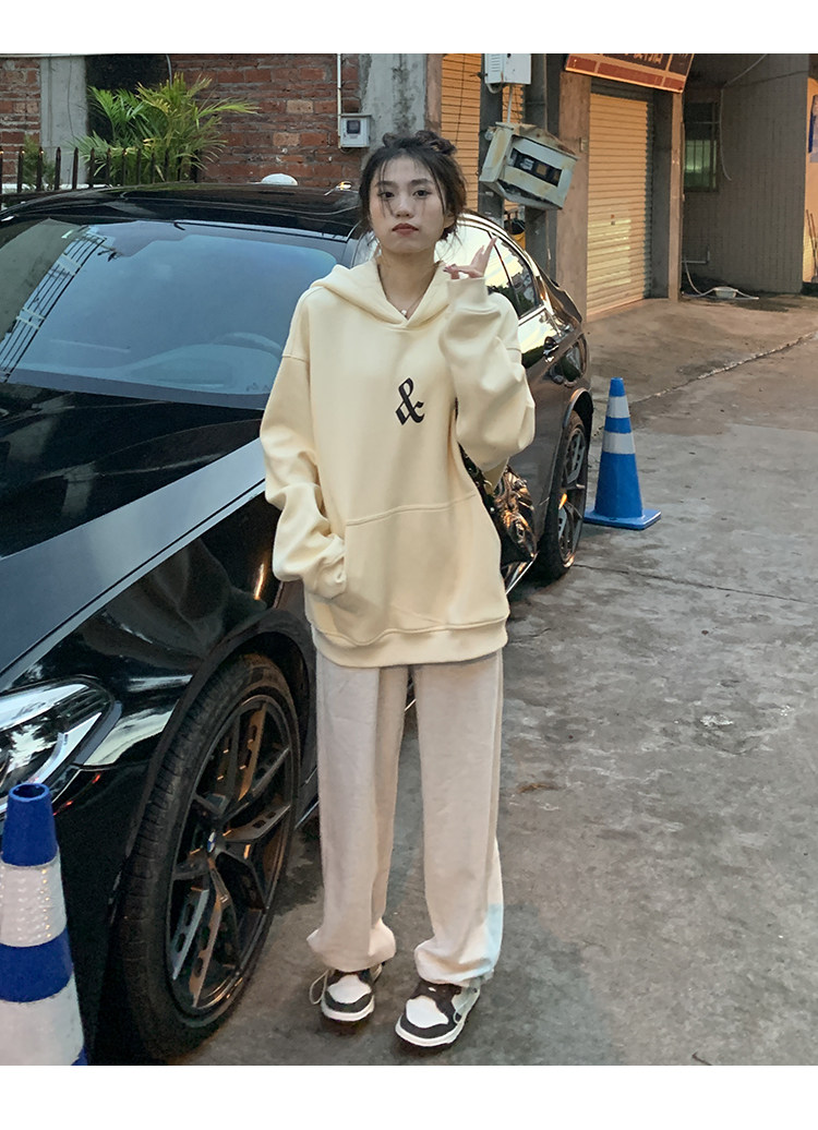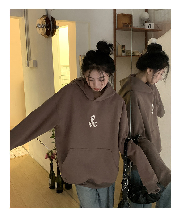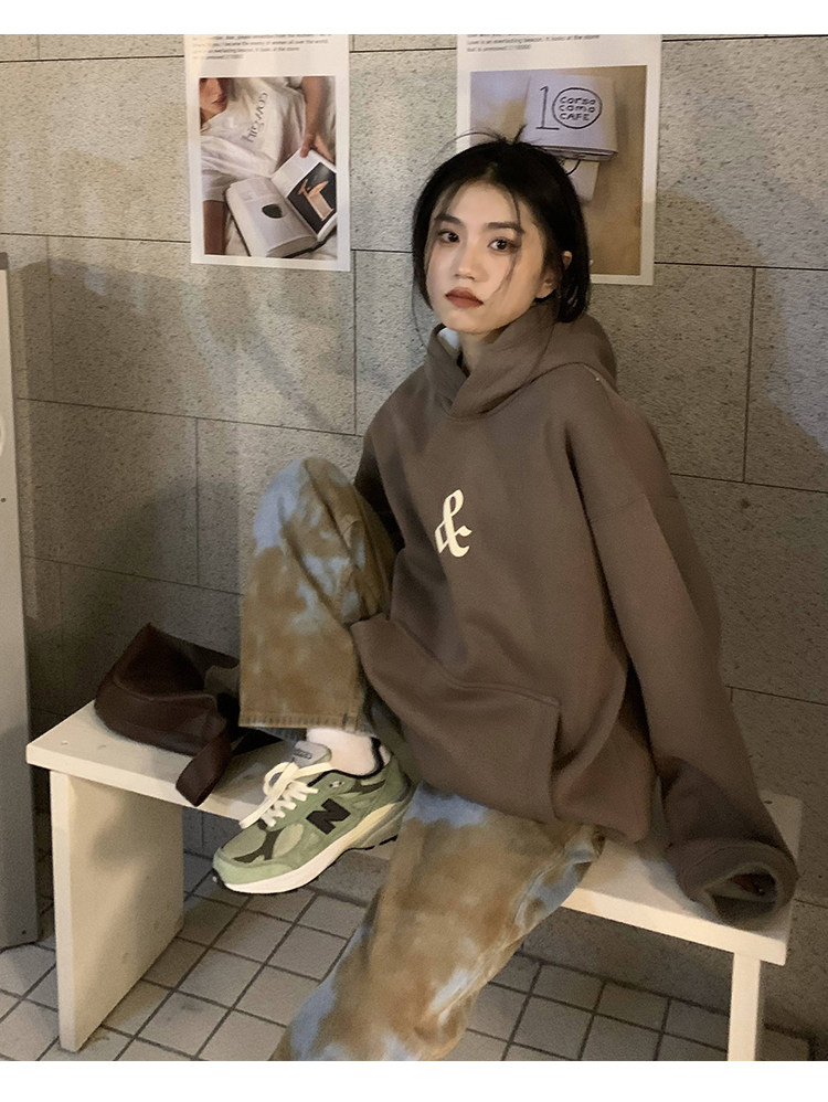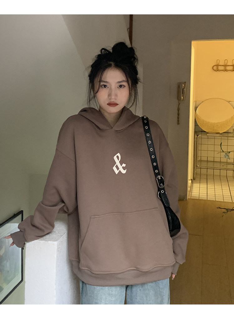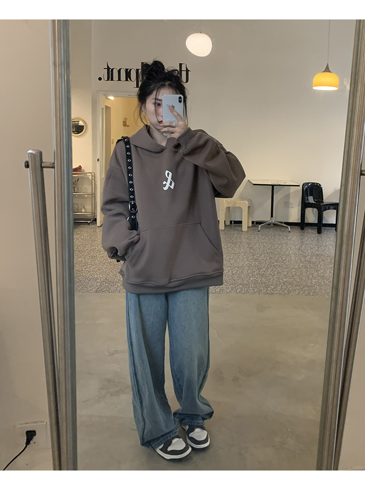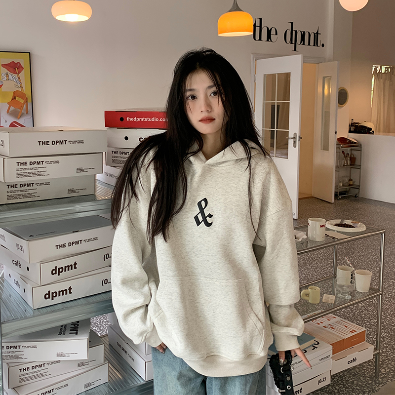 橘子樹在哪兒休閒簡約連帽運動衫女春秋韓系bf寬鬆遮屁股百搭連帽衫