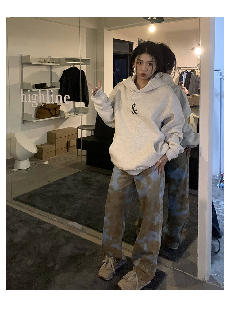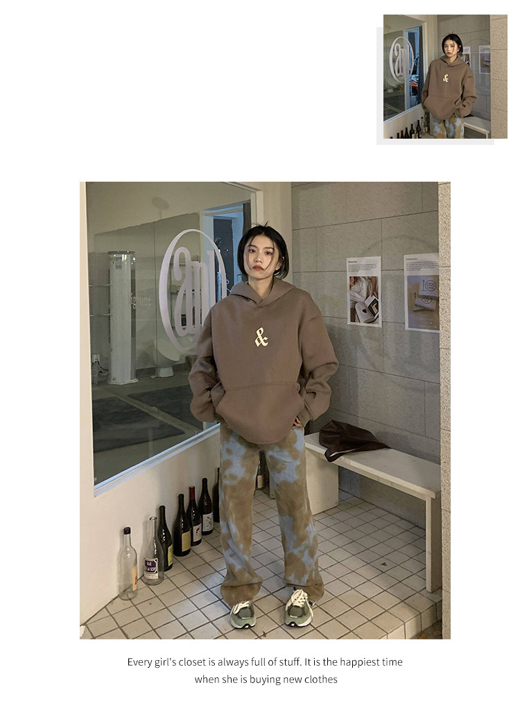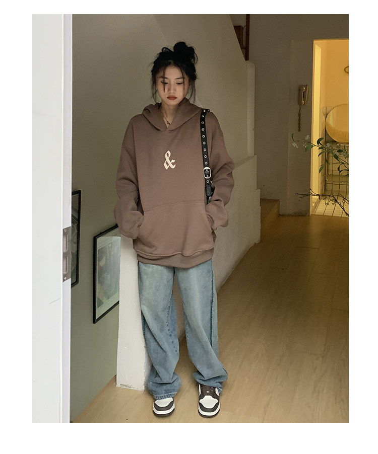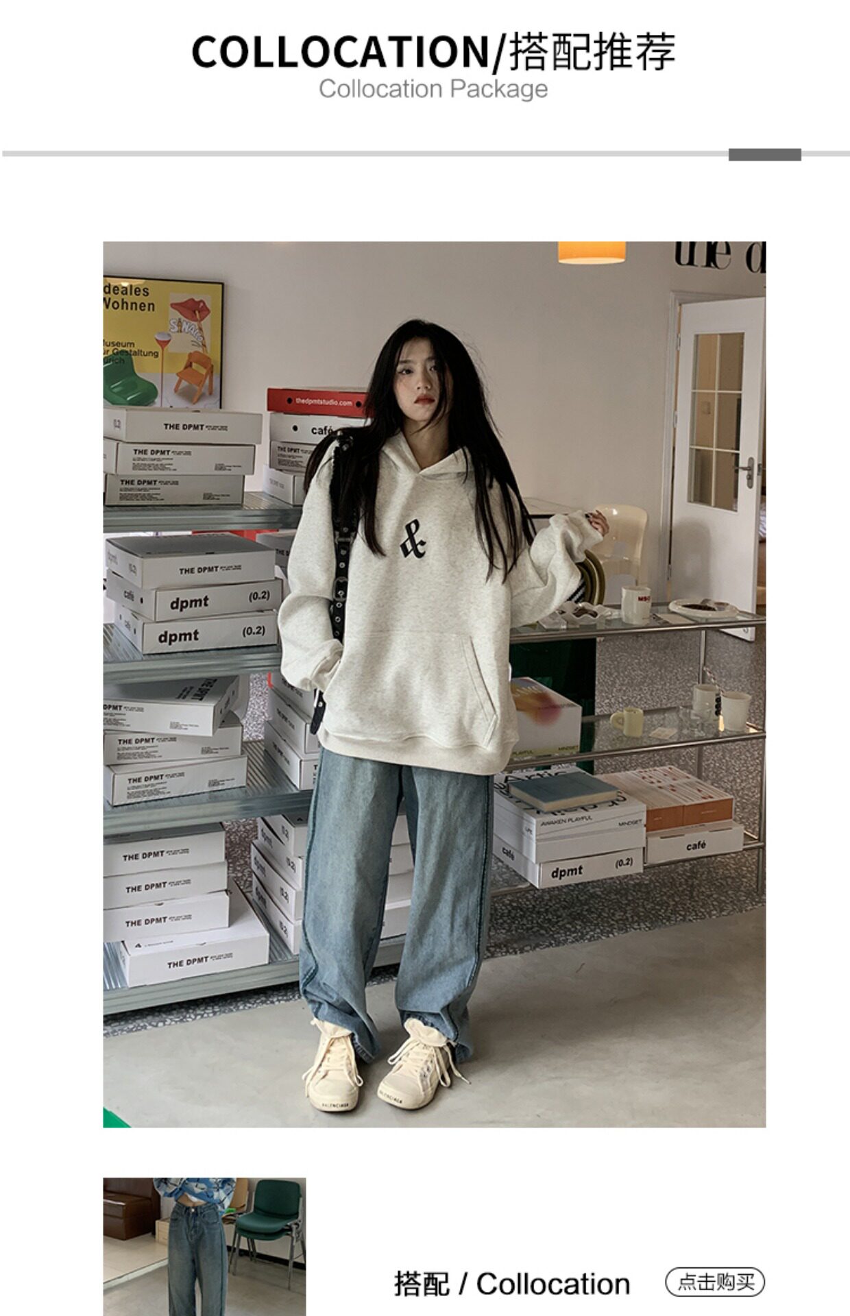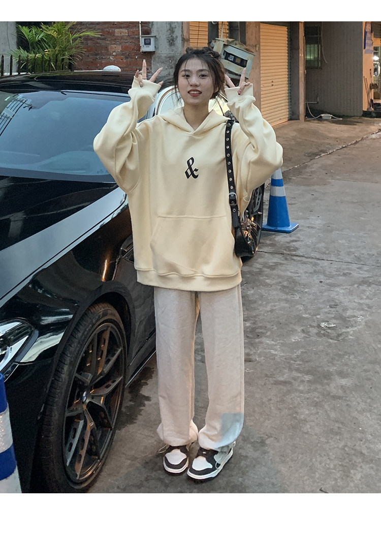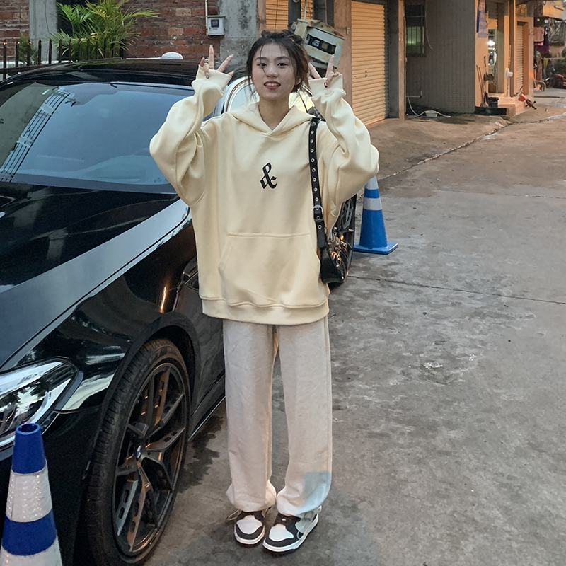 橘子樹在哪兒休閒簡約連帽運動衫女春秋韓系bf寬鬆遮屁股百搭連帽衫