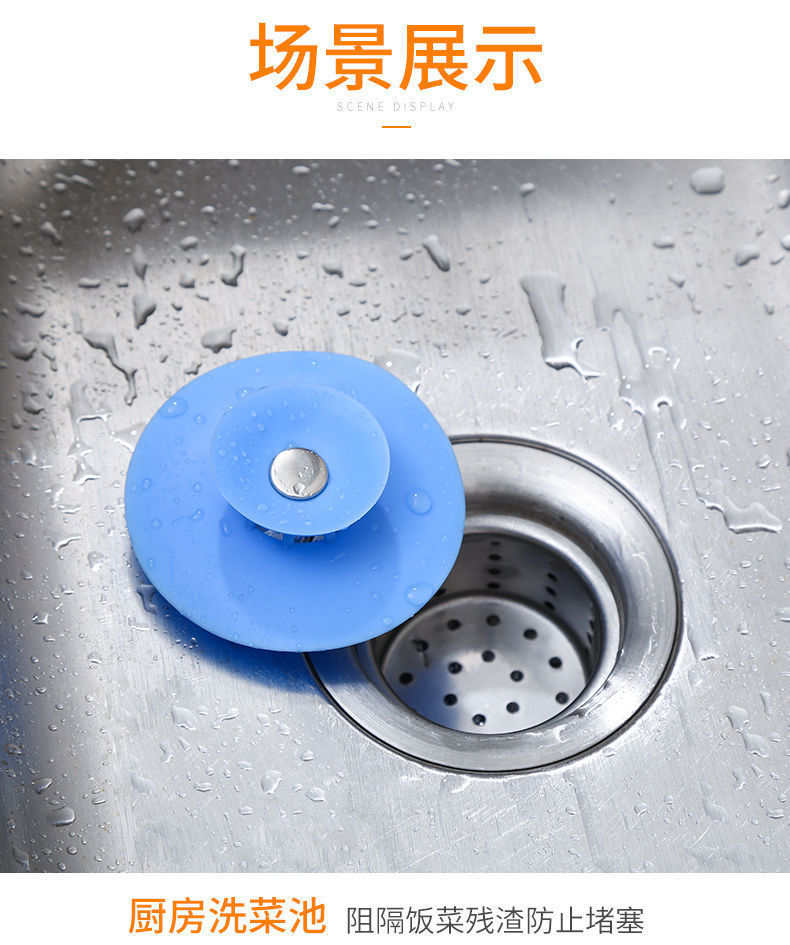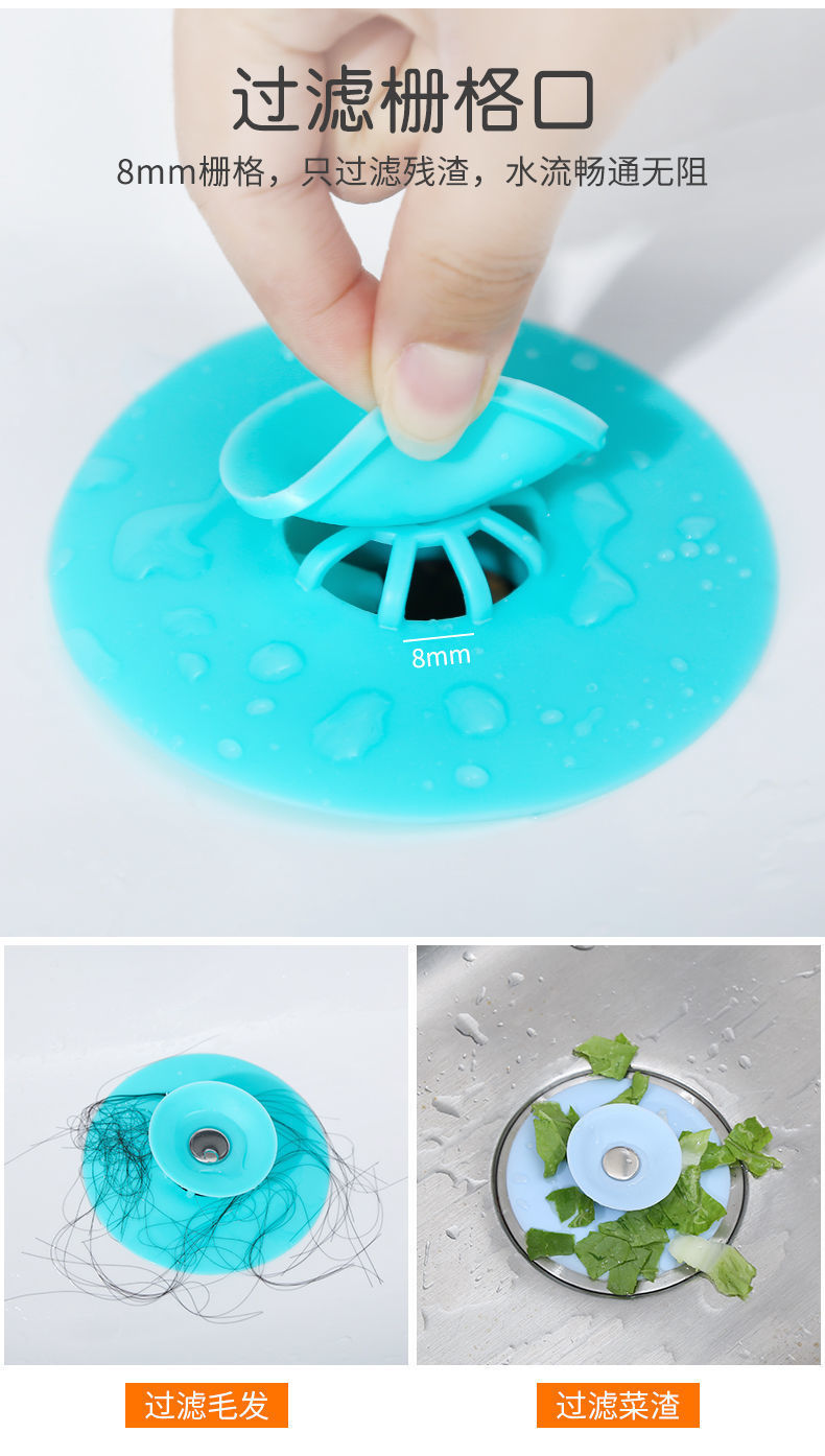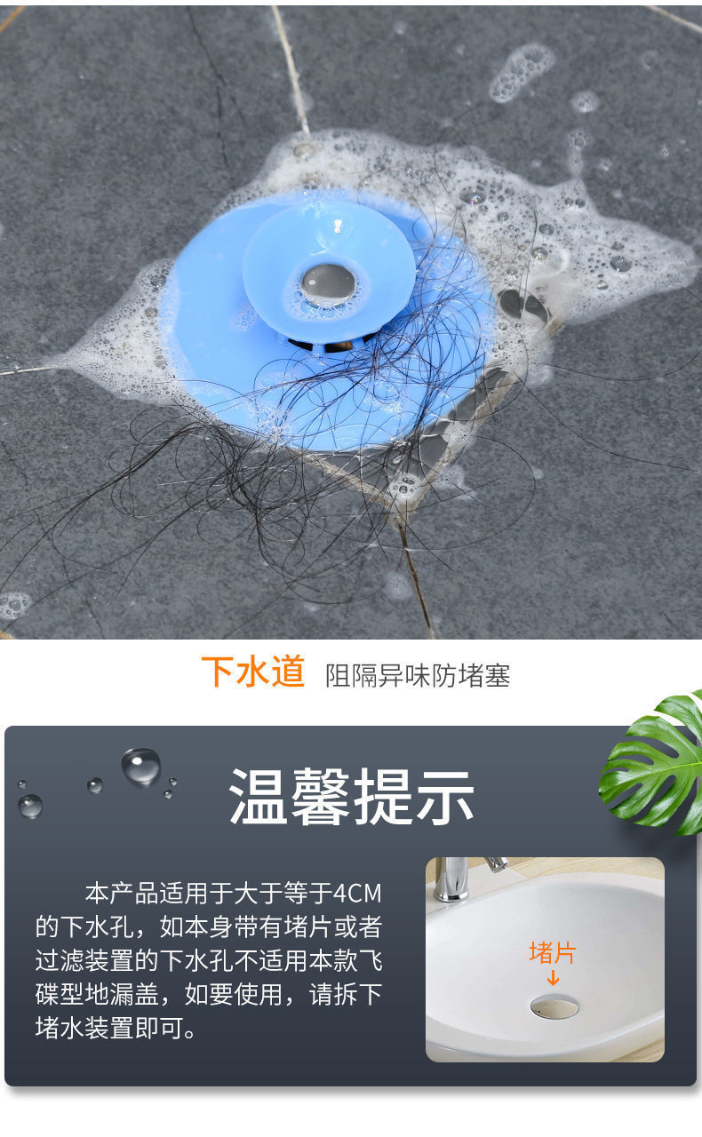 厨房防臭地漏封闭硅胶弹跳地漏浴室防堵塑料按压式水槽飞碟地漏盖