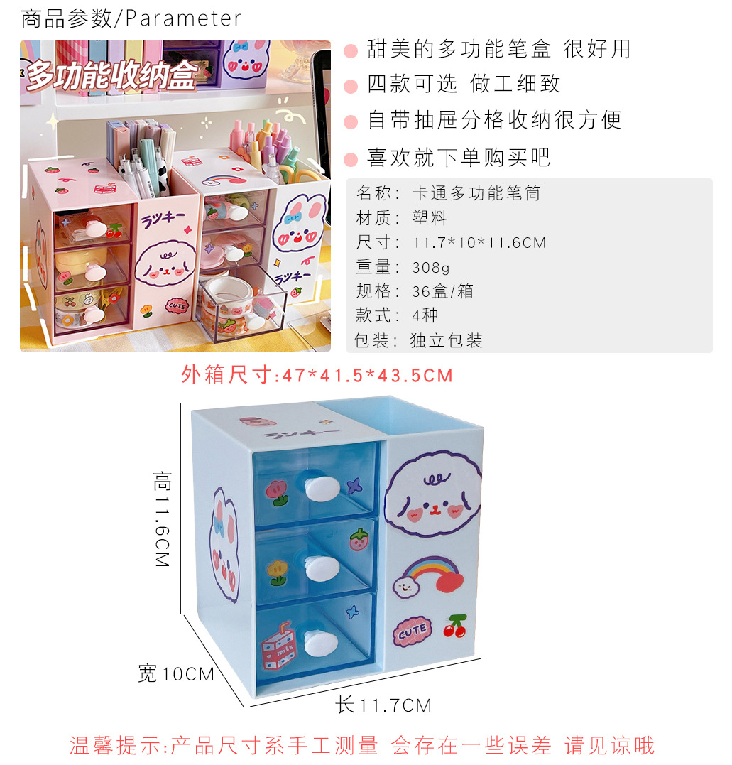 卡通笔筒可爱少女心创意时尚ins风儿童学生文具收纳盒桌面多功能