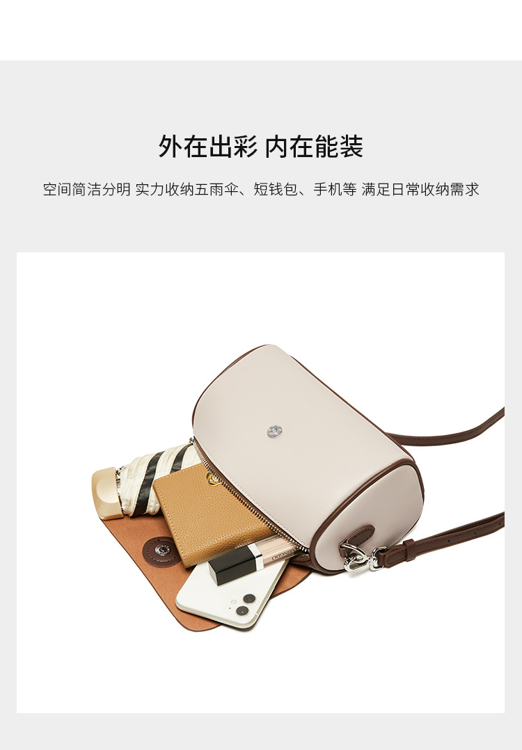 纳兰杜包包2024新款斜挎包女秋流行圆筒包高级感单肩小包真皮女包