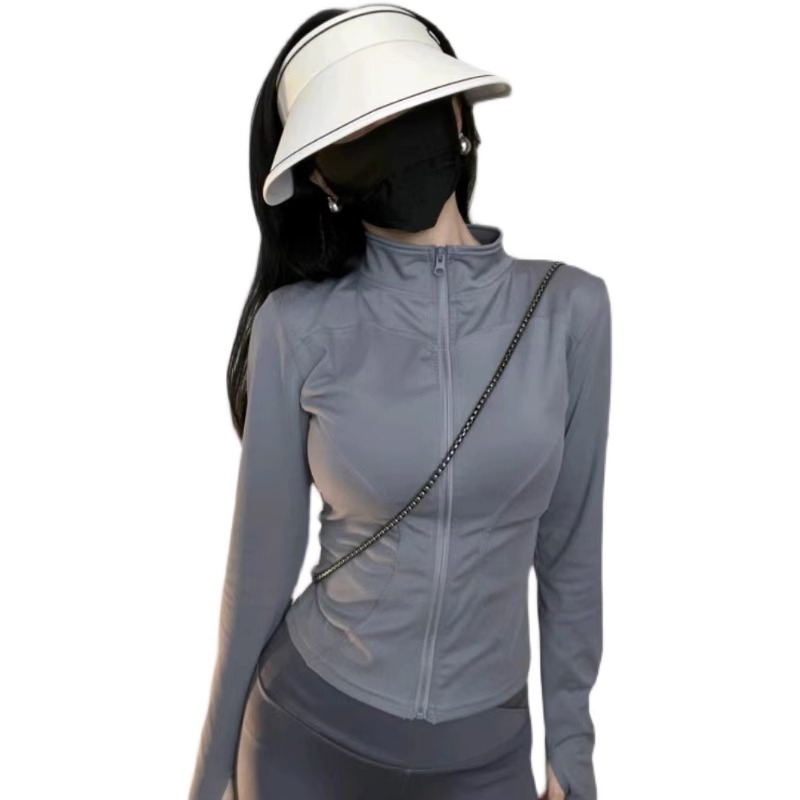 灰色短款冰絲防曬衣女款薄款夏季抗UV透氣修身立領防曬服外套