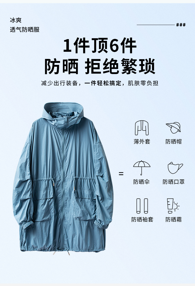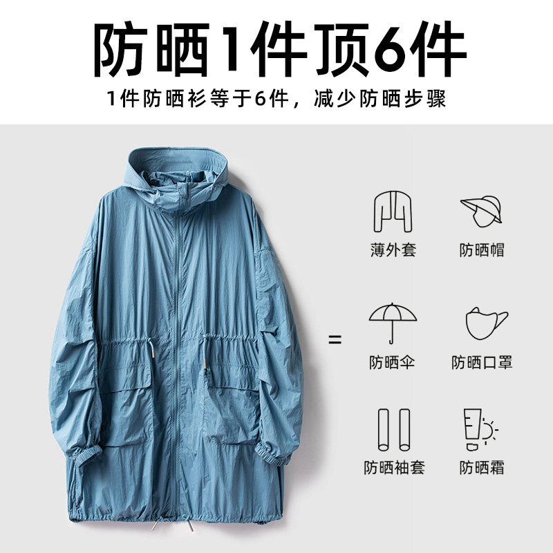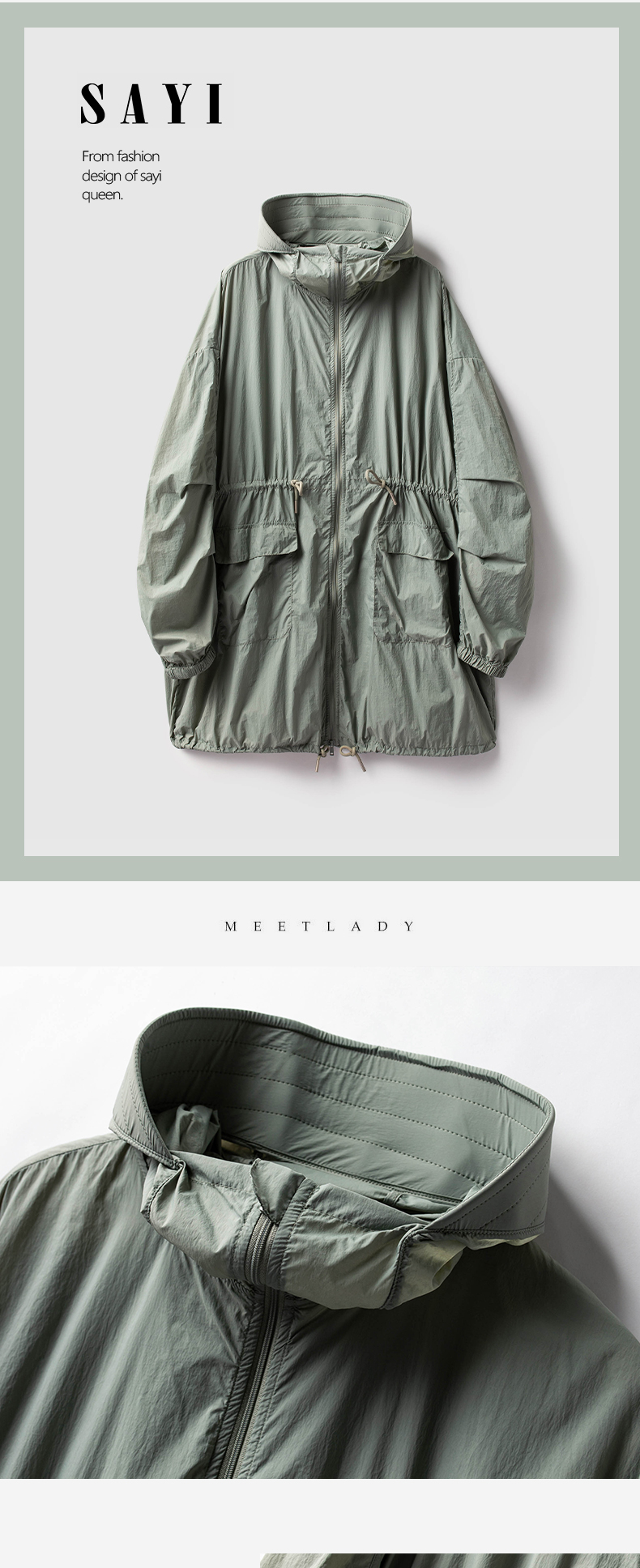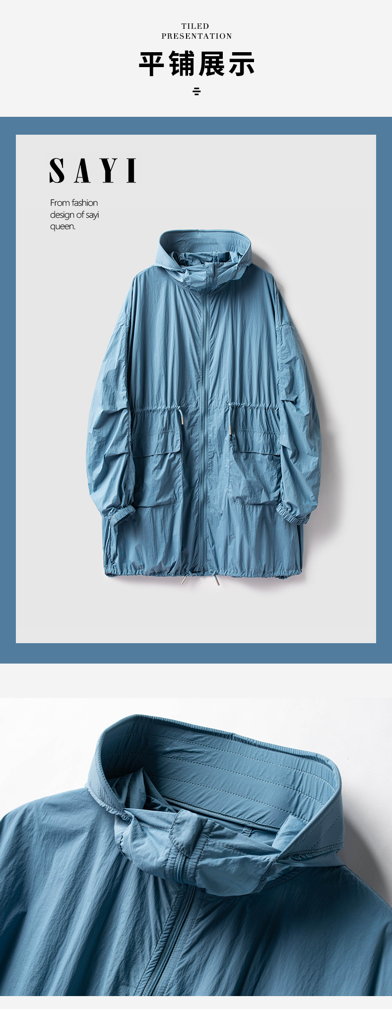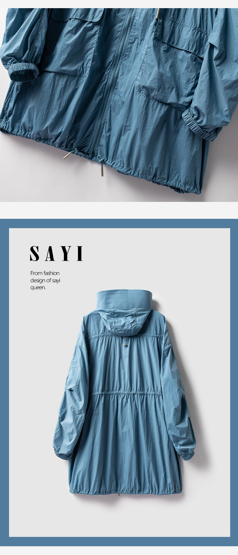 SAYI防曬衣女款2023年夏季新款中長版抗UV戶外工裝寬鬆防曬服