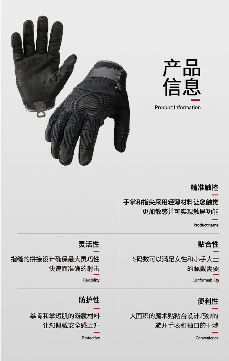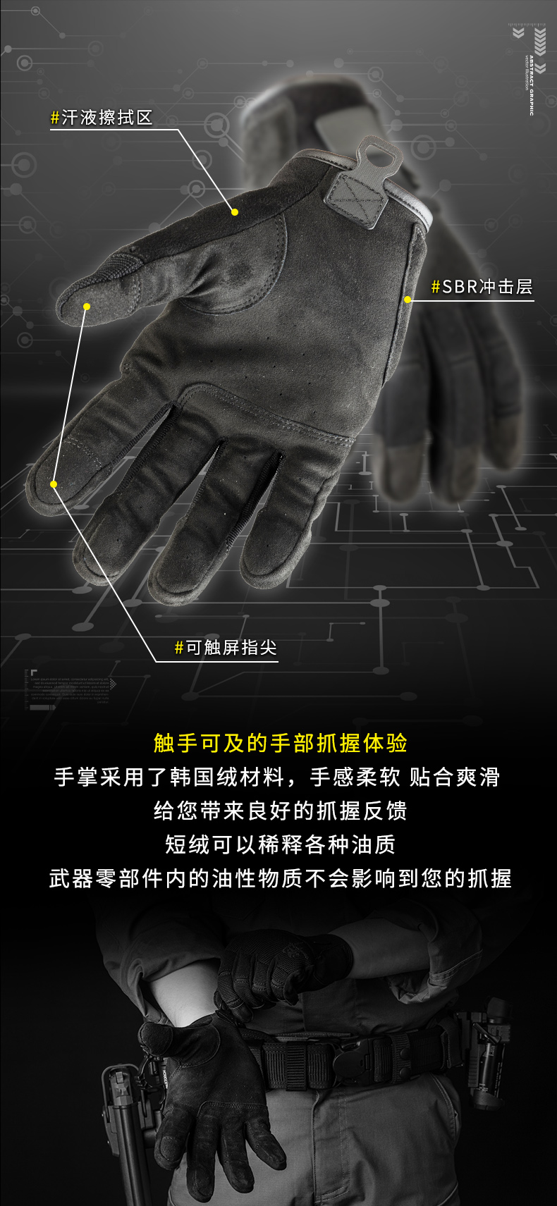 鐵競新品“羿”射手基礎戰術手套觸控屏幕防滑射擊手套訓練手套黑色