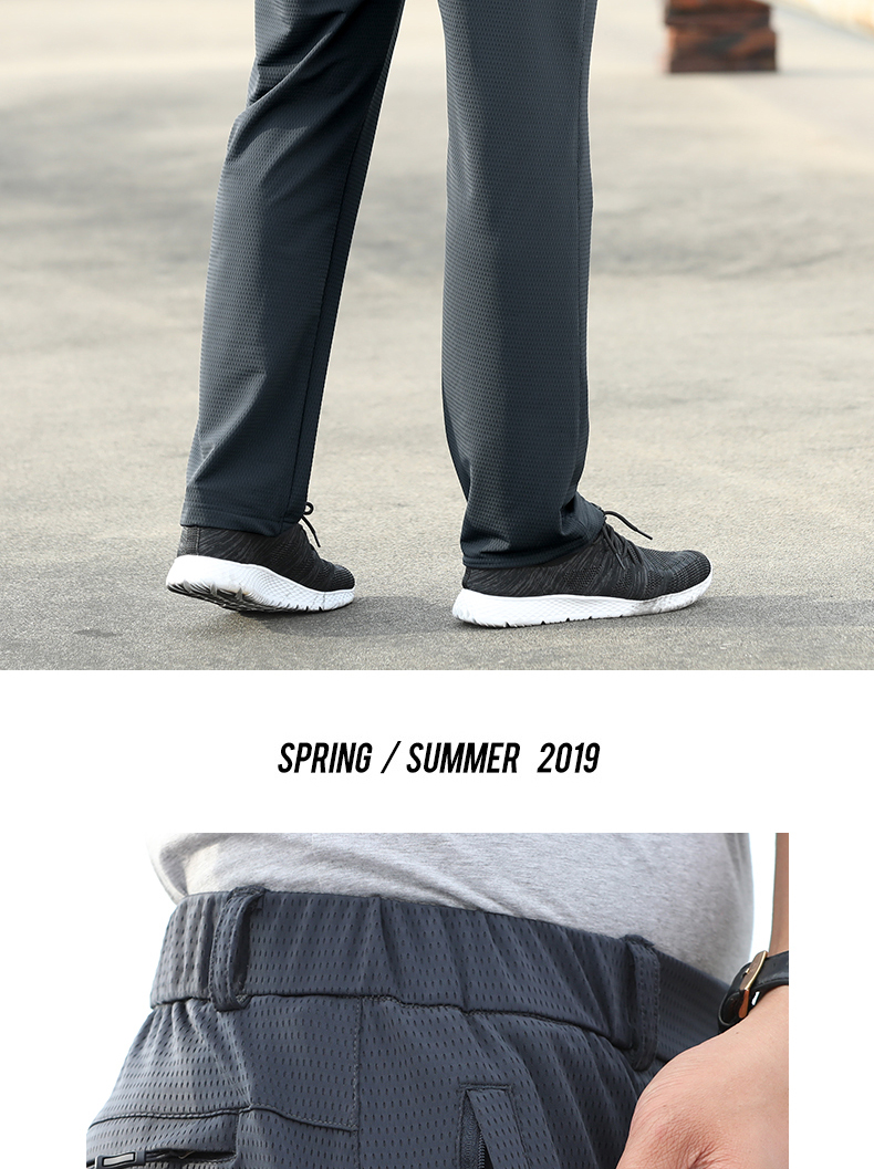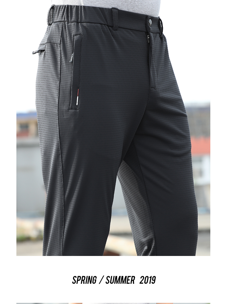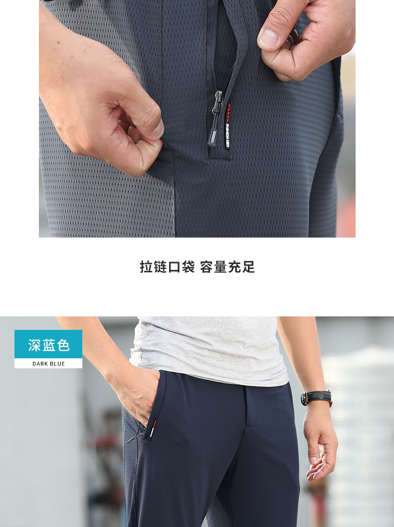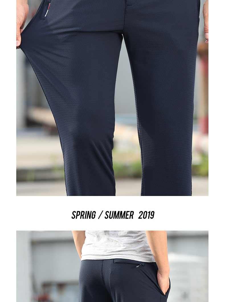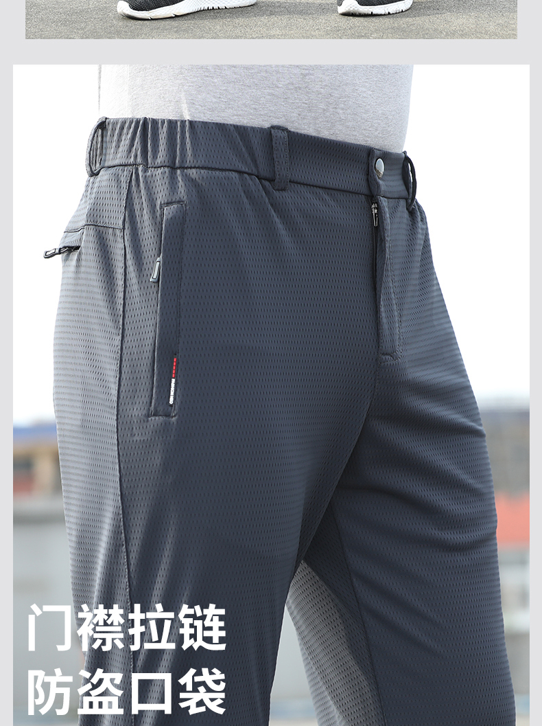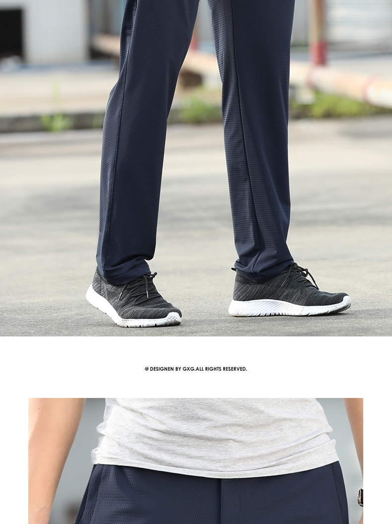 空調褲男網眼夏季薄款運動長褲子冰絲速乾夏天直筒寬鬆超薄休閒褲