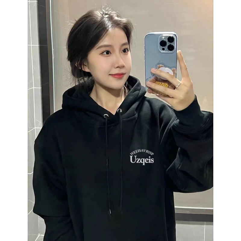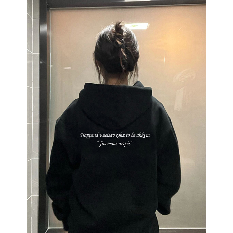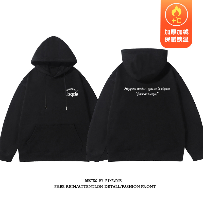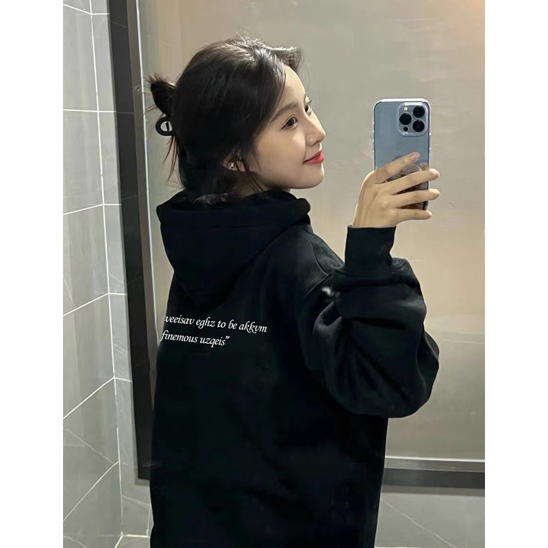 oversize黑色帶帽衛衣2023秋冬新款潮牌小眾高街加絨加厚上衣ins