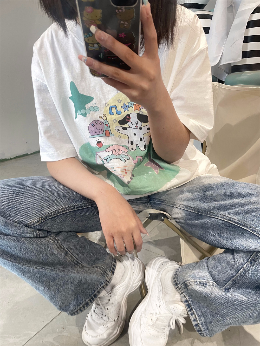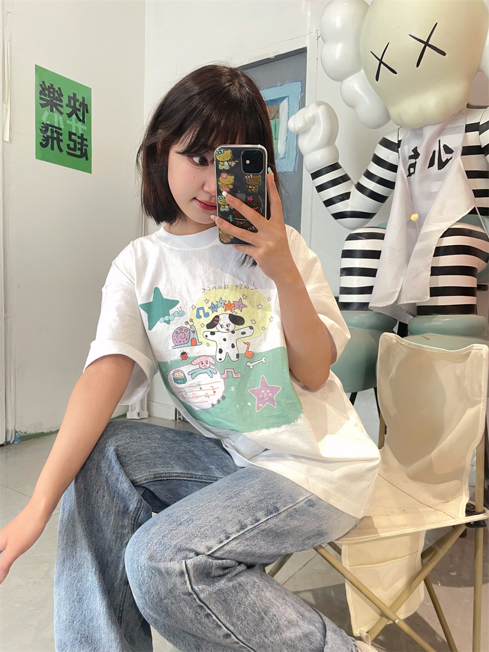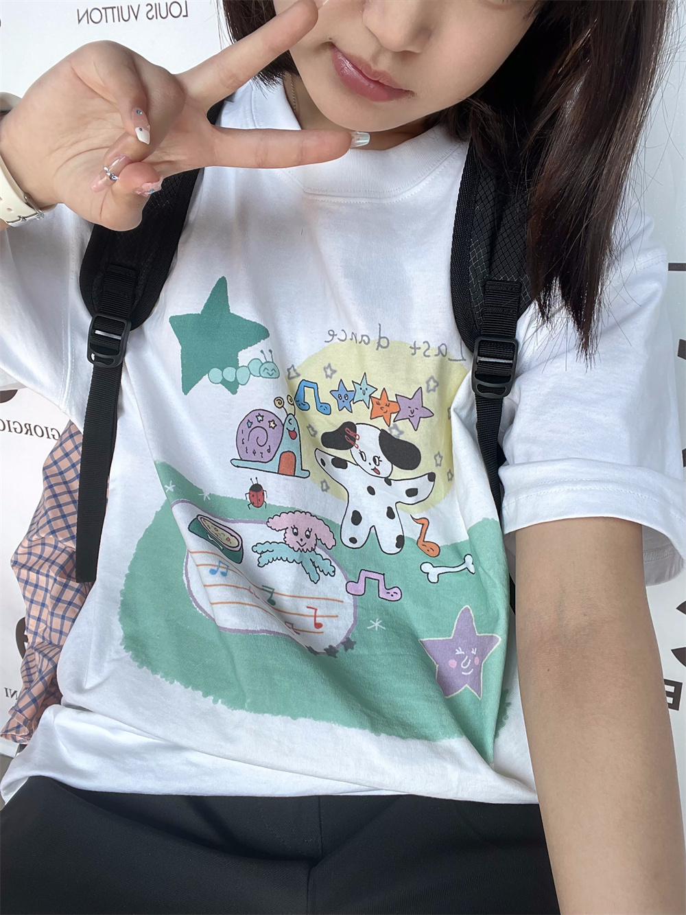 凡他姨【小狗歌唱家】原創可愛夏季印花T恤寬鬆顯瘦百搭純棉短袖D