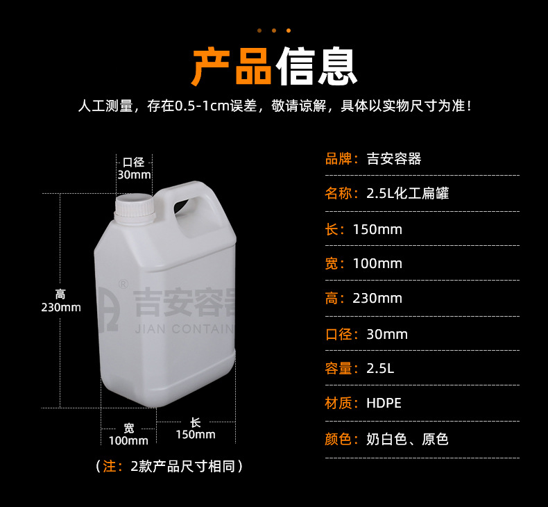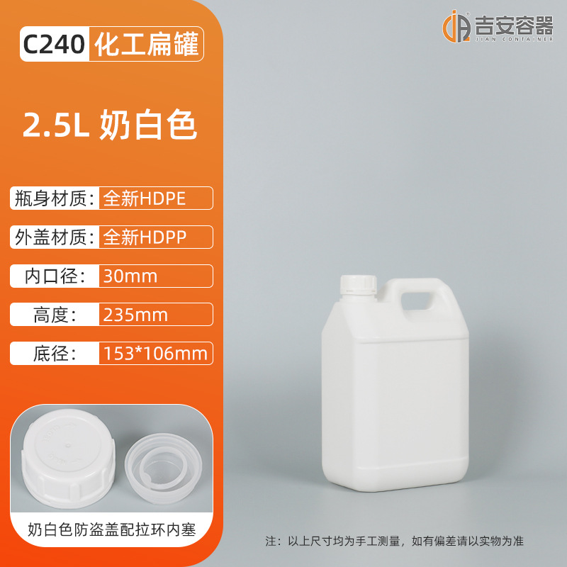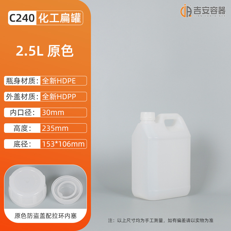 厂家现货质优价廉2.5KG塑料扁罐化工包装 PE料加厚原色2.5L酒水桶