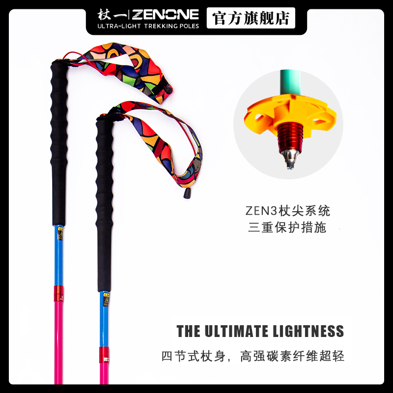 杖一超輕炫彩定製碳纖維登山杖 四節摺疊戶外徒步越野手杖Z1802