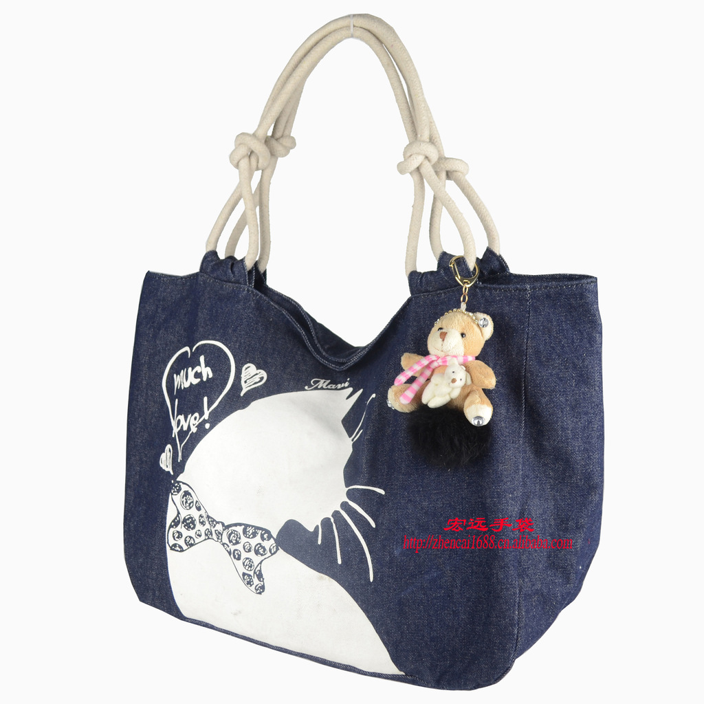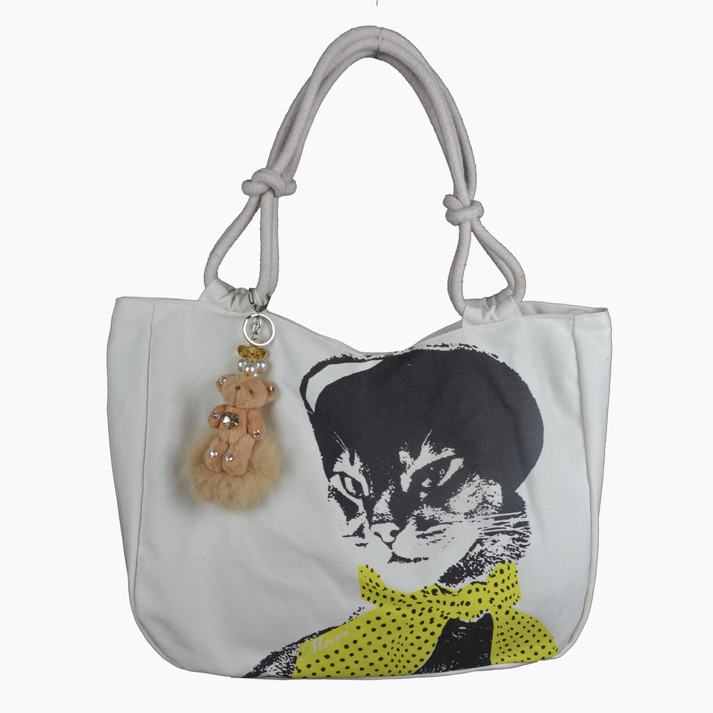 现货供应 小清新/文艺 水饺型 单肩印花 动物图按 女式帆布包