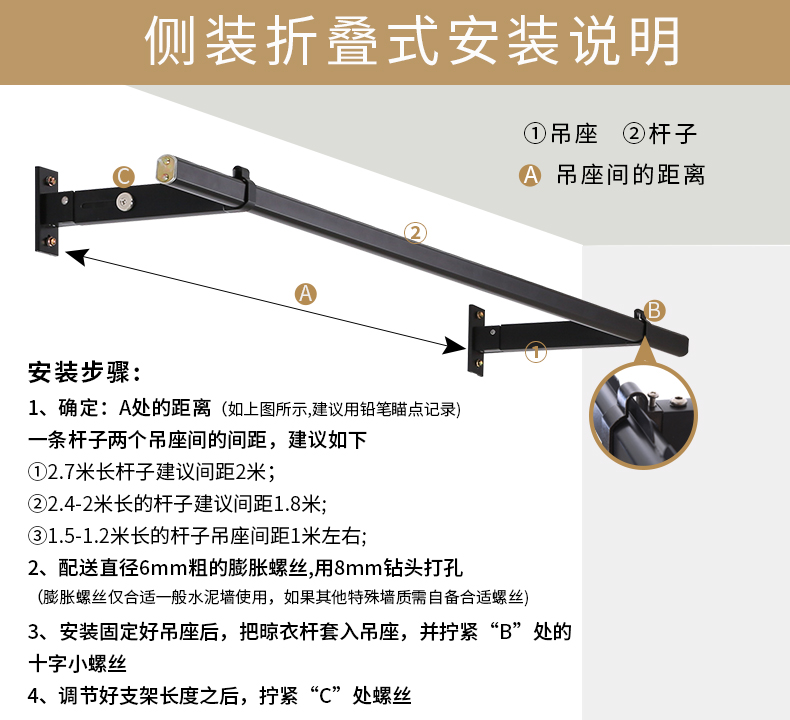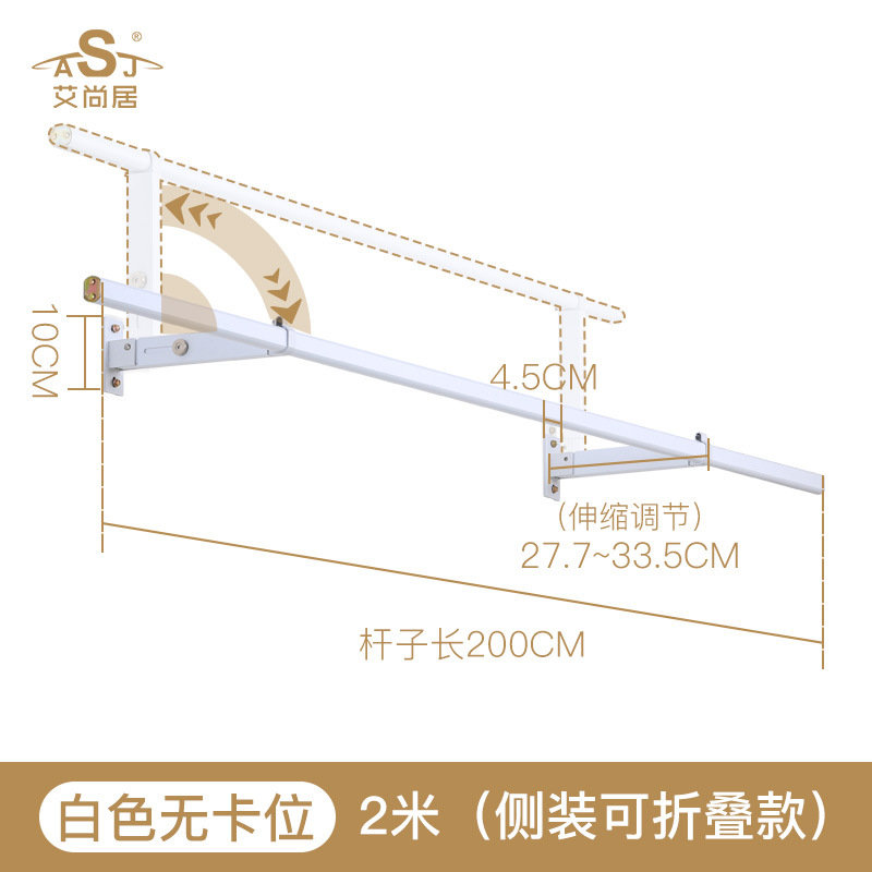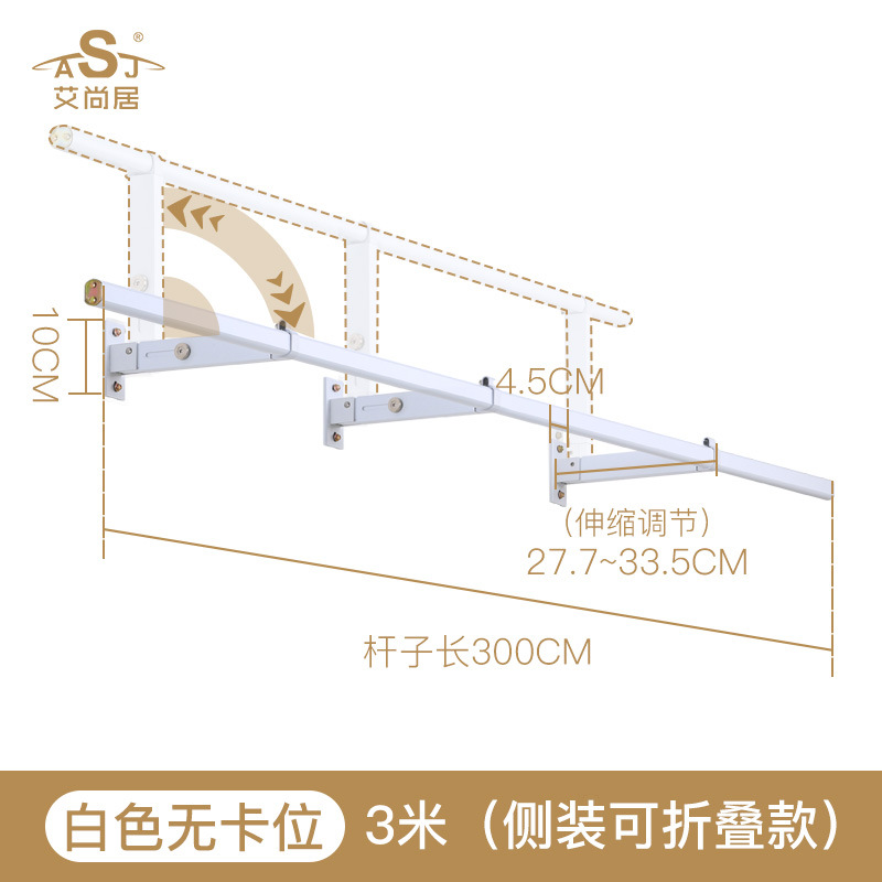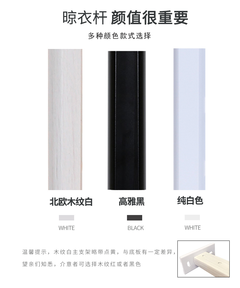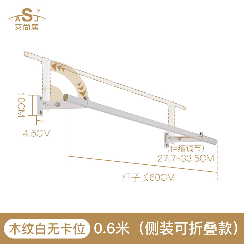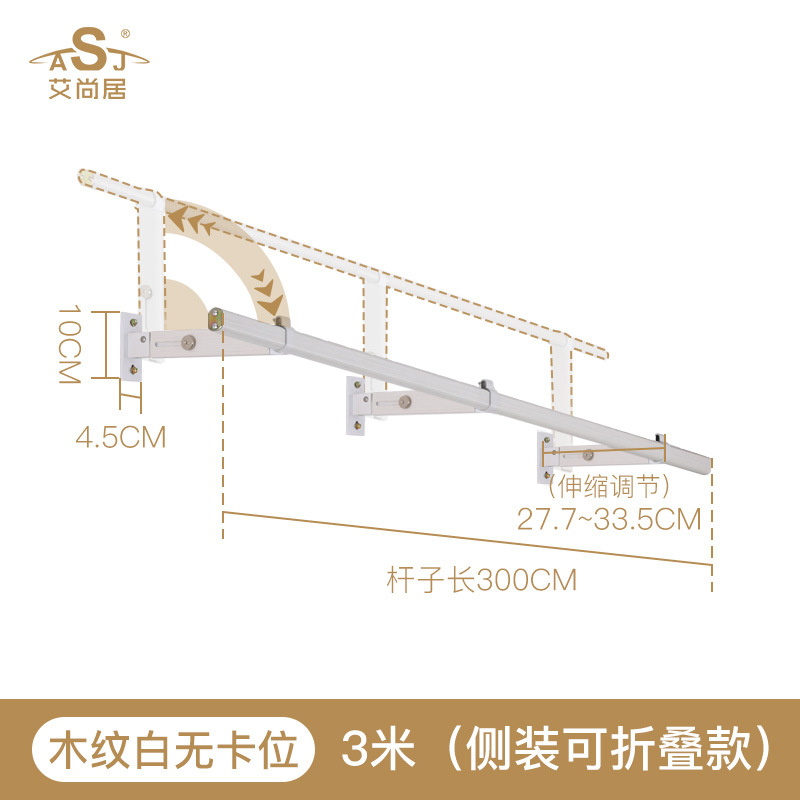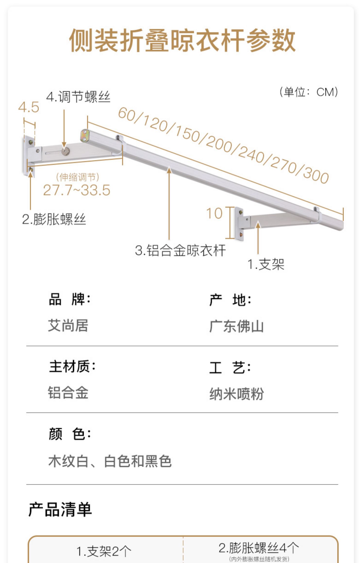 颜色 黑色无卡侧装单杆-0.6米(支架可折叠),黑色无卡侧装单杆-1.2米(支架可折叠),黑色无卡侧装单杆-1.5米(支架可折叠),黑色无卡侧装单杆-2.0米(支架可折叠),黑色无卡侧装单杆-2.4米(支架可折叠),黑色无卡侧装单杆-2.7米(支架可折叠),黑色无卡侧装单杆-3.0米(支架可折叠),纯白色无卡侧装单杆-0.6米(支架可折叠),纯白色无卡侧装单杆-1.2米(支架可折叠),纯白色无卡侧装单杆-1.5米(支架可折叠),纯白色无卡侧装单杆-2米(支架可折叠),纯白色无卡侧装单杆-2.4米(支架可折叠),纯白色无卡侧装单杆-2.7米(支架可折叠),纯白色无卡侧装单杆-3米(支架可折叠),木纹白色无卡侧装单杆-0.6米(支架可折叠),木纹白色无卡侧装单杆-1.2米(支架可折叠),木纹白色无卡侧装单杆-1.5米(支架可折叠),木纹白色无卡侧装单杆-2米(支架可折叠),木纹白色无卡侧装单杆-2.4米(支架可折叠),木纹白色无卡侧装单杆-2.7米(支架可折叠),木纹白色无卡侧装单杆-3米(支架可折叠),黑色晾晒宝1米(挂钩高度90cm) 需搭配晾杆使用,黑色晾晒宝1.38米(挂钩高度90cm) 需搭配晾杆使用,黑色晾晒宝1.8米(挂钩高度90cm) 需搭配晾杆使用,黑色晾晒宝2.3米(挂钩高度90cm) 需搭配晾杆使用