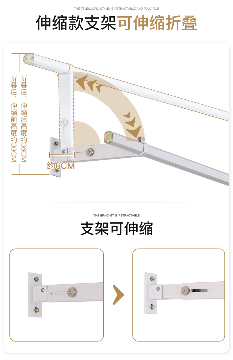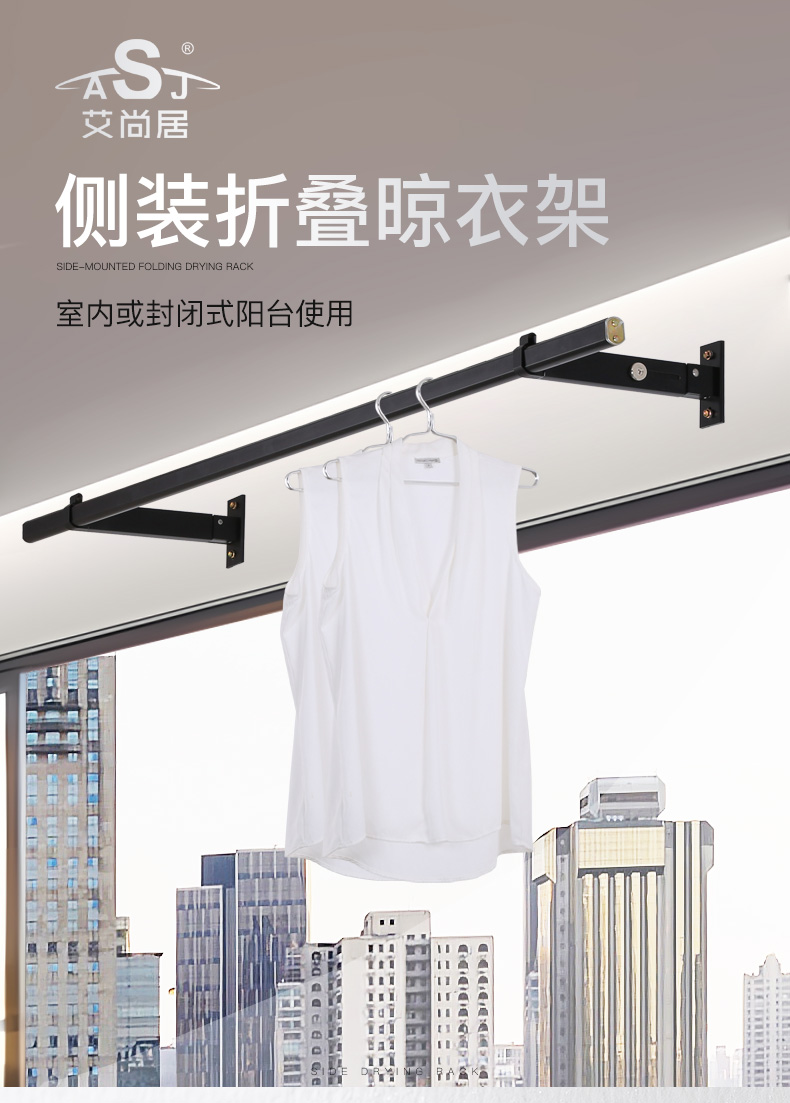 侧装晾衣架小阳台挂衣杆家用一侧墙晾衣杆折叠晾衣架壁挂式